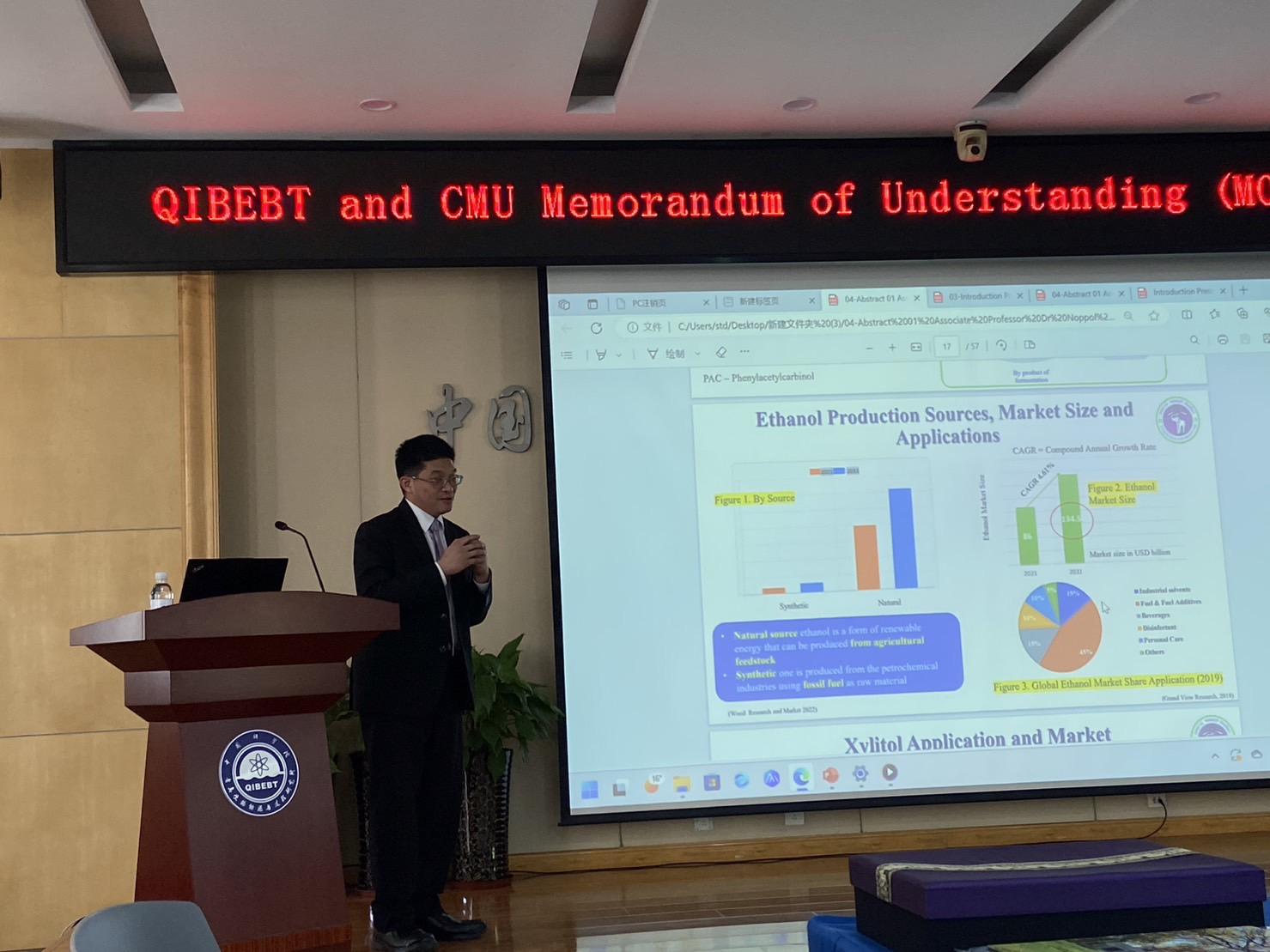 วันที่ 21 ตุลาคม 2566 ผู้ช่วยศาสตราจารย์ ดร.สุจินดา ศรีวัฒนะ คณบดีคณะอุตสาหกรรมเกษตร พร้อมด้วยคณะ นำทีมโดยท่านรองอธิการบดีมหาวิทยาลัยเชียงใหม่ ศาสตราจารย์ปฏิบัติ ดร. ชรินทร์ เตชะพันธุ์ ได้เข้าร่วมพิธีลงนามต่ออายุบันทึกข้อตกลงความร่วมมือทางวิชาการ (MoU Renewal Signing Ceremony) ระหว่าง Qingdao Institute of Bioenergy and Bioprocess Technology, Chinese Academy of Sciences (QIBEBT CAS) กับ Chiang Mai University ณ QIBEBT, Qingdao, China