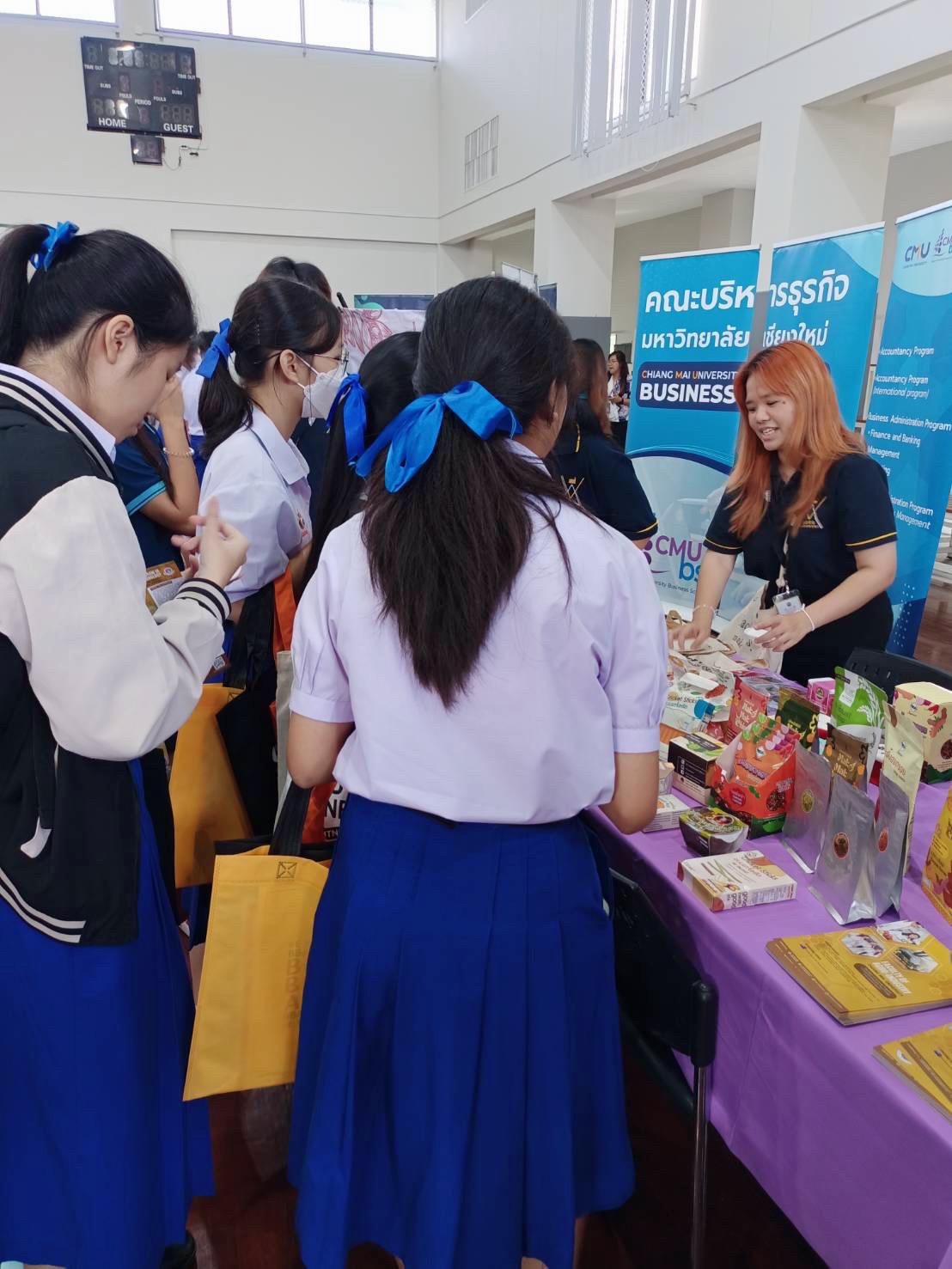 On 2 November 2023, at 10.00 am. Faculty of Agro-industry participated in the CMIS Thai University International Program Fair 2023, presenting 6 bachelor’s degree programs provided by our faculty, and promoting especially on International Program in Food Science and Technology. The event attracts significant interest from parents and high school students who tend to pursue Bachelor’s degree from Faculty of Agro-industry. They come from wide array of schools in Chiangmai. For example, Chiangmai International school, The Prince Royal’s College, Ambassador Bilingual School, etc. We also informed them about the admission news and procedures that will be done through TCAS, and CMU-IPAS system (for international program). We hope to create opportunities in education for students and for our faculty to grow.