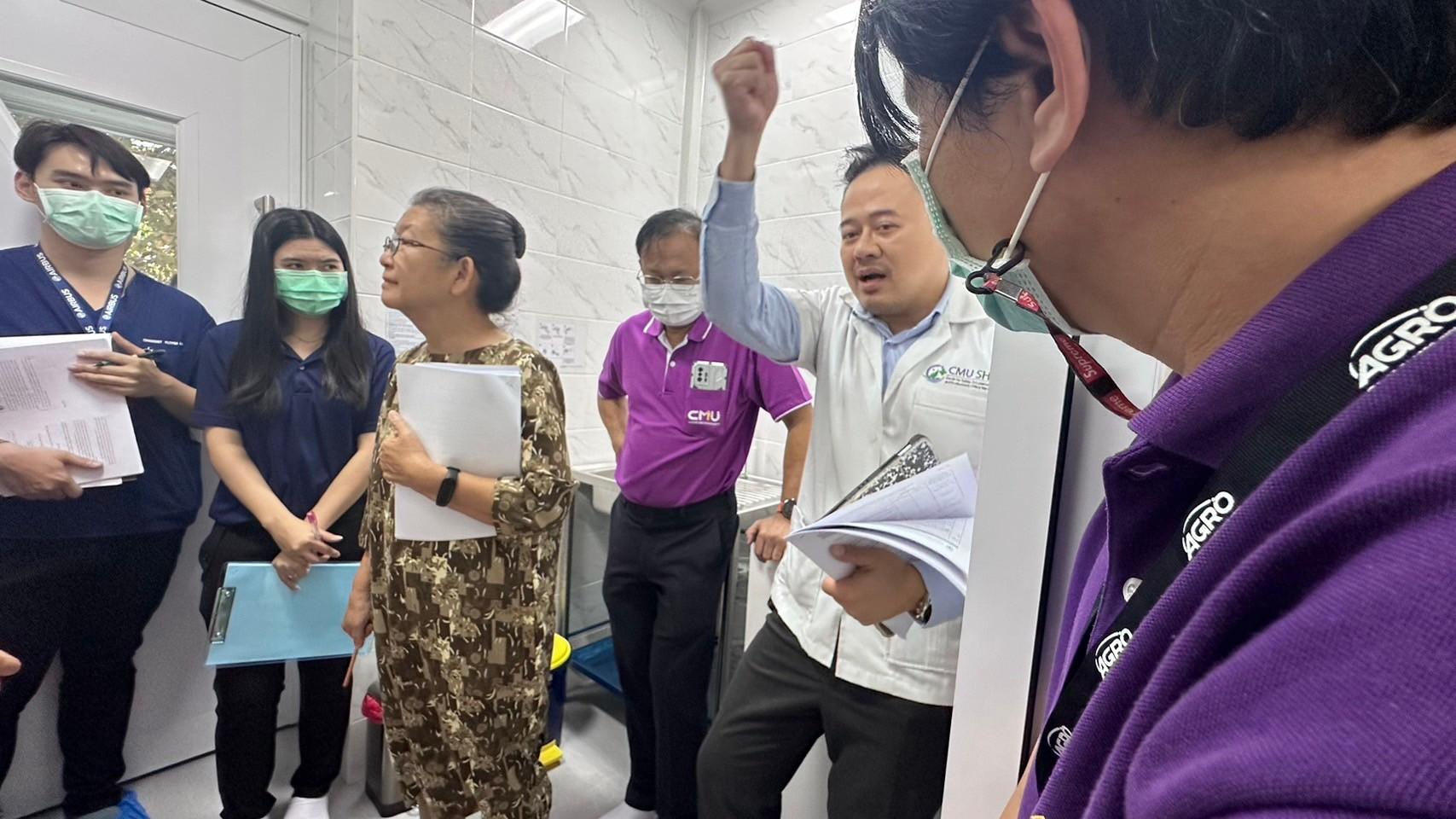 วันที่ 19 ธันวาคม 2566 ผู้ช่วยศาสตราจารย์ ดร.สุจินดา ศรีวัฒนะ คณบดี และรองศาสตราจารย์ ดร.ทนงศักดิ์ ไชยาโส หัวหน้าสำนักวิชาอุตสาหกรรมเกษตร พร้อมด้วยนักวิทยาศาสตร์คณะอุตสาหกรรมเกษตร ให้การต้อนรับคณะกรรมการตรวจเยี่ยมและประเมินภายในห้องปฏิบัติการทางชีวภาพ มหาวิทยาลัยเชียงใหม่ ครั้งที่ 2 เพื่อติดตามและตรวจประเมินระบบห้องปฏิบัติการทางชีวภาพของมหาวิทยาลัย เพื่อมุ่งให้เกิดการยกระดับความปลอดภัยทางชีวภาพของมหาวิทยาลัยให้เป็นไปตามกฎหมายว่าด้วยเชื้อโรคและพิษจากสัตว์ และมาตรฐานอื่นที่เกี่ยวข้องต่อไป ณ ห้องปฏิบัติการมาตรฐานความปลอดภัยทางชีวภาพระดับ 2 (ห้อง 206) อาคารสำนักวิชาคณะอุตสาหกรรมเกษตร