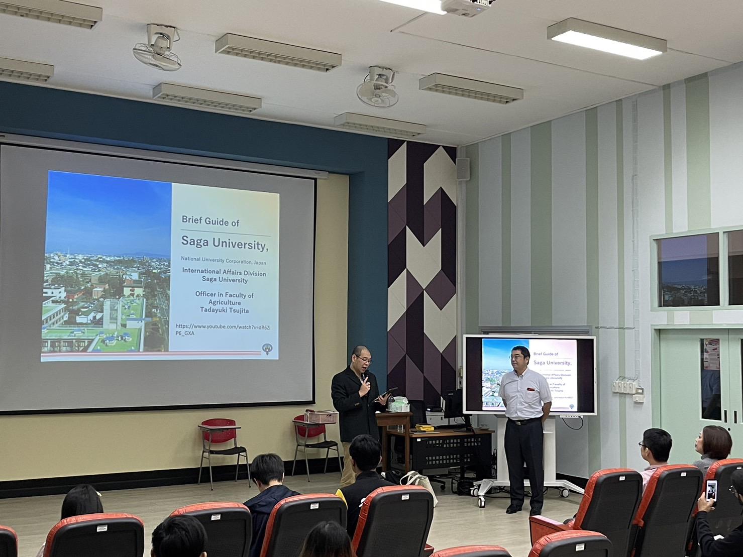 ในวันที่ 20 ธันวาคม 2566 ผู้ช่วยศาสตราจารย์ ดร.สุพัฒน์ พงษ์ไทย หัวหน้าสาขาวิชาวิทยาศาสตร์และเทคโนโลยีการอาหาร พร้อมด้วยคณาจารย์ประจำสาขาฯ ร่วมให้การต้อนรับ Assoc. Prof.Tadayuki TSUJITA, Ph.D. จาก Laboratory of Biochemistry, Department of Applied Biochemistry and Food Science, Faculty of Agriculture, Saga University ประเทศญี่ปุ่น และร่วมให้เกียรติเป็นวิทยากรบรรยายพิเศษแนะนำ Saga University, Japan และทุนศึกษาต่อของรัฐบาลญี่ปุ่น