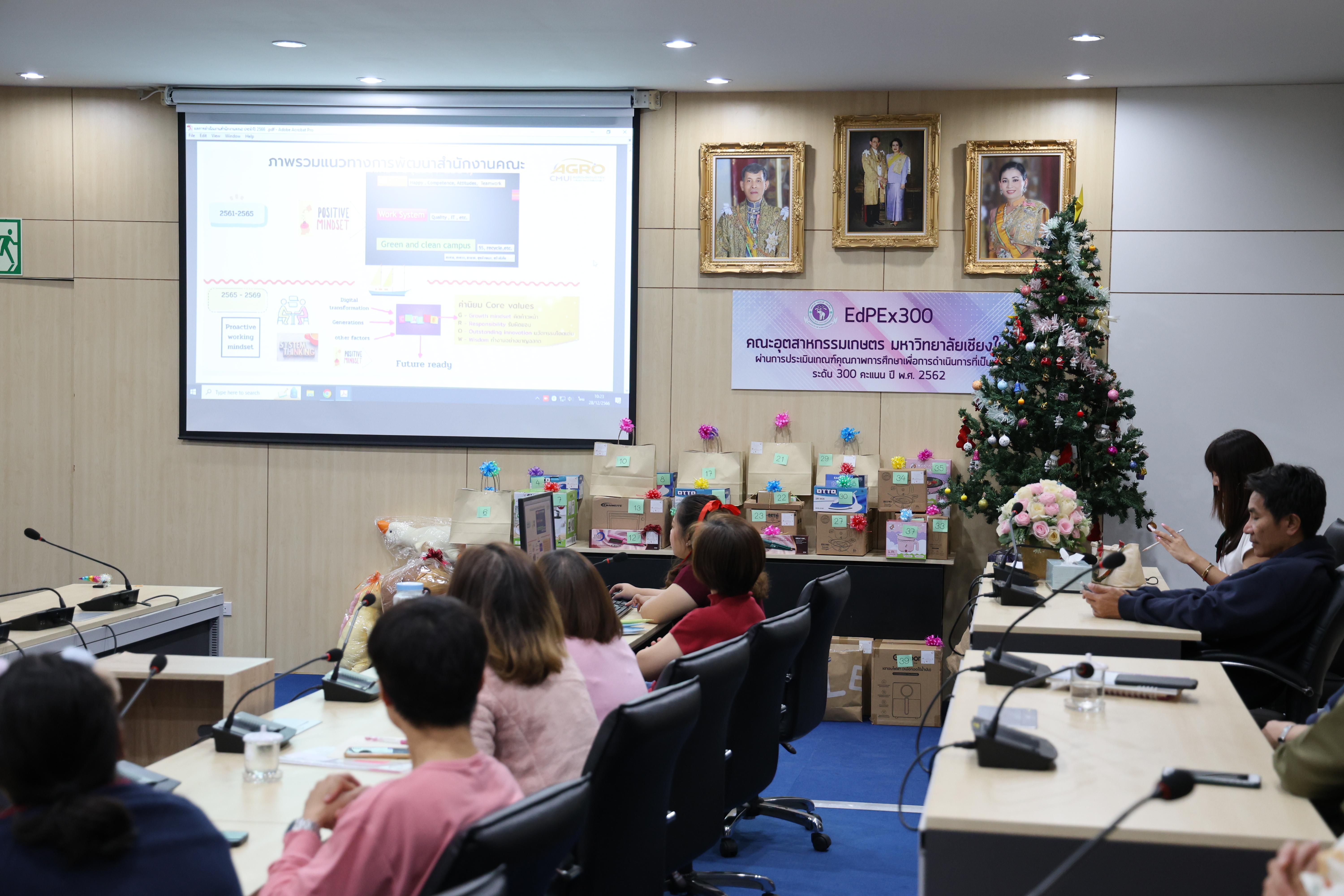 เมื่อวันที่ 28 ธันวาคม 2566 สำนักงานคณะอุตสาหกรรมเกษตร ได้จัดประชุมสำนักงานคณะ โดยมีนางสาวปิยะนุช สวัสดี เลขานุการคณะอุตสาหกรรมเกษตร รายงานสรุปผลการดำเนินงานประจำปี 2566 แผนการดำเนินงานประจำปี 2567 นโยบายคุณภาพ รวมทั้งแจ้งนโยบาย No gift policy ตามประกาศคณะอุตสาหกรรมเกษตร ให้แก่บุคลากรสำนักงานคณะทราบและถือปฏิบัติ และปลุกจิตสำนึกในการปฏิเสธการรับของขวัญและของกำนัลทุกชนิดจากการปฏิบัติหน้าที่ โดยมีบุคลากรสำนักงานคณะ เข้าร่วมรับฟัง และมีกิจกรรมจับฉลากของขวัญปีใหม่ ณ ห้องประชุม 3 สำนักงานคณะฯ