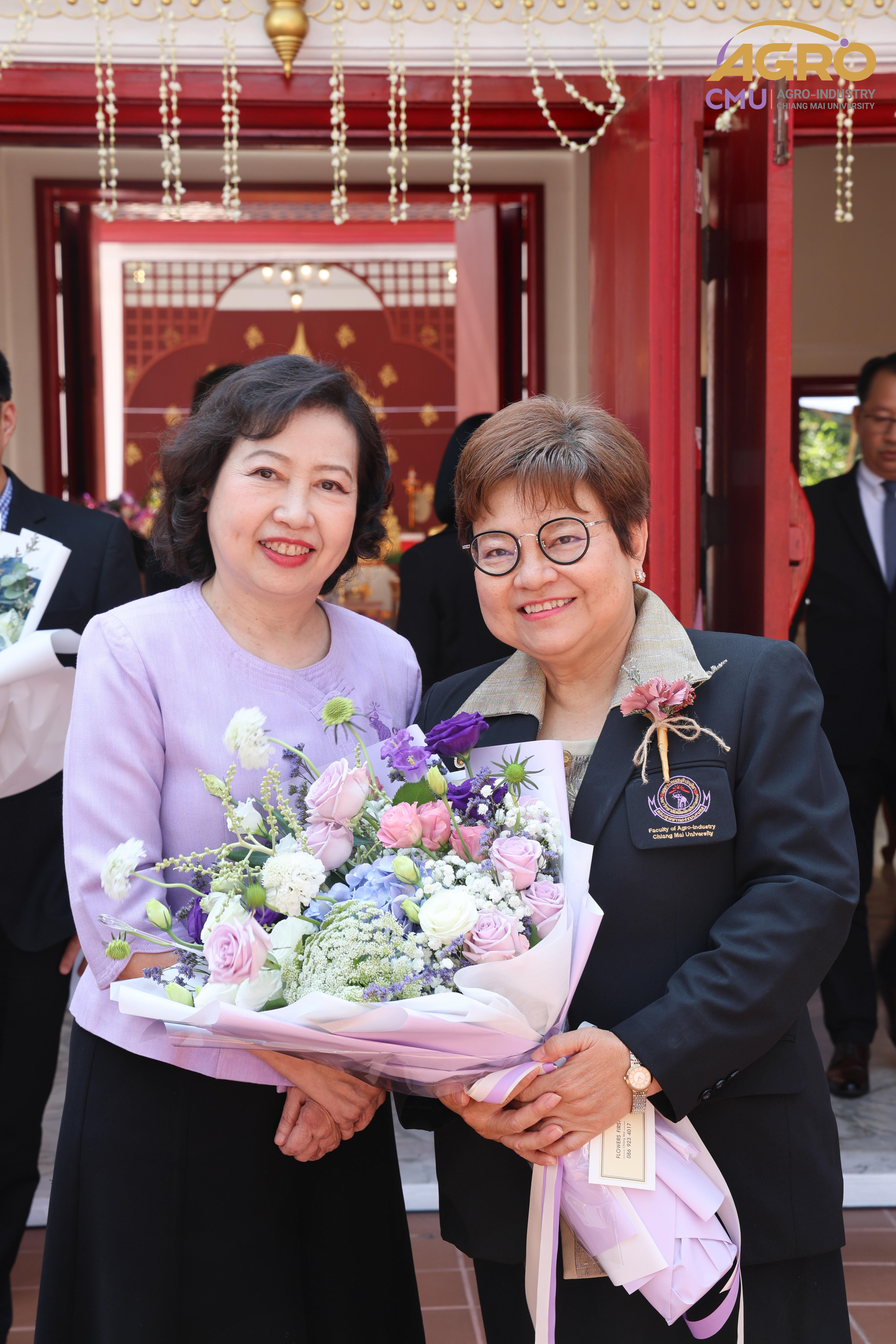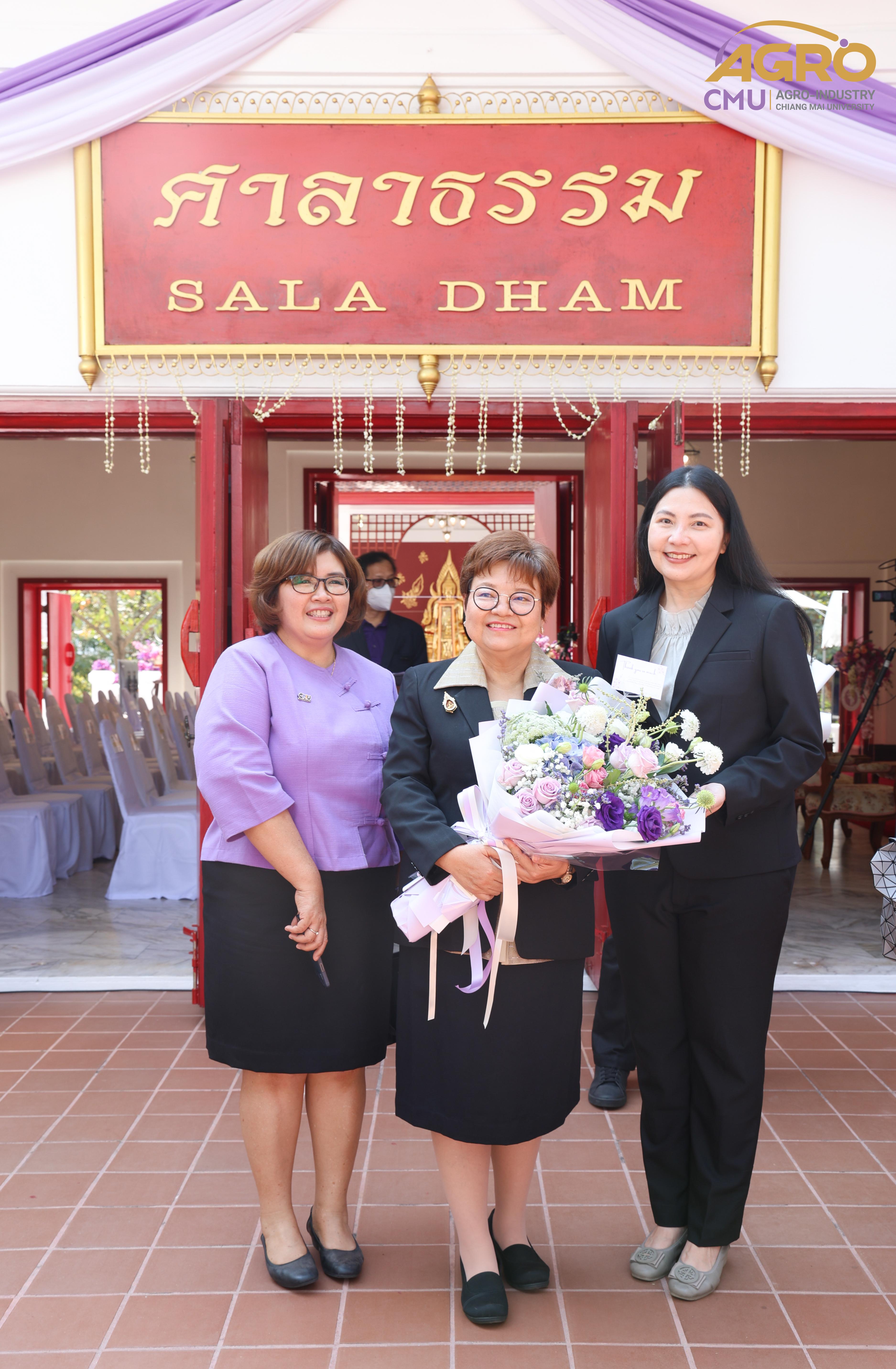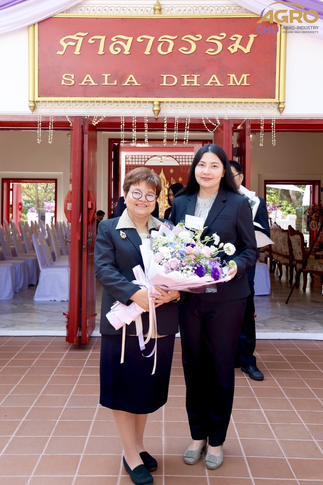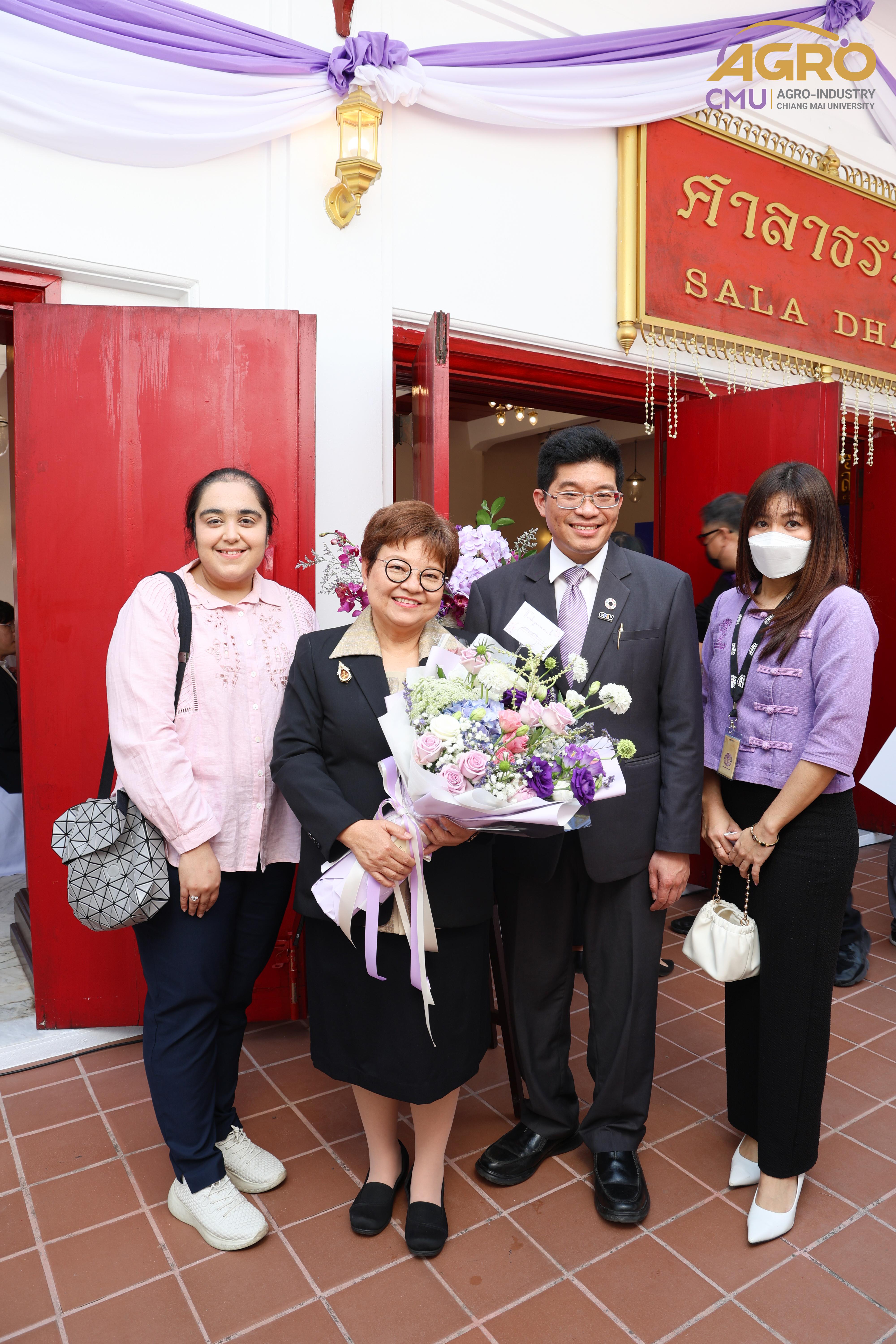 เมื่อวันที่ 24 มกราคม 2567 ผู้ช่วยศาสตราจารย์ ดร.สุจินดา ศรีวัฒนะ คณบดีคณะอุตสาหกรรมเกษตร พร้อมด้วยคณะผู้บริหารและบุคลากรคณะอุตสาหกรรมเกษตร ได้มอบช่อดอกไม้แสดงความขอบคุณ รองศาสตราจารย์ ดร.นิรมล อุตมอ่าง ในโอกาสครบวาระการดำรงตำแหน่งบริหาร ภายในพิธีมอบกิตติบัตรแก่ผู้บริหารที่ครบวาระประจำปี 2567 ในวันคล้ายวันสถาปนามหาวิทยาลัยเชียงใหม่ ประจำปี 2567 ณ ศาลาธรรม มหาวิทยาลัยเชียงใหม่