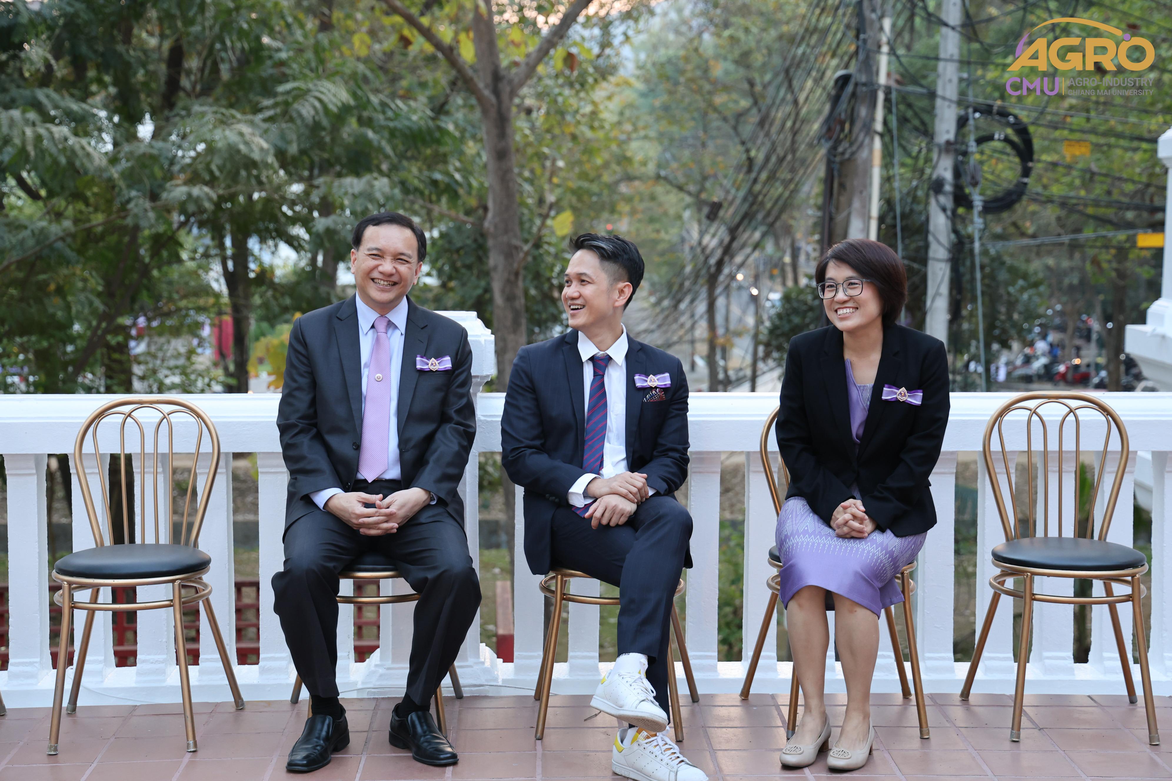 เมื่อวันอาทิตย์ที่ 28 มกราคม 2567 ผู้ช่วยศาสตราจารย์ ดร.สุจินดา ศรีวัฒนะ คณบดีคณะอุตสาหกรรมเกษตร พร้อมด้วยผู้บริหารและบุคลากรคณะอุตสาหกรรมเกษตร ร่วมมอบช่อดอกไม้ เพื่อแสดงความยินดีกับ ศาสตราจารย์ปฏิบัติ ดร.ชรินทร์ เตชะพันธุ์ รองอธิการบดีมหาวิทยาลัยเชียงใหม่ ในโอกาสที่ได้รับการประกาศเกียรติคุณให้เป็น นักศึกษาเก่ามหาวิทยาลัยเชียงใหม่ดีเด่น ประจำปี 2566 สาขาวิชาการ ณ ศาลาธรรม มหาวิทยาลัยเชียงใหม่