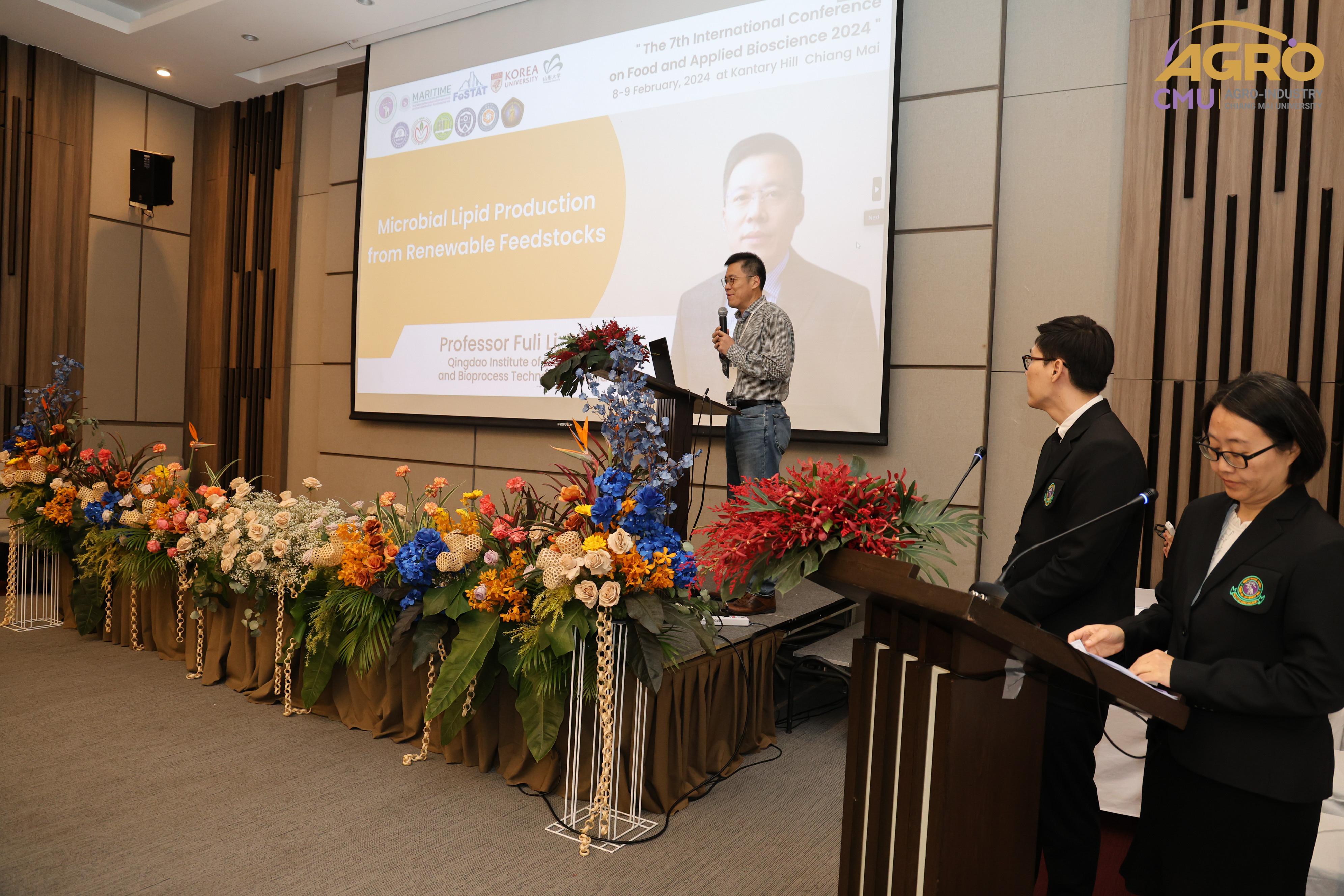 On Thursday, February 8, 2567, Professor of Practice Charin Techapun Ph.D., Vice President representing the President of Chiang Mai University, presided over the opening ceremony of the 7th International Conference on Food and Applied Bioscience 2024: Food and Biotechnology for a sustainable and Bio-Circular-Green Economy. This conference was organized by the Faculty of Agriculture, Chiang Mai University, in collaboration with the College of Marine Studies and Management, Chiang Mai University; Food Science and Technology Association of Thailand (FoSTAT); Korea University; Yamagata University; Qingdao Institute of Bioenergy and Bioprocess Technology; Agro-Industry Academic Council Association (AIAC); Nong Lam University; Yonsei University; GuangZhou Institute of Energy Conversion, Chinese Academy of Sciences; and Universitas Brawijaya during February 8-9, 2567, at Kantary Hills, Chiang Mai. The conference aimed to disseminate academic knowledge and agricultural industry innovations internationally, fostering knowledge exchange, research experiences, and industrial advancements in agriculture to promote collaboration within the agricultural industry network among academics, researchers, relevant government agencies, and the general public. Approximately 200 people registered for the conference, and there were six keynote speakers from five countries: Poland, China, South Korea, Japan, and Thailand, as well as invited speakers from various countries including Malaysia, Indonesia, Spain, and China.