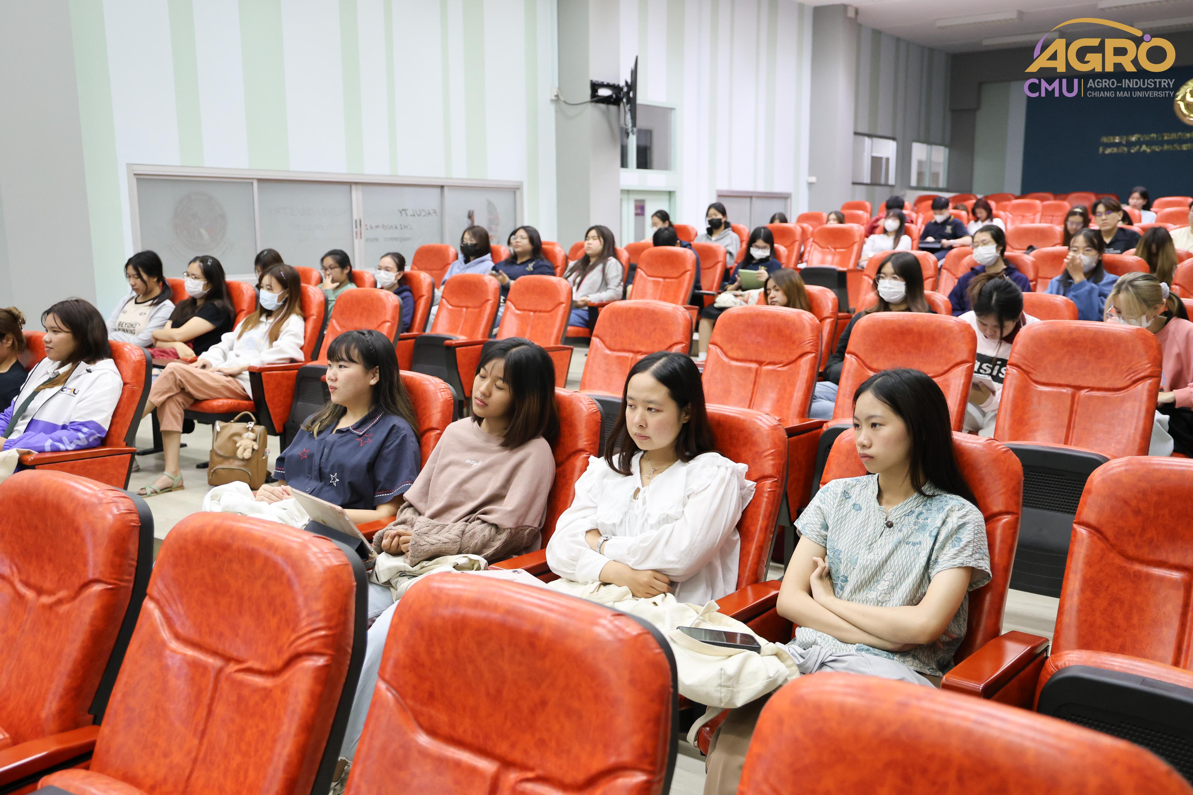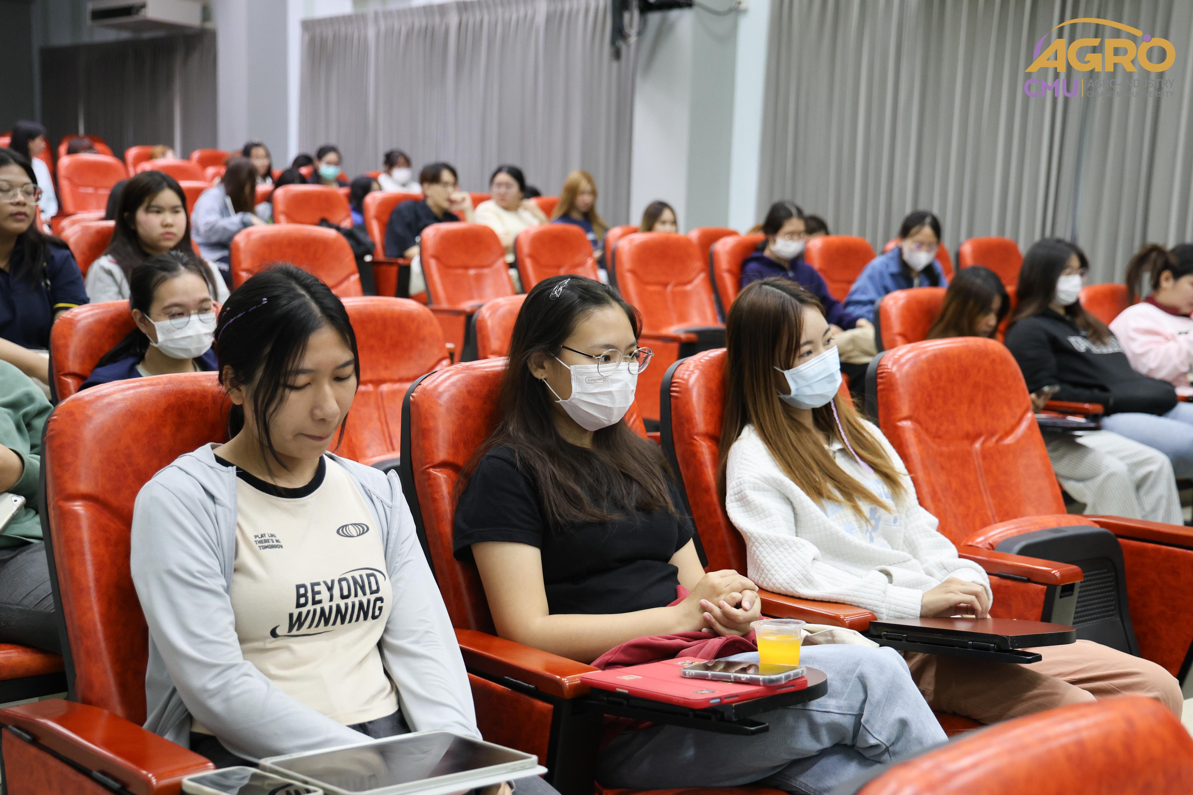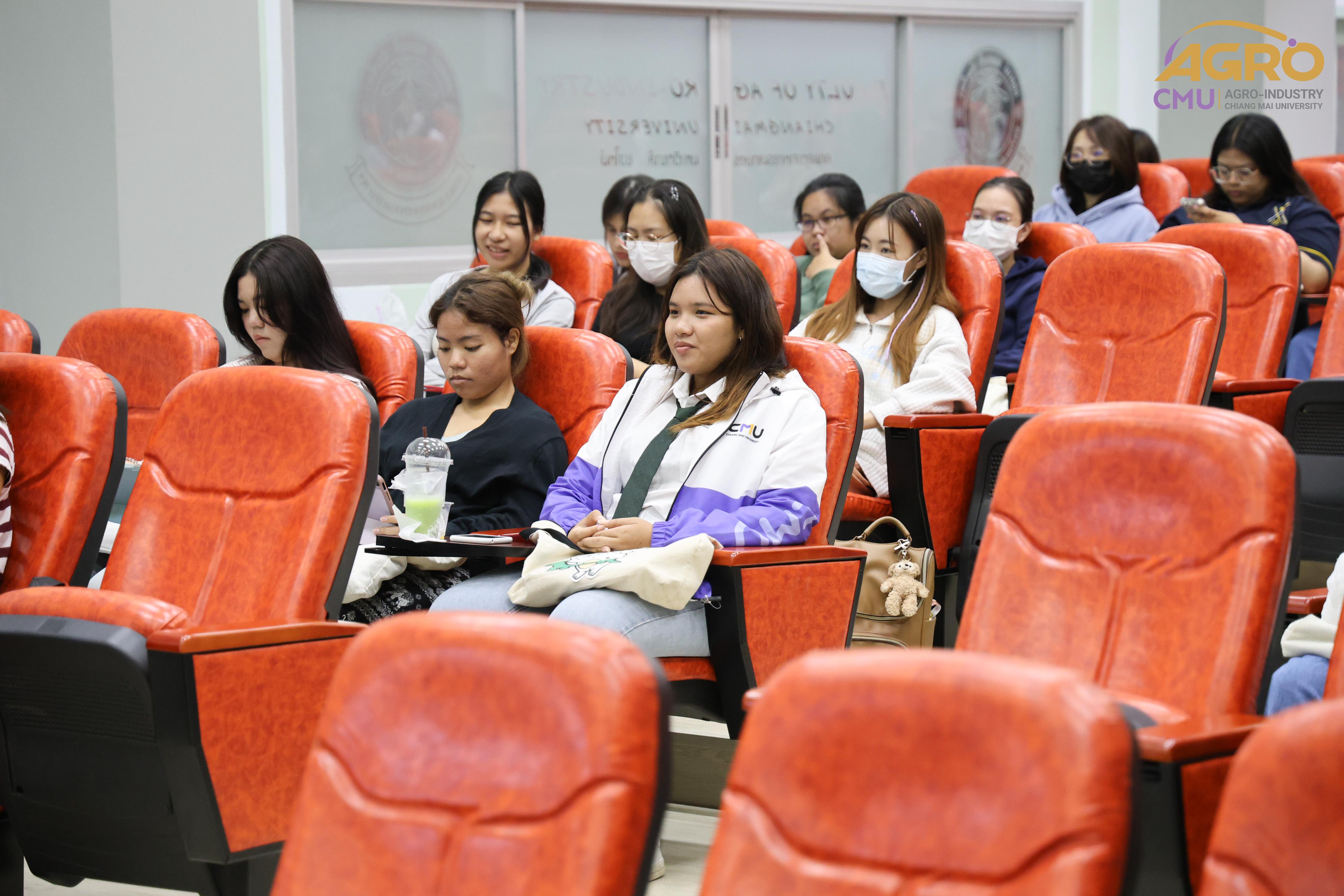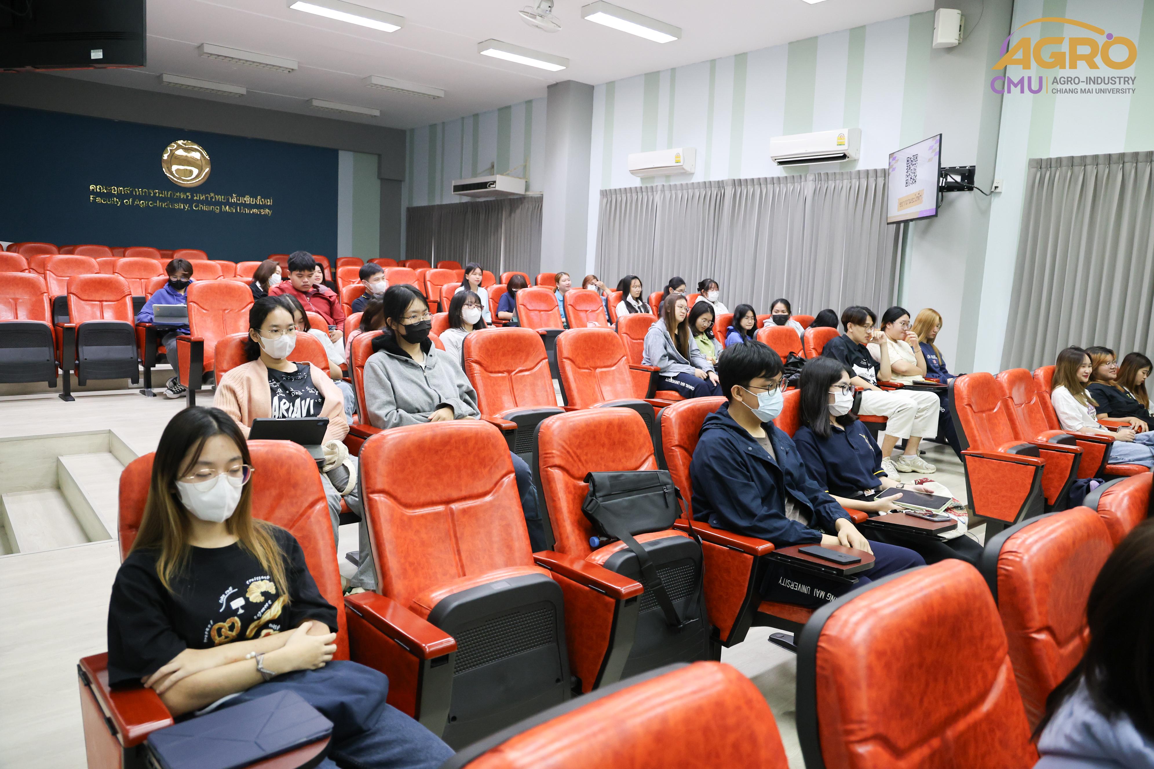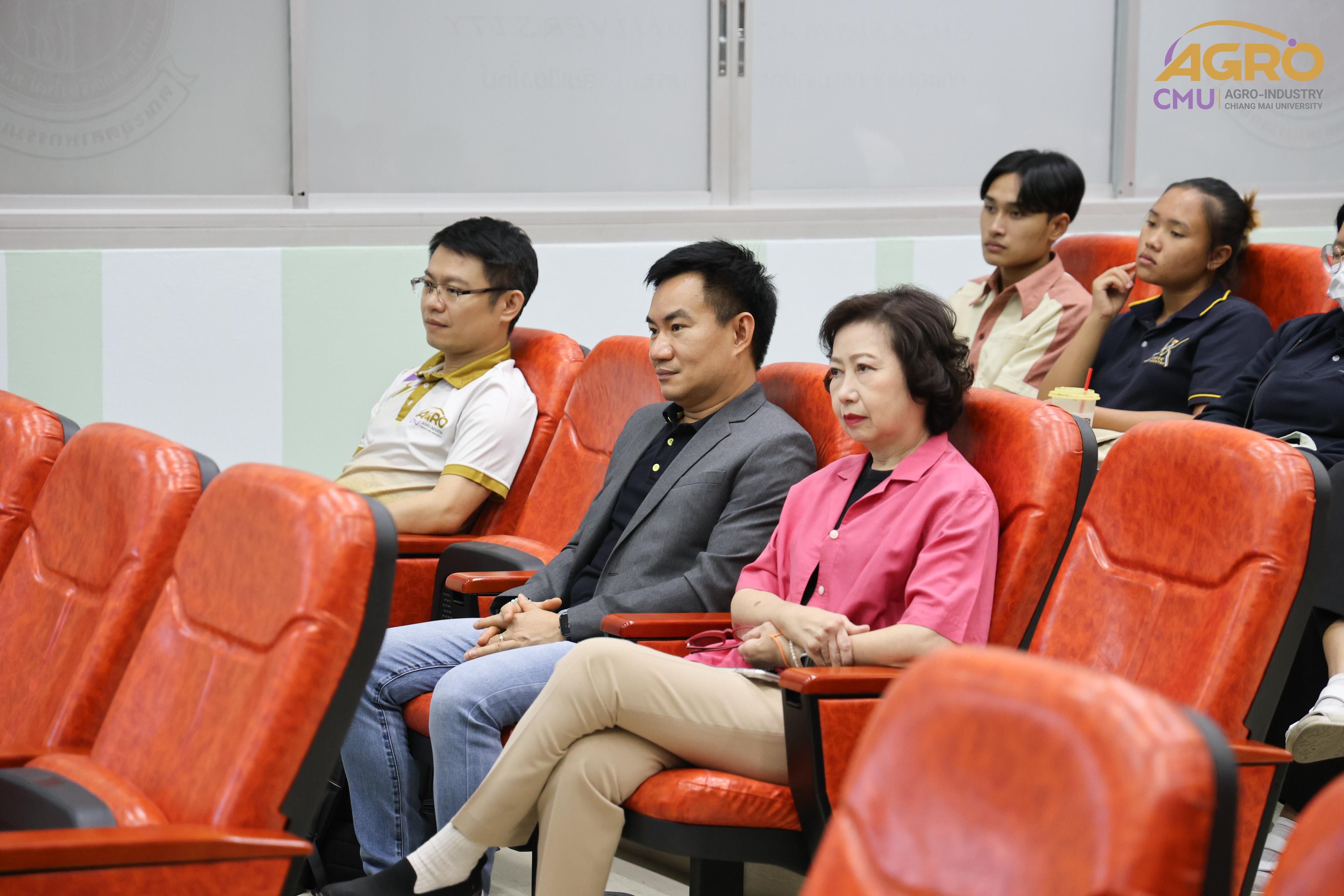 เมื่อวันที่ 19 กุมภาพันธ์ 2567 ที่ผ่านมา สำนักวิชาอุตสาหกรรมเกษตร ได้จัดกิจกรรม “AGRO TALK 2024” เพื่อให้นักศึกษาได้เห็นถึงแนวทางการประกอบอาชีพในอนาคต การเตรียมความพร้อมก่อนเข้าสู่วิชาชีพ และเสริมสร้างความสัมพันธ์อันดีระหว่าง ศิษย์ปัจจุบัน ศิษย์เก่า และบุคลากรของคณะฯ โดยในกิจกรรมนี้ได้รับเกียรติจากรุ่นพี่ศิษย์เก่าหลากหลายสาขาอาชีพในการเป็นวิทยากรและเข้าร่วมการเสวนา จำนวน 5 ท่าน ได้แก่ 1) พี่ต้น (เฉลิมพล ใหม่คำ) ผู้จัดการโรงงานแปรรูปเนื้อไก่ ลำปาง บริษัท ซีพีเอฟ (ประเทศไทย) จำกัด (มหาชน) 2) พี่โต้ (ยุทธพงษ์ เรืองสิริ) รองกรรมการผู้จัดการบริษัท เชียงใหม่ เฮลตี้ โปรดักส์ จำกัด 3) พี่แนน (เบญญาภา ภิญโญฤทธิ์) Medical Representative (บริษัท ลอรีอัล ประเทศไทย จำกัด) 4) พี่เฟิร์น (ธันย์ชนก ยอเสน) นักวิทยาศาสตร์ ห้องปฏิบัติการกลาง คณะเกษตรศาสตร์ มหาวิทยาลัยเชียงใหม่ และ 5) พี่โดนัท (ณัชพล อยู่เย็น) นักวิชาการส่งเสริมการเกษตรปฏิบัติการ สำนักงานเกษตรจังหวัดเชียงใหม่