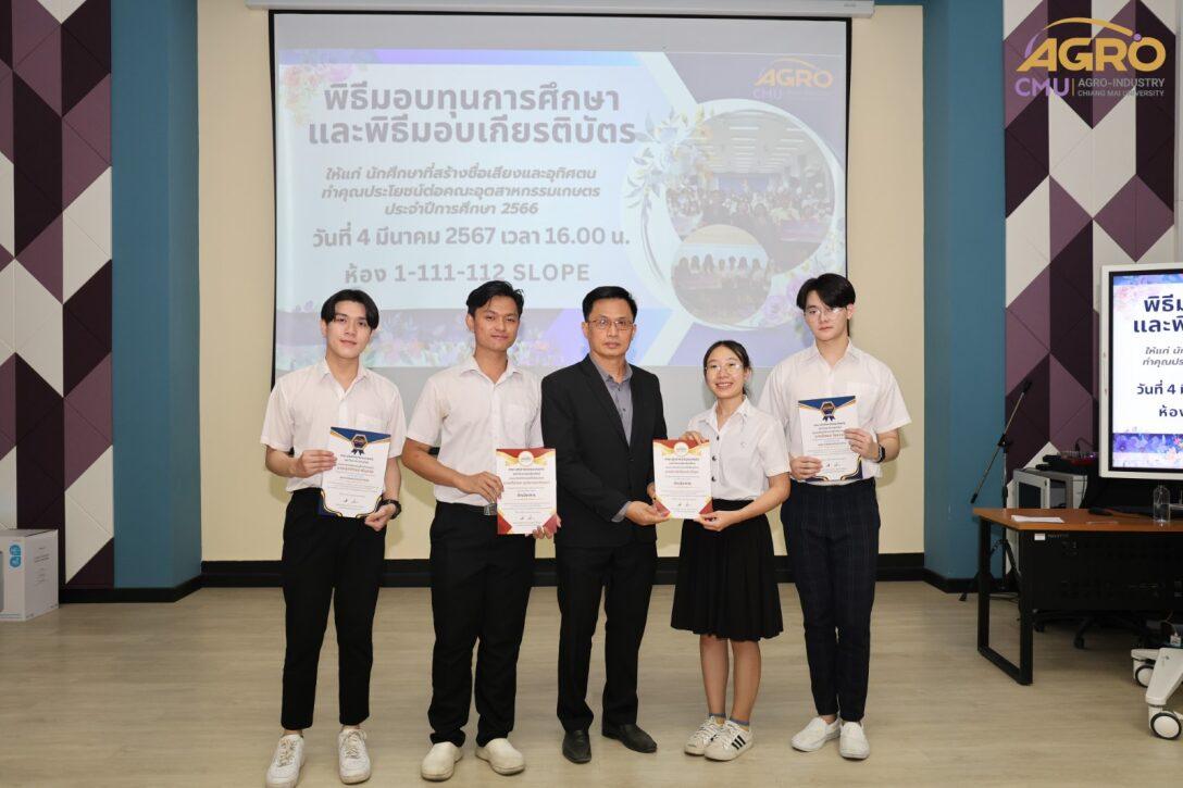 พิธีมอบทุนการศึกษาคณะอุตสาหกรรมเกษตร และพิธีมอบเกียรติบัตรให้แก่นักศึกษาที่สร้างชื่อเสียงและอุทิศตนทำคุณประโยชน์ต่อคณะอุตสาหกรรมเกษตร ประจำปีการศึกษา 2566