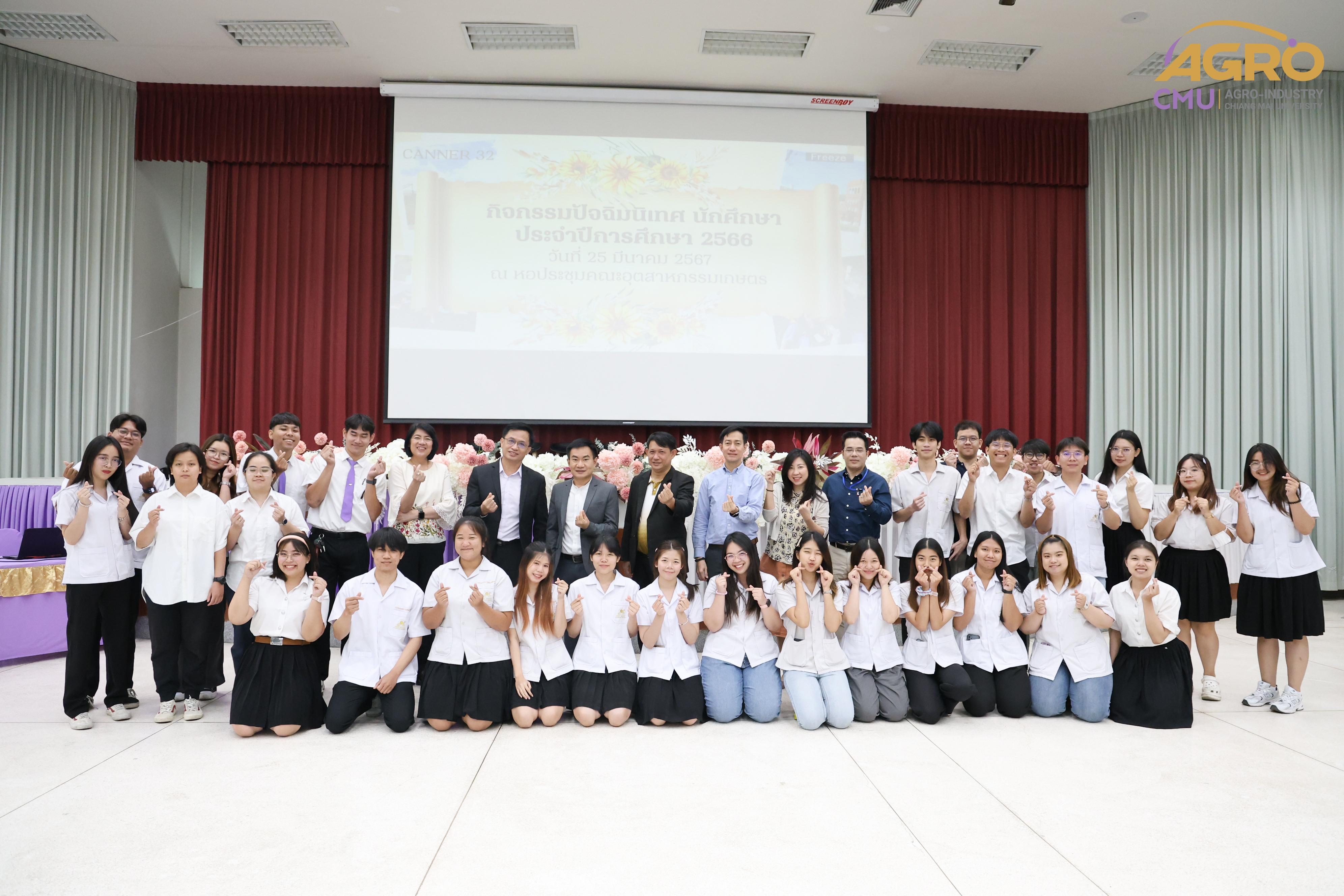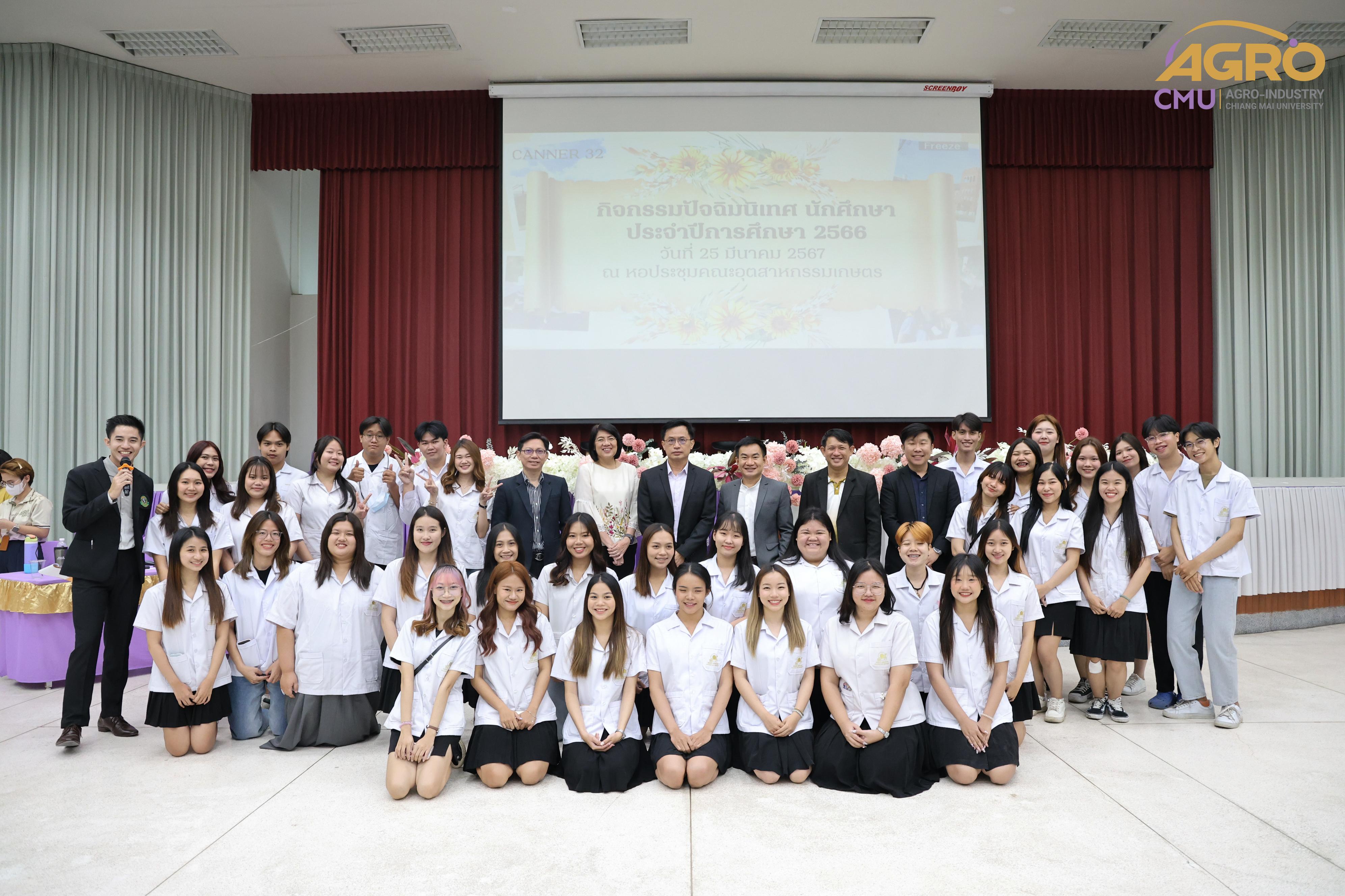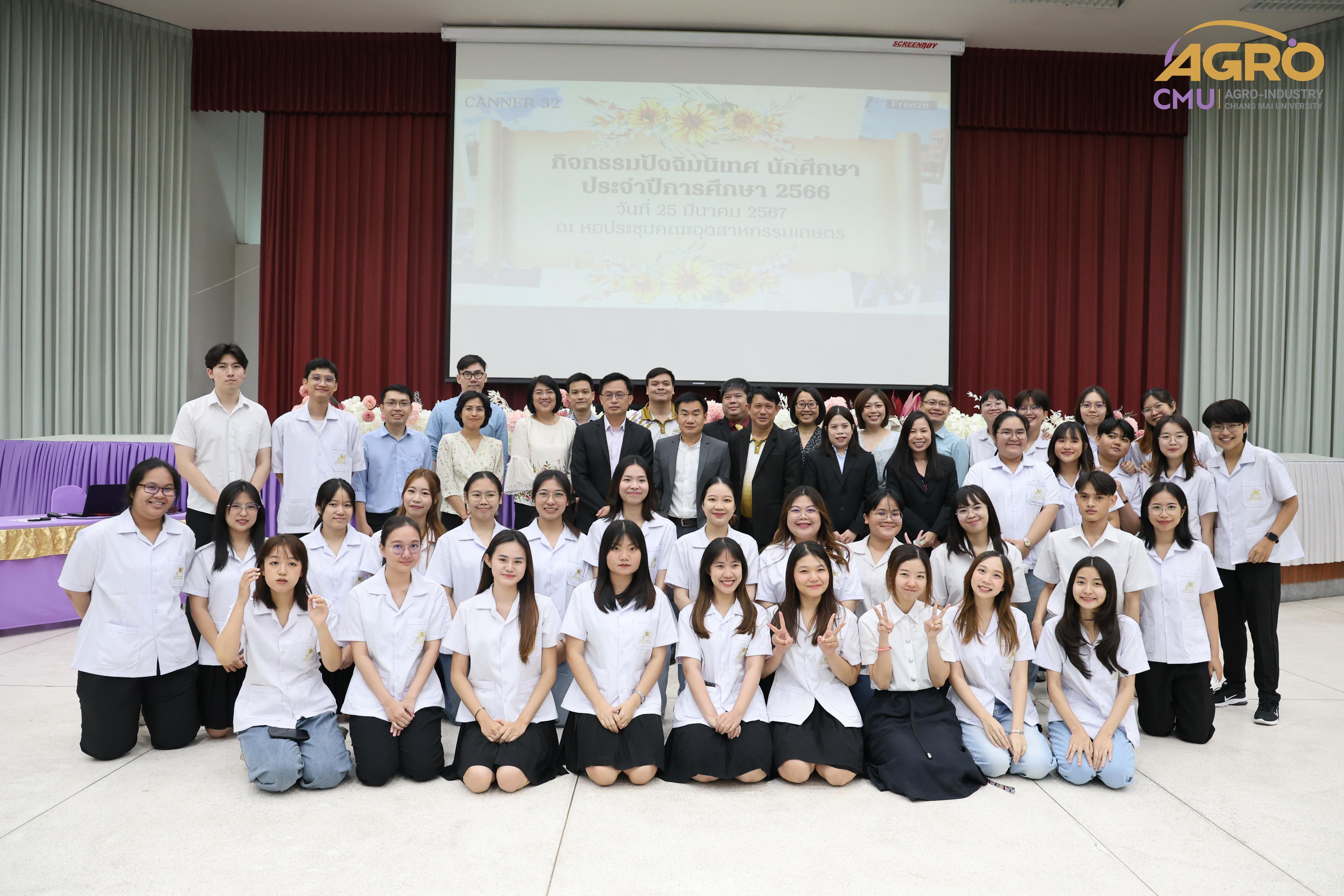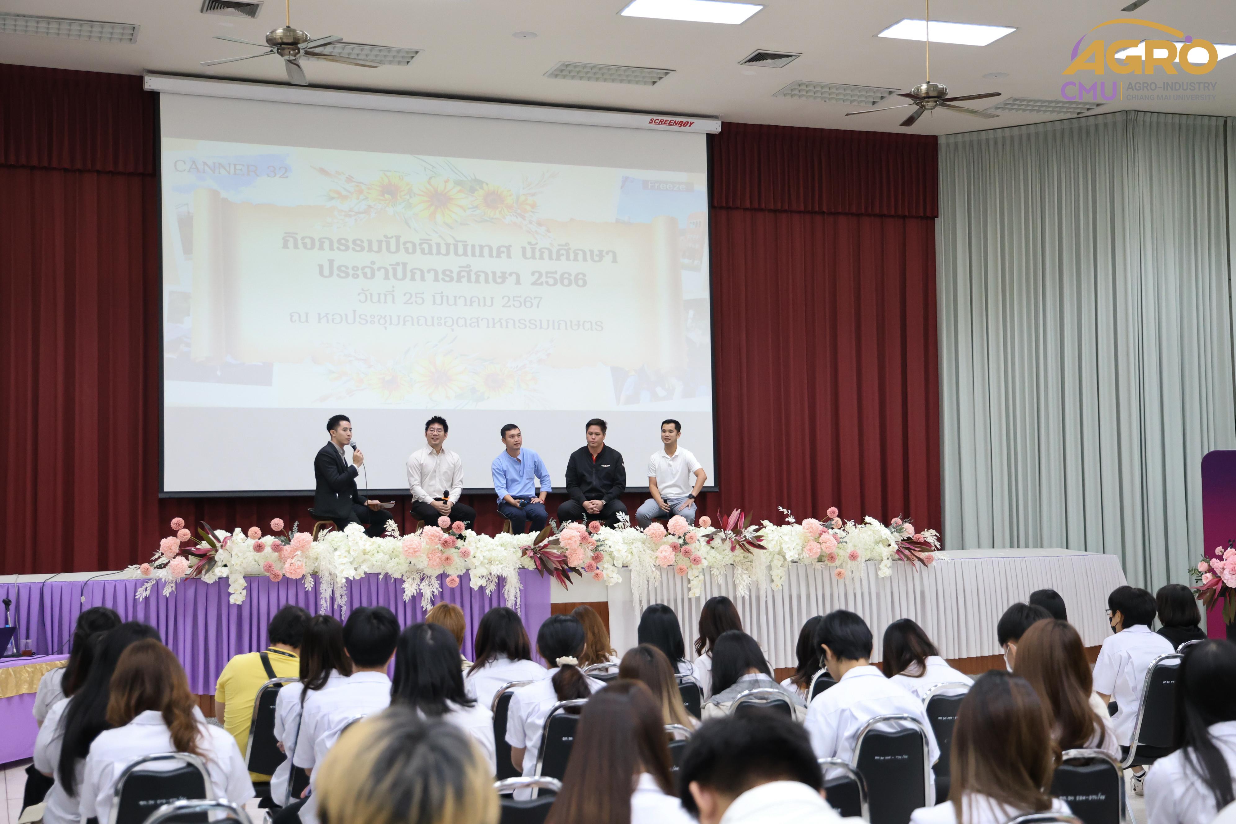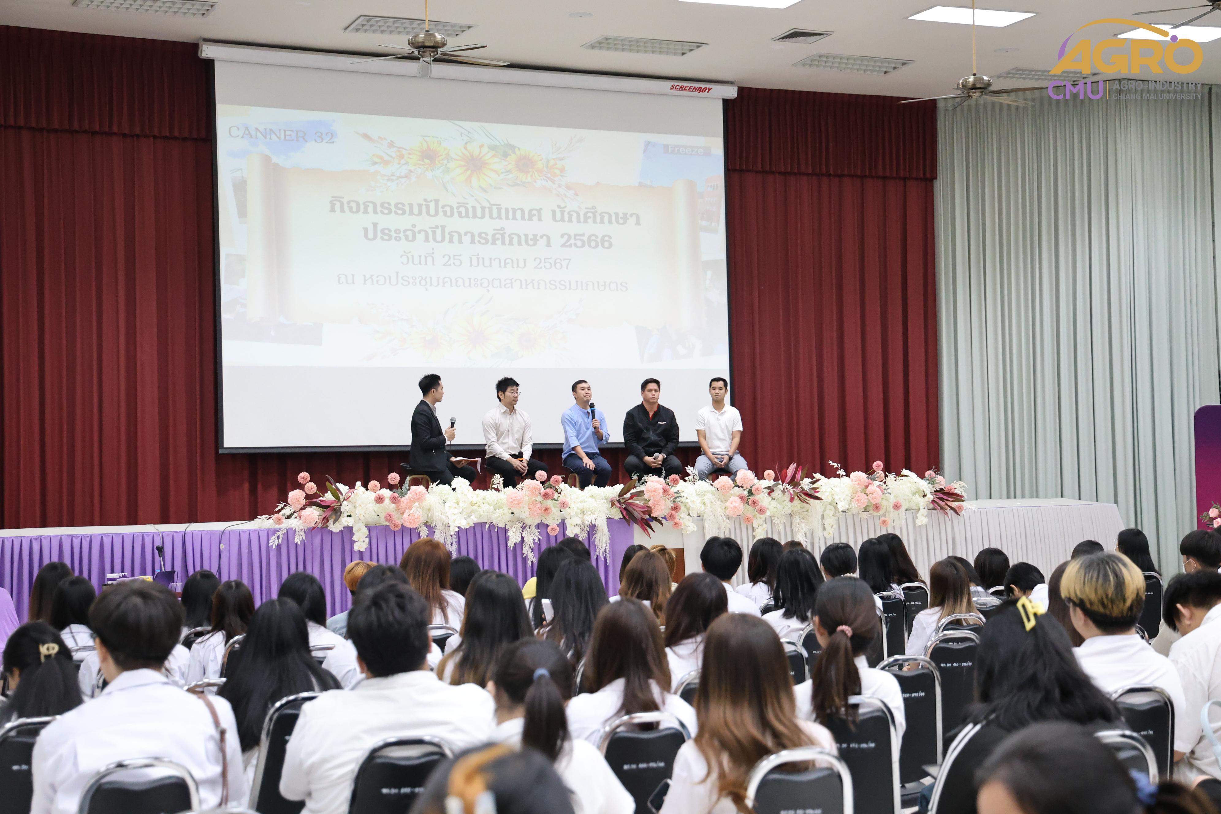 เมื่อวันที่ 25 มีนาคม 2567 ทางคณะอุตสาหกรรมเกษตร มหาวิทยาลัยเชียงใหม่ ได้มีการจัดกิจกรรม “ปัจฉิมนิเทศนักศึกษา ปีการศึกษา 2566” โดยมี ผู้ช่วยศาสตราจารย์ ดร.สุทัศน์ สุระวัง รองคณบดีคณะอุตสาหกรรมเกษตร เป็นประธานเปิดงานและกล่าวให้โอวาทแก่นักศึกษา ณ หอประชุมคณะอุตสาหกรรมเกษตร มหาวิทยาลัยเชียงใหม่ ภายในงานมีการแนะนำการศึกษาต่อหลักสูตรของคณะอุตสาหกรรมเกษตรและทุนการศึกษาต่าง ๆ และมีการเสวนาจากสมาคมศิษย์เก่า คณะอุตสาหกรรมเกษตร เรื่องการเตรียมความพร้อมเพื่อเข้าสู่การทำงานและวิธีการเตรียมตัวสมัครงาน พร้อมทั้งมีการรับประทานอาหารร่วมกัน เพื่อสร้างความสัมพันธ์อันดีระหว่างคณาจารย์และนักศึกษาที่กำลังจะสำเร็จการศึกษา