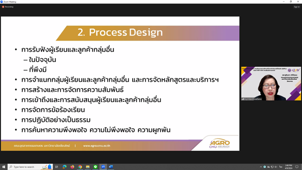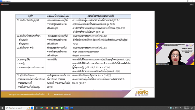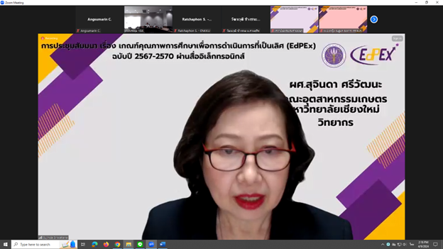 เมื่อวันที่ 9 เมษายน 2567 ผู้ช่วยศาสตราจารย์ ดร. สุจินดา ศรีวัฒนะ คณบดีคณะอุตสาหกรรมเกษตร มหาวิทยาลัยเชียงใหม่ ได้รับเกียรติเป็นวิทยากร ในการประชุมสัมมนา เรื่อง "เกณฑ์คุณภาพการศึกษาเพื่อการดำเนินการที่เป็นเลิศ (EdPEx) ฉบับปีพ.ศ.2567 - 25670" ในหัวข้อ "หมวด 3 : ลูกค้าและผลลัพธ์ที่เกี่ยวข้อง" ผ่านสื่ออิเล็กทรอนิกส์ จัดโดย สำนักงานปลัดกระทรวงการอุดมศึกษา วิทยาศาสตร์ วิจัยและนวัตกรรม เพื่อให้ผู้บริหารและบุคลากรของสถาบันอุดมศึกษา ที่มีความมุ่งมั่นตั้งใจที่จะนำเกณฑ์ EdPEx ไปใช้เป็นแนวทางในการบริหารองค์กรสู่ความเป็นเลิศ ได้มีความรู้ ความเข้าใจ สามารถประเมินตนเองได้อย่างรอบด้านว่าขณะนี้องค์กรอยู่ในตำแหน่งใดและต้องการมุ่งไปที่ใด โดยจะได้รับความรู้ตั้งแต่การจัดทำโครงร่างองค์กร (Organization Profile) การปรับปรุงพัฒนากระบวนการและผลลัพธ์ ซึ่งจะช่วยในการค้นหาจุดแข็งและโอกาสในการพัฒนา รวมทั้งบรรลุเป้าประสงค์เชิงกลยุทธ์ เพื่อมุ่งสู่ความเป็นเลิศ ส่งผลให้เกิดคุณภาพการศึกษาและความยั่งยืนขององค์กร ณ ห้อง Ez Studio AO-216