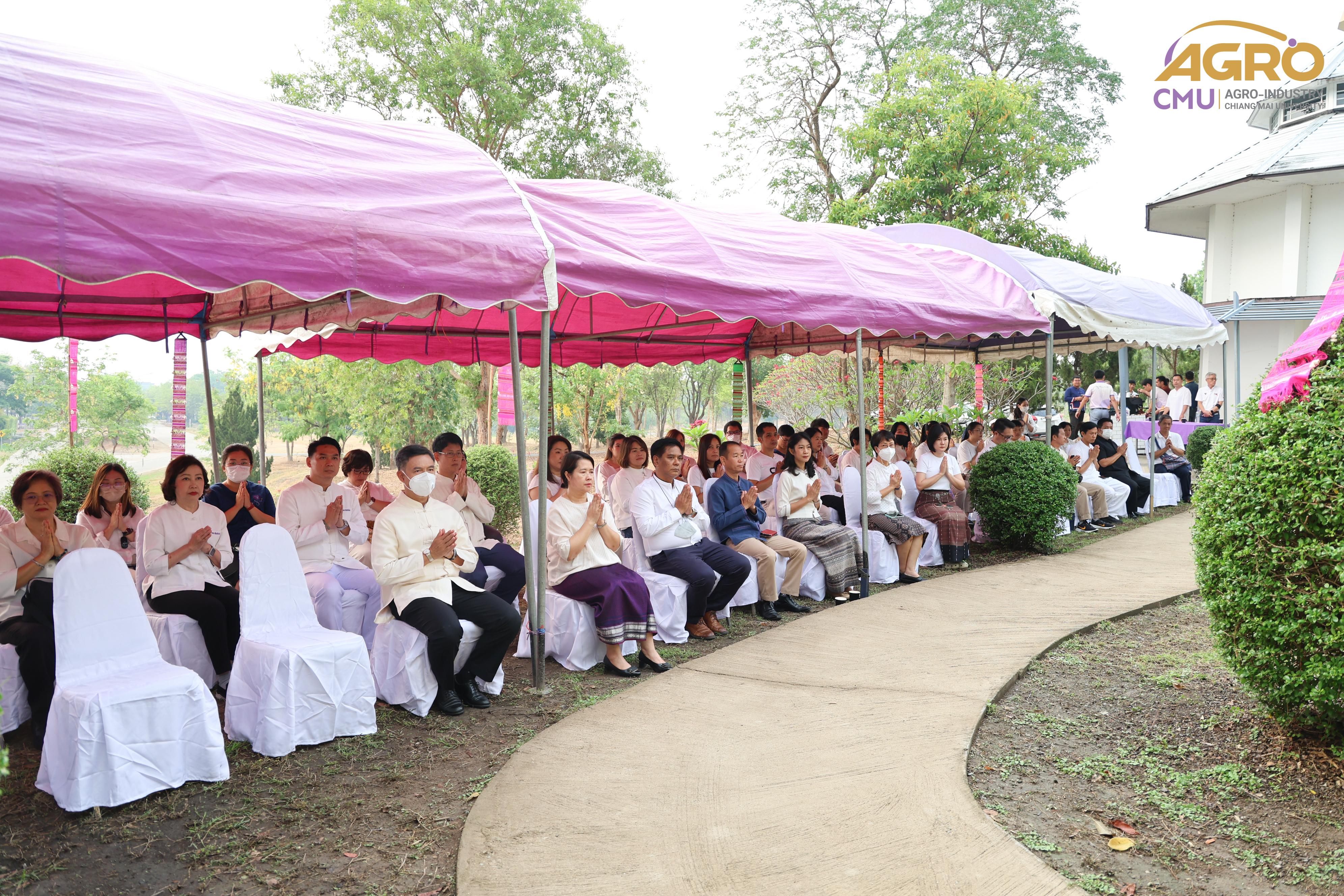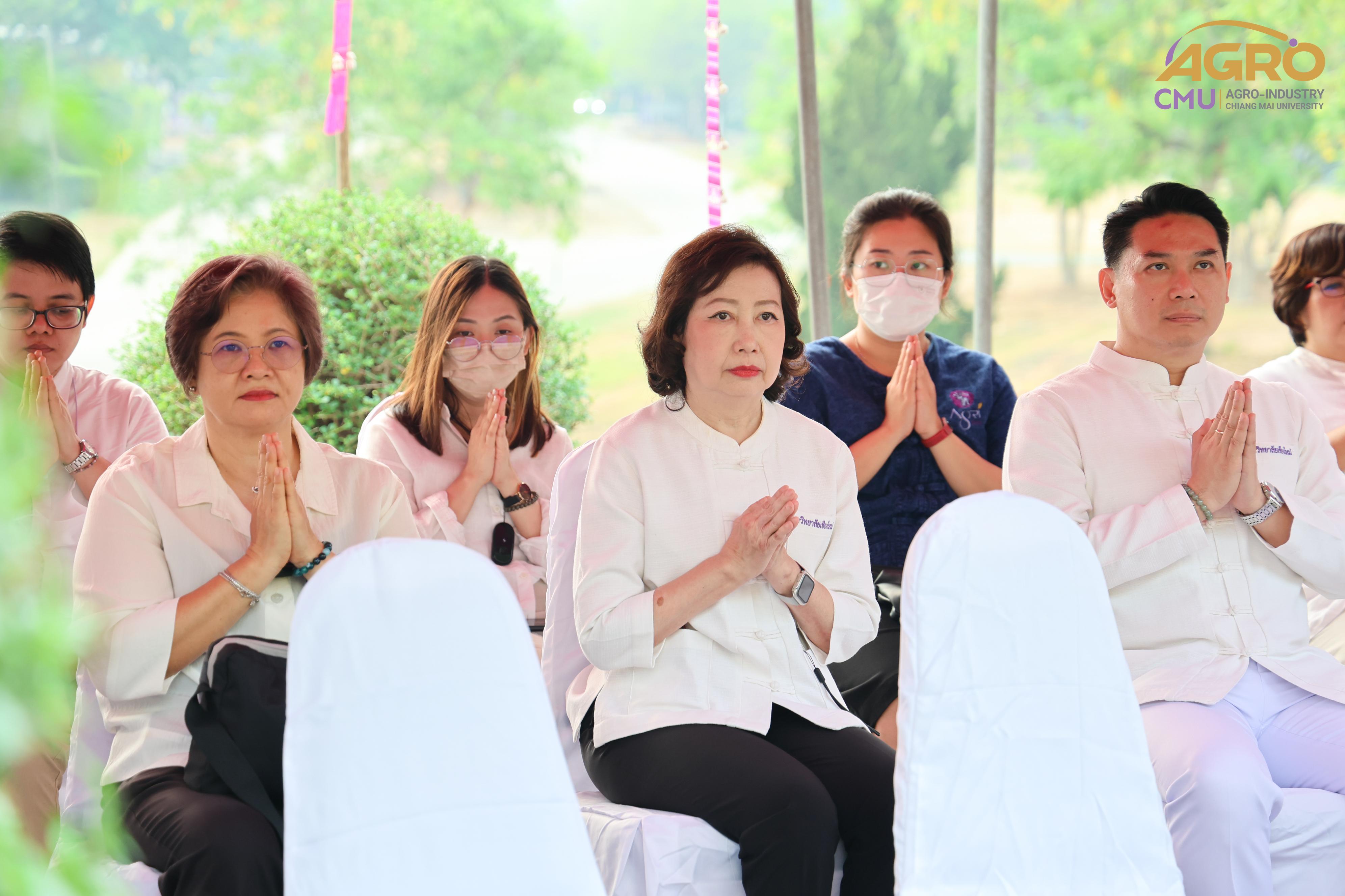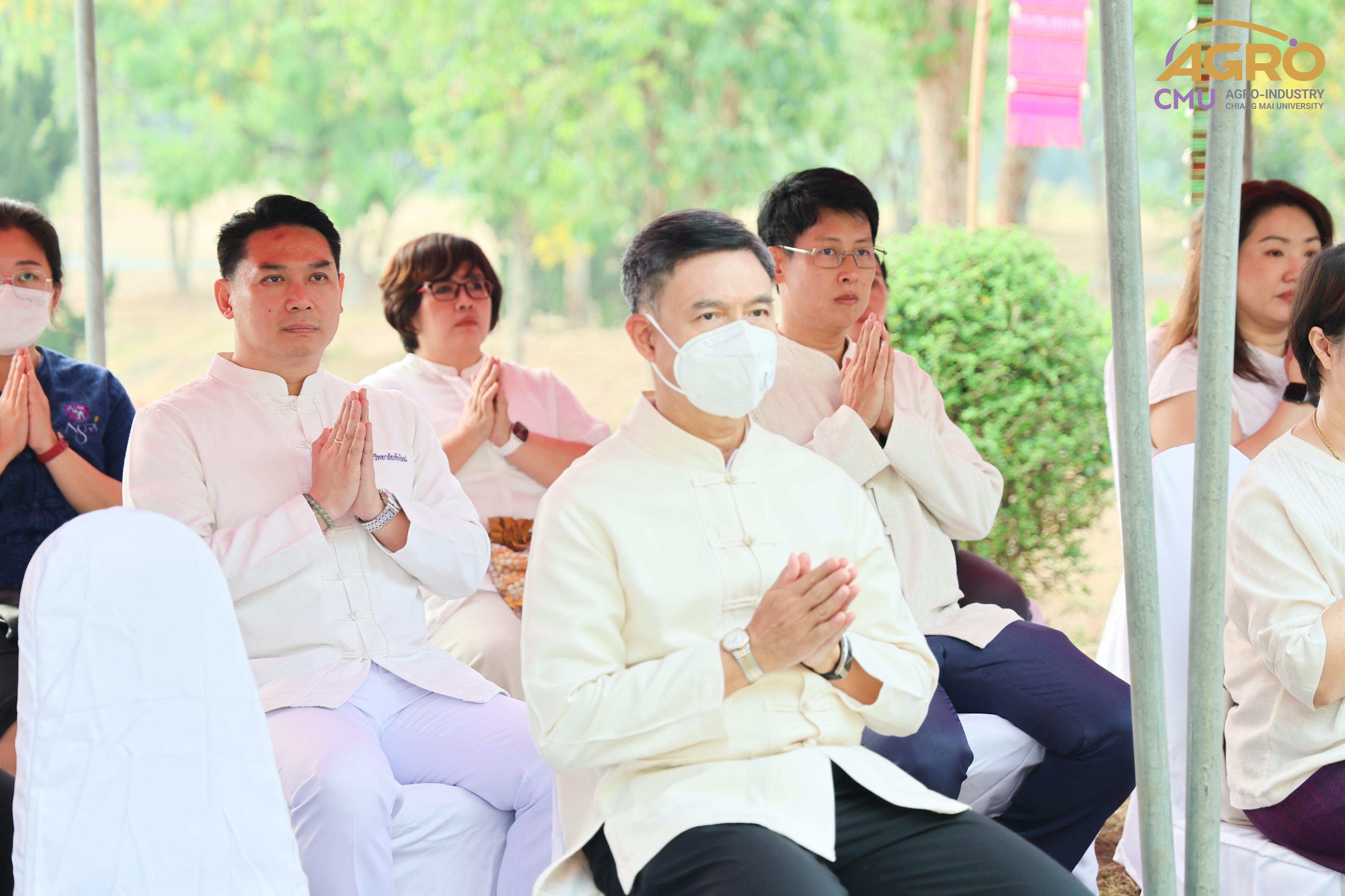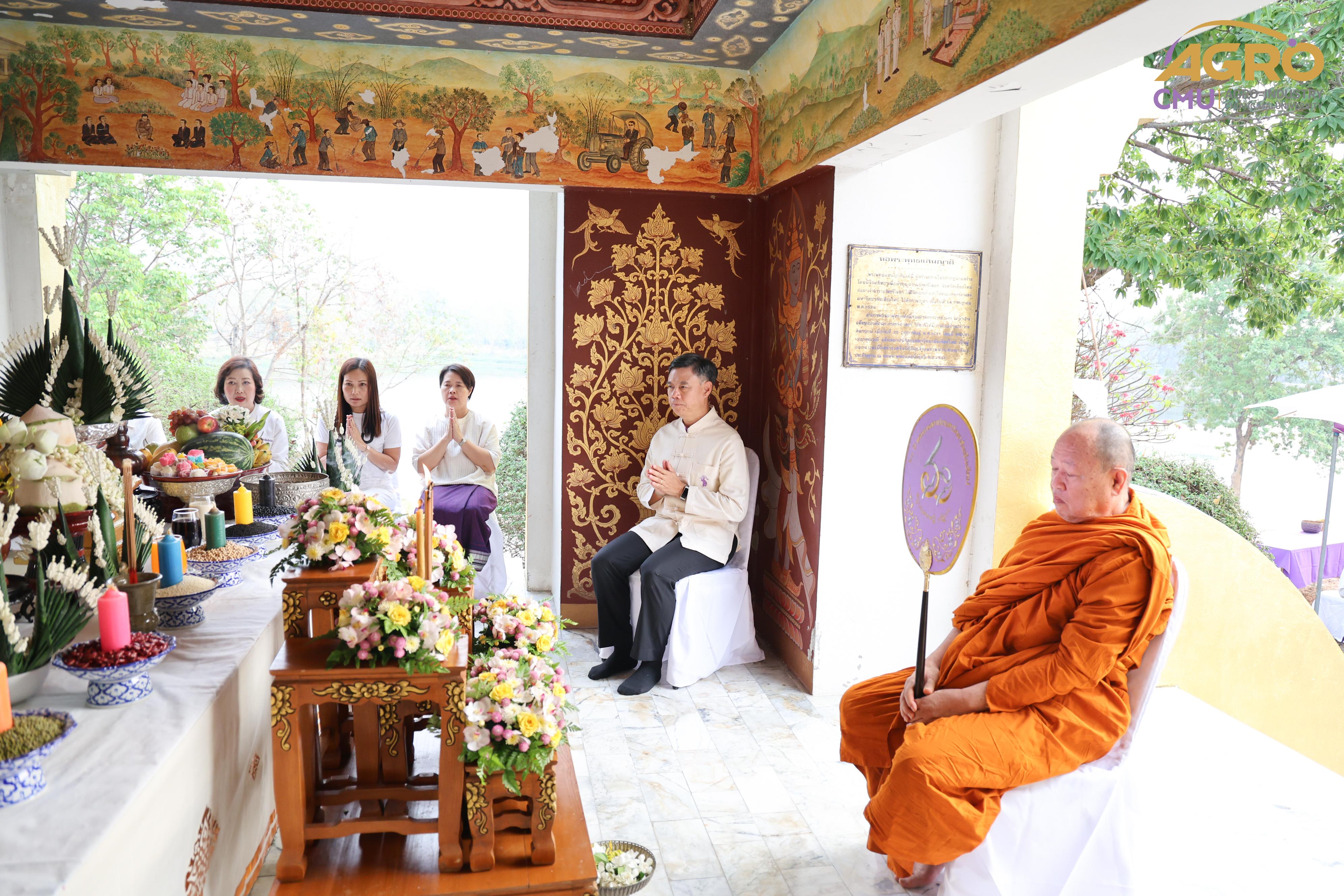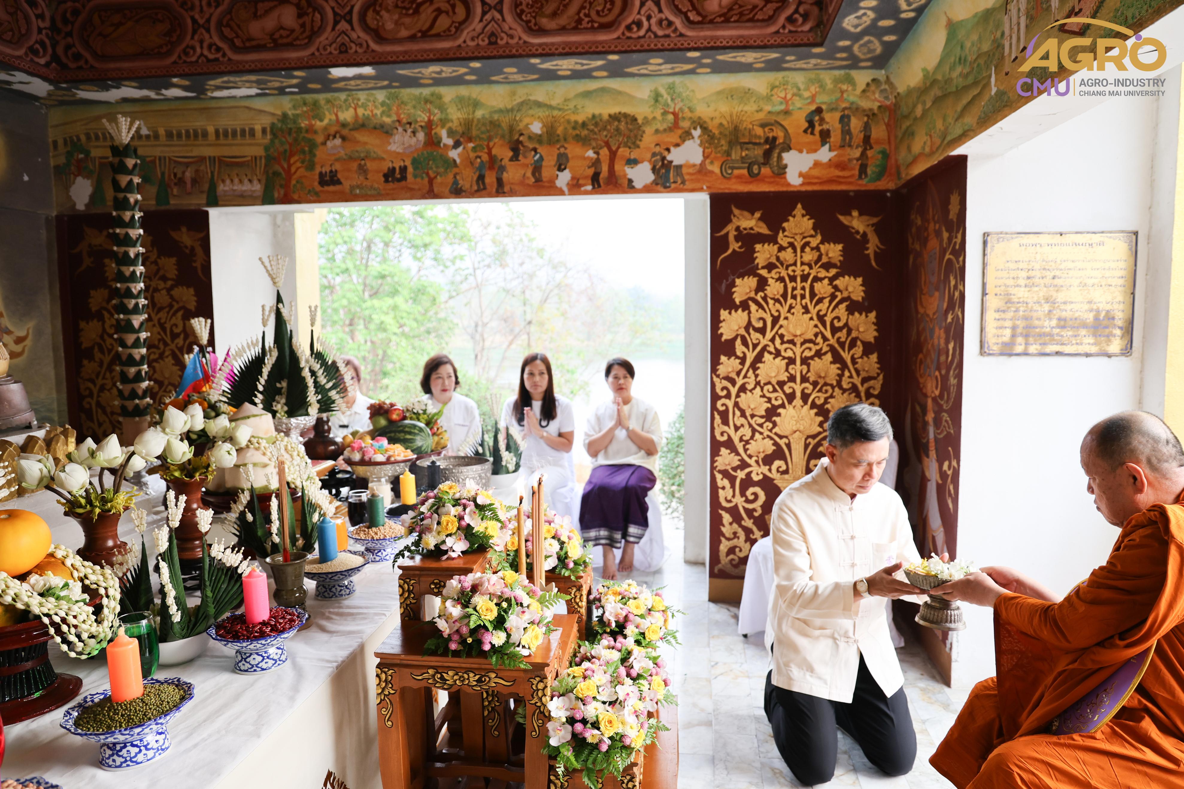เมื่อวันที่ 7 พฤษภาคม 2567 ผู้ช่วยศาสตราจารย์ ดร.สุจินดา ศรีวัฒนะ คณบดีคณะอุตสาหกรรมเกษตร พร้อมด้วย นางสาวปิยะนุช สวัสดี เลขานุการคณะอุตสาหกรรมเกษตร ร่วมพิธีบวงสรวงบอกกล่าวเทพาอารักษ์ประจำองค์พระพุทธแสนญาติ ณ หอพระพุทธแสนญาติ ศูนย์วิจัย บูรณาการ สาธิตและฝึกอบรมนวัตกรรมการเกษตร (ไร่แม่เหียะ) คณะเกษตรศาสตร์