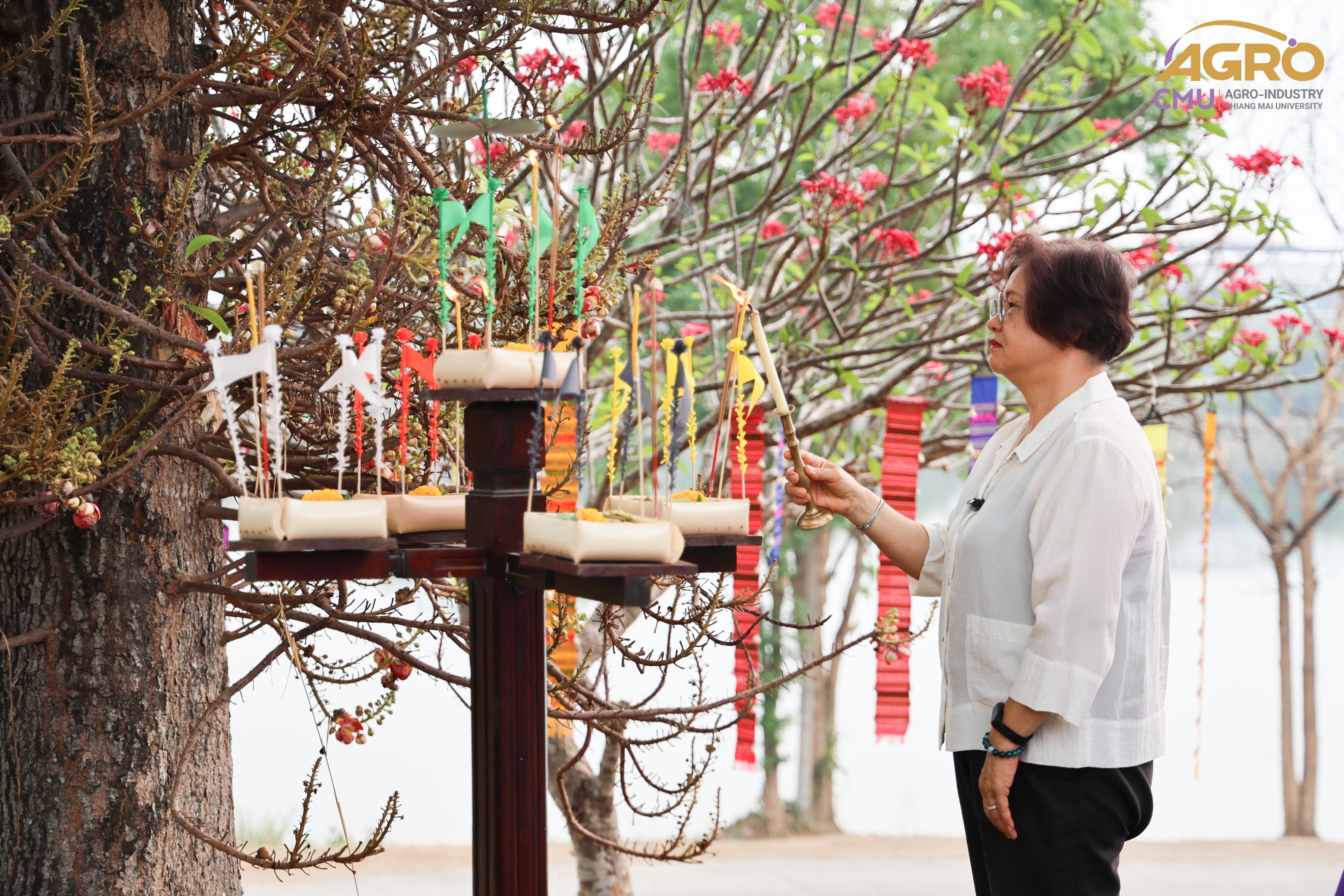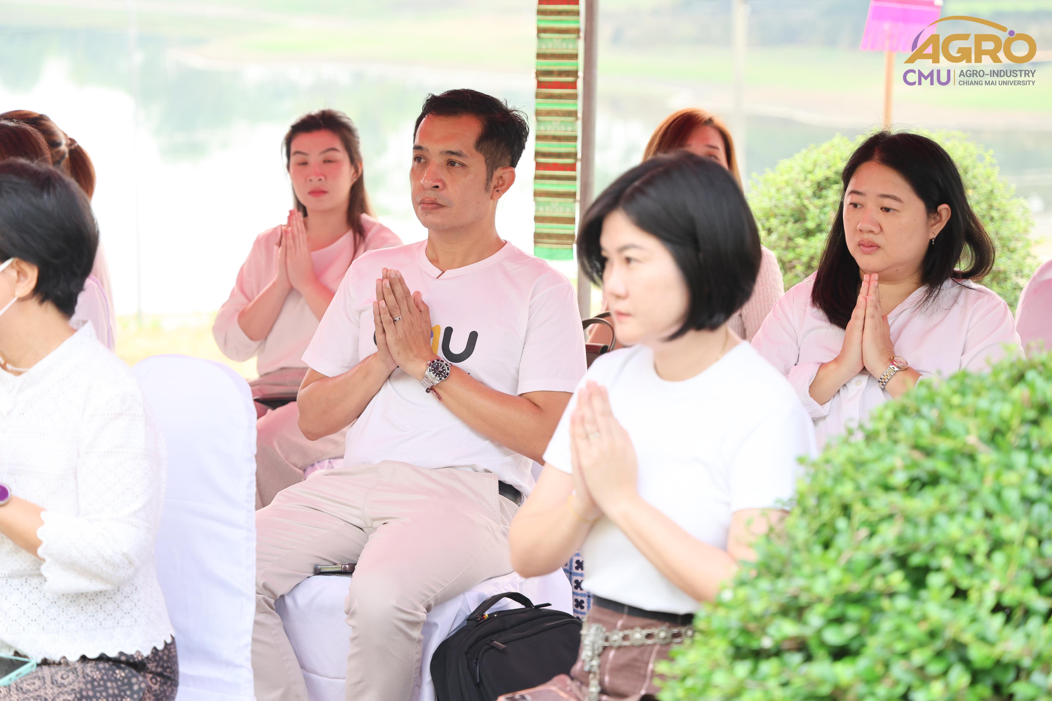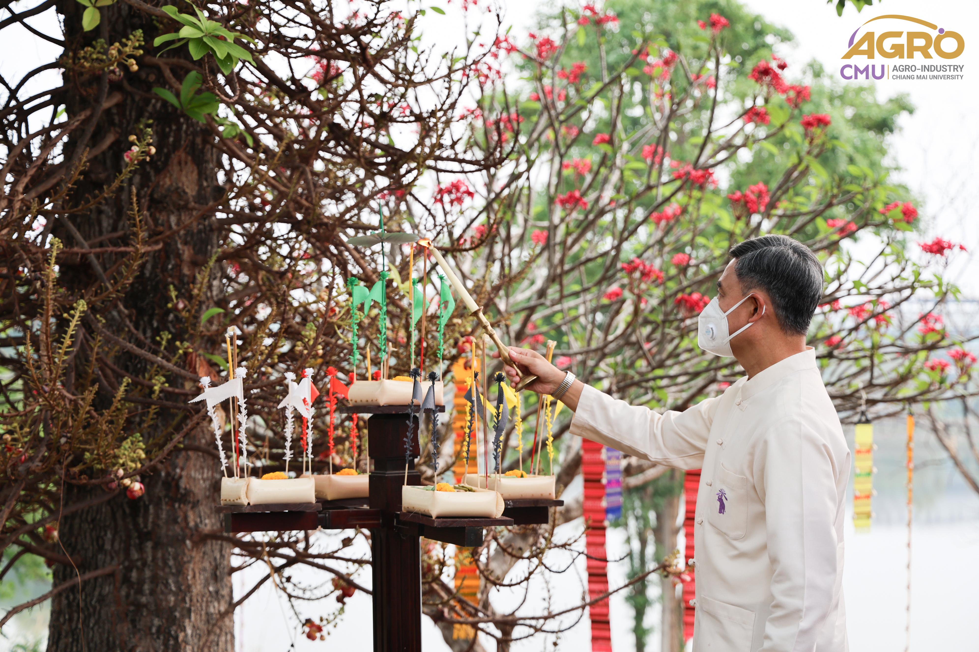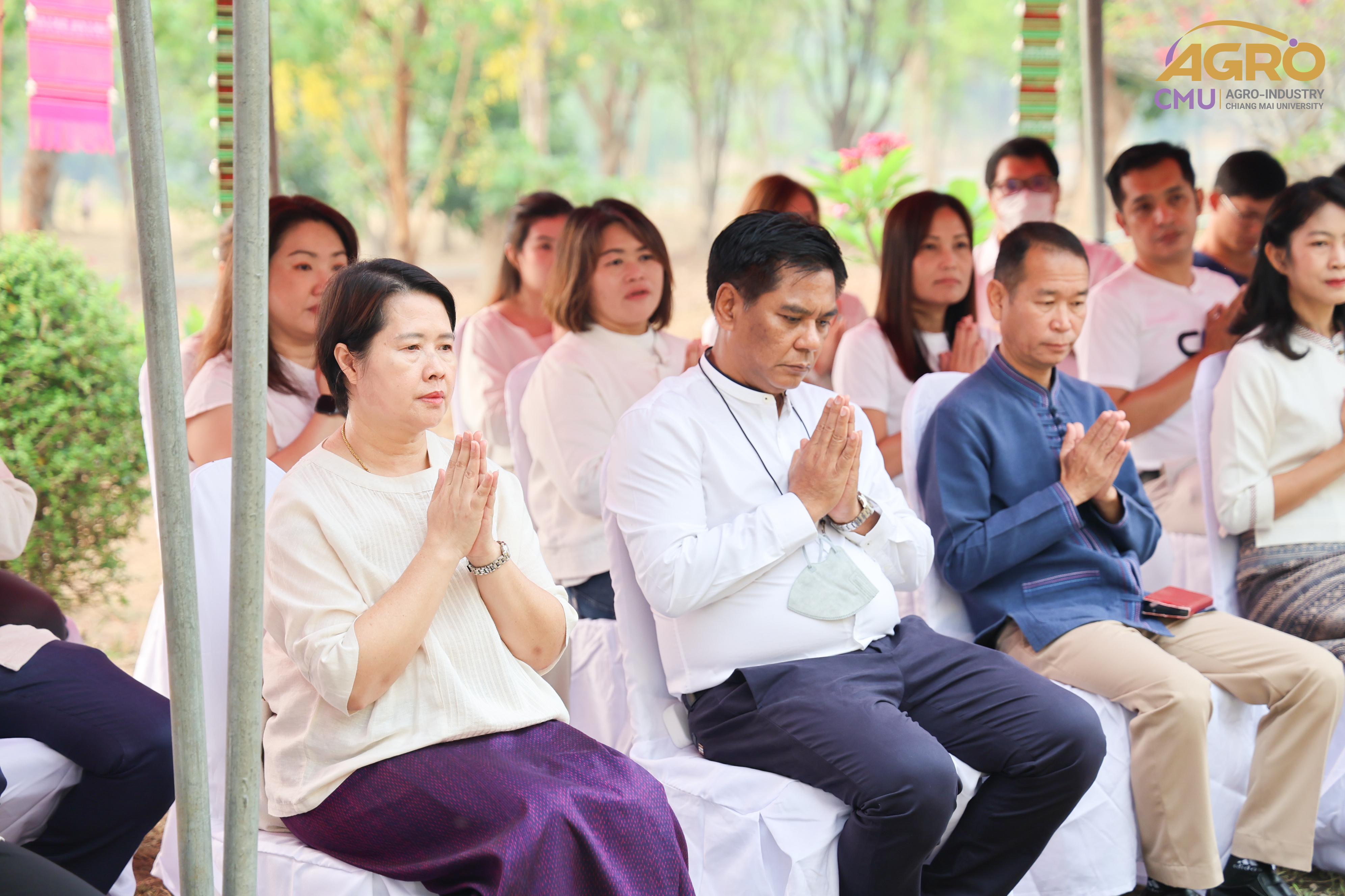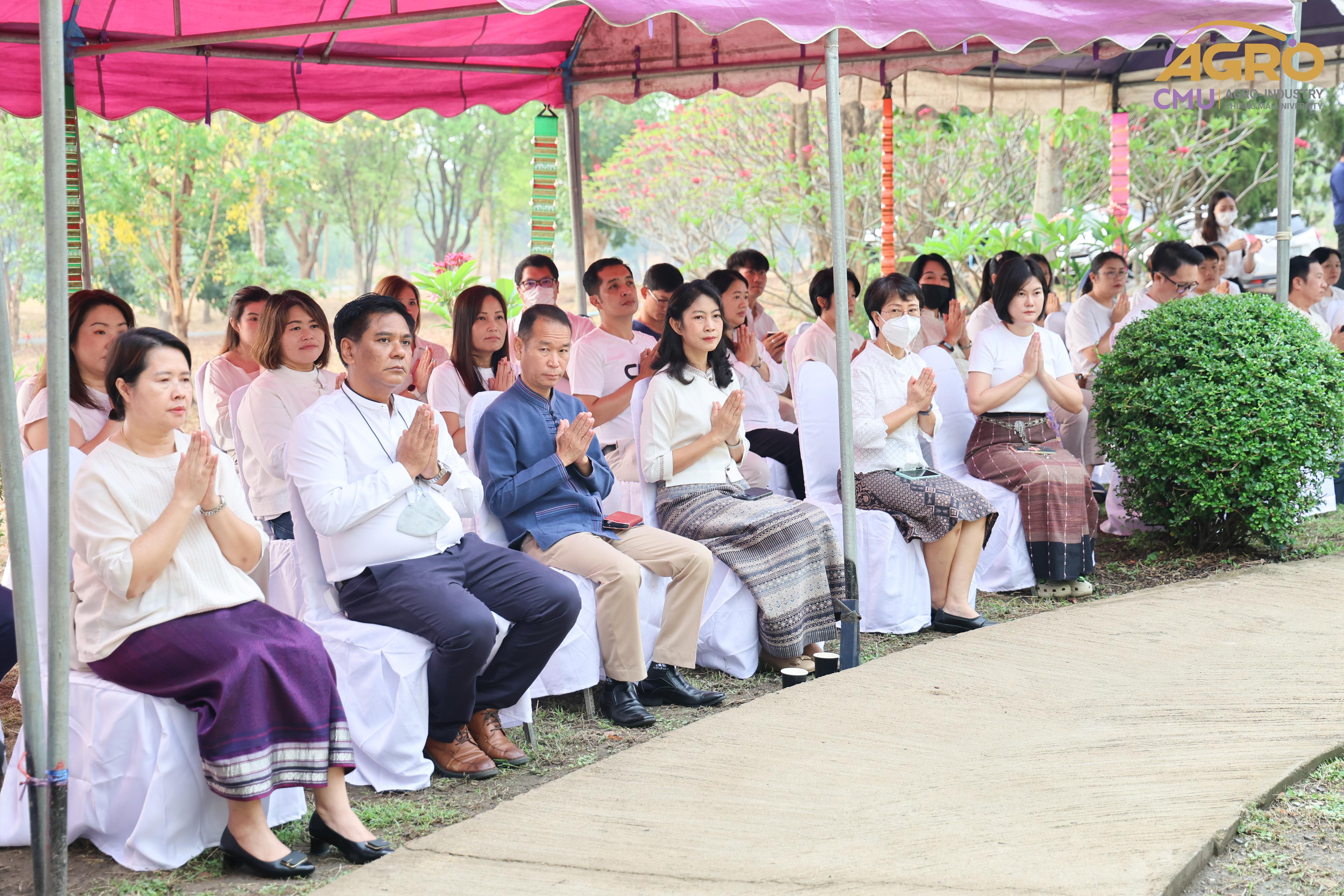 เมื่อวันที่ 7 พฤษภาคม 2567 ผู้ช่วยศาสตราจารย์ ดร.สุจินดา ศรีวัฒนะ คณบดีคณะอุตสาหกรรมเกษตร พร้อมด้วย นางสาวปิยะนุช สวัสดี เลขานุการคณะอุตสาหกรรมเกษตร ร่วมพิธีบวงสรวงบอกกล่าวเทพาอารักษ์ประจำองค์พระพุทธแสนญาติ ณ หอพระพุทธแสนญาติ ศูนย์วิจัย บูรณาการ สาธิตและฝึกอบรมนวัตกรรมการเกษตร (ไร่แม่เหียะ) คณะเกษตรศาสตร์