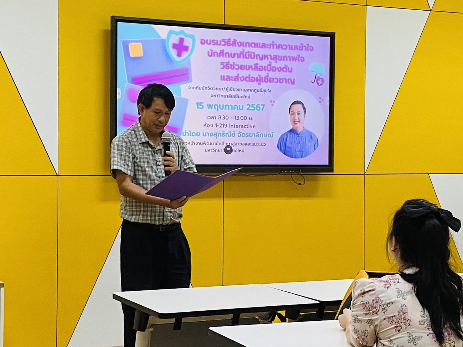 งานอบรมวิธีสังเกตและทำความเข้าใจนักศึกษาที่มีปัญหาสุขภาพใจ วิธีช่วยเหลือเบื้องต้น และส่งต่อผู้เชี่ยวชาญ