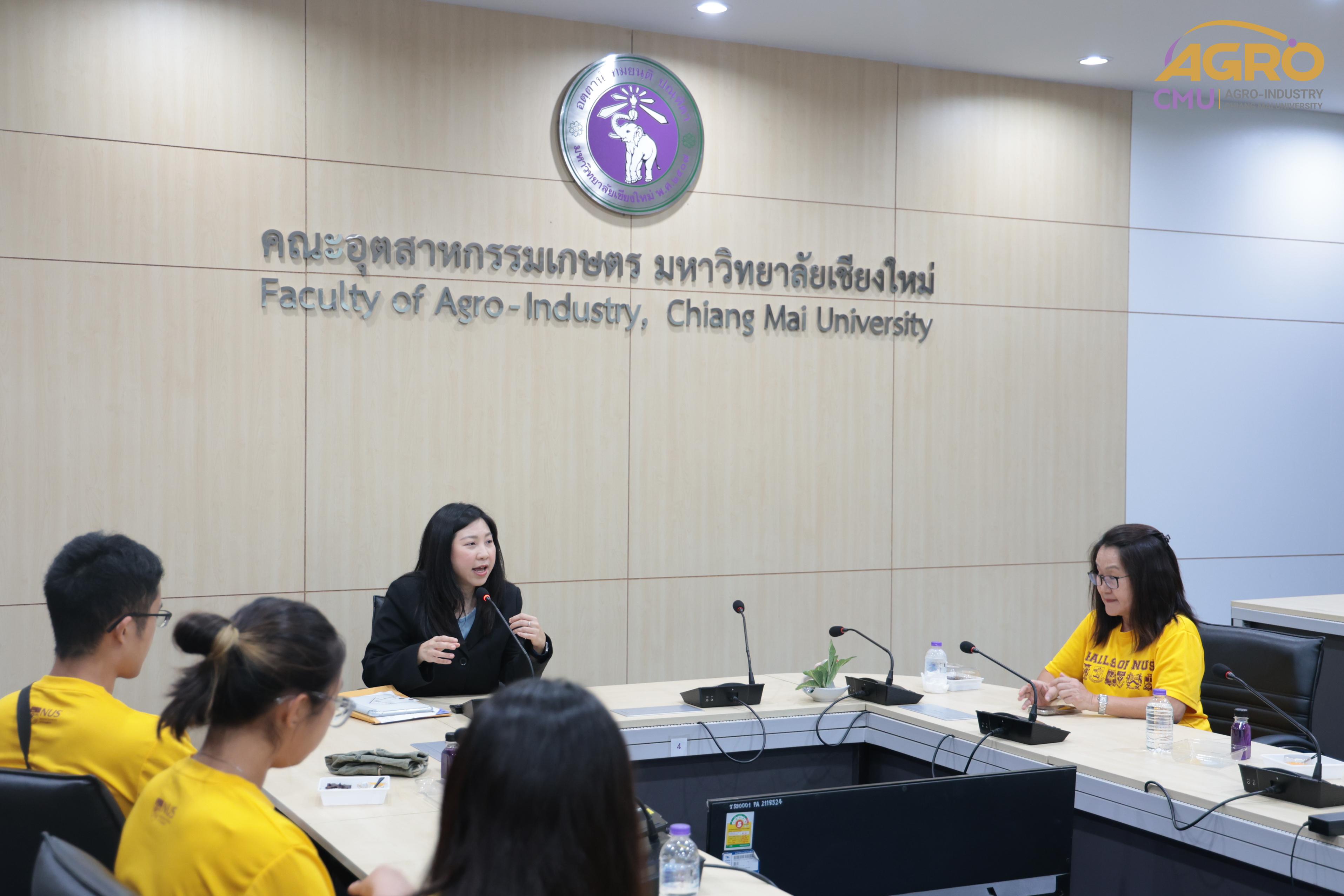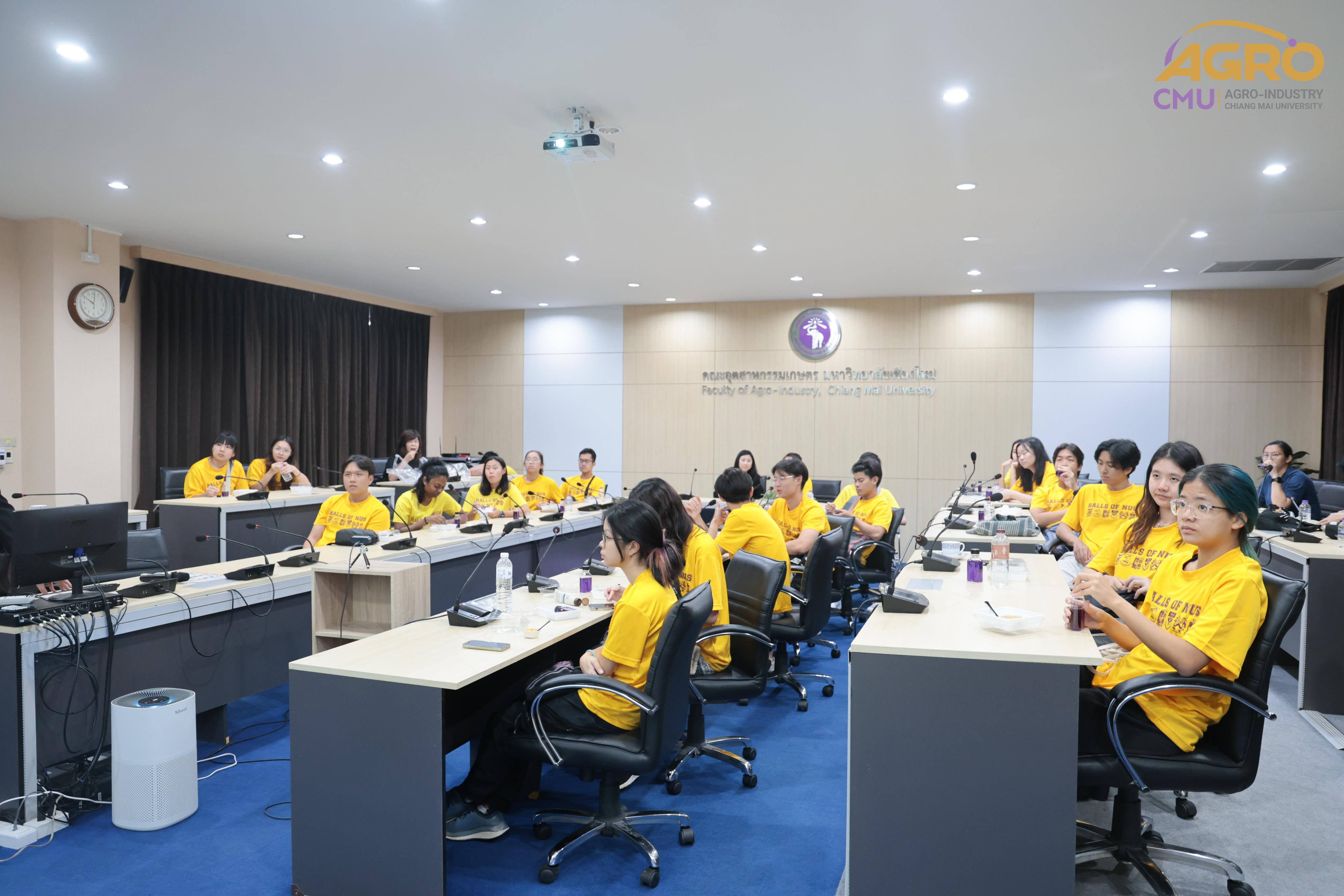 วันที่ 24 พฤษภาคม 2567 ผู้ช่วยศาสตรจารย์ ดร. สรญา เขียวนาวาวงศ์ษา ผู้ช่วยคณบดี คณะอุตสาหกรรมเกษตร ให้การต้อนรับ คณาจารย์และนักศึกษาจาก National University of Singapore โดยมี อาจารย์ รุ่งนภา กิตติอาสา เป็นผู้ควบคุม ในโอกาสมาเยี่ยมชมคณะอุตสาหกรรมเกษตร และได้ร่วมทำ Workshop กับสาขาวิชาเทคโนโลยีการบรรจุ โดยมี รองศาสตราจารย์ ดร. กิตติศักดิ์ จันทนสกุลวงศ์ อาจารย์ประจำสาขาวิชาเทคโนโลยีการบรรจุ เป็นผู้ดูแลและดำเนินกิจกรรม และได้เข้าเยี่ยมโรงงานต้นแบบ เพื่อต่อยอดความรู้ในเรื่องผลผลิตทางการเกษตร โดยกิจกรรมนี้เป็นส่วนหนึ่งของกระบวนวิชาเลือก ของ นักศึกษาระดับปริญญาตรี