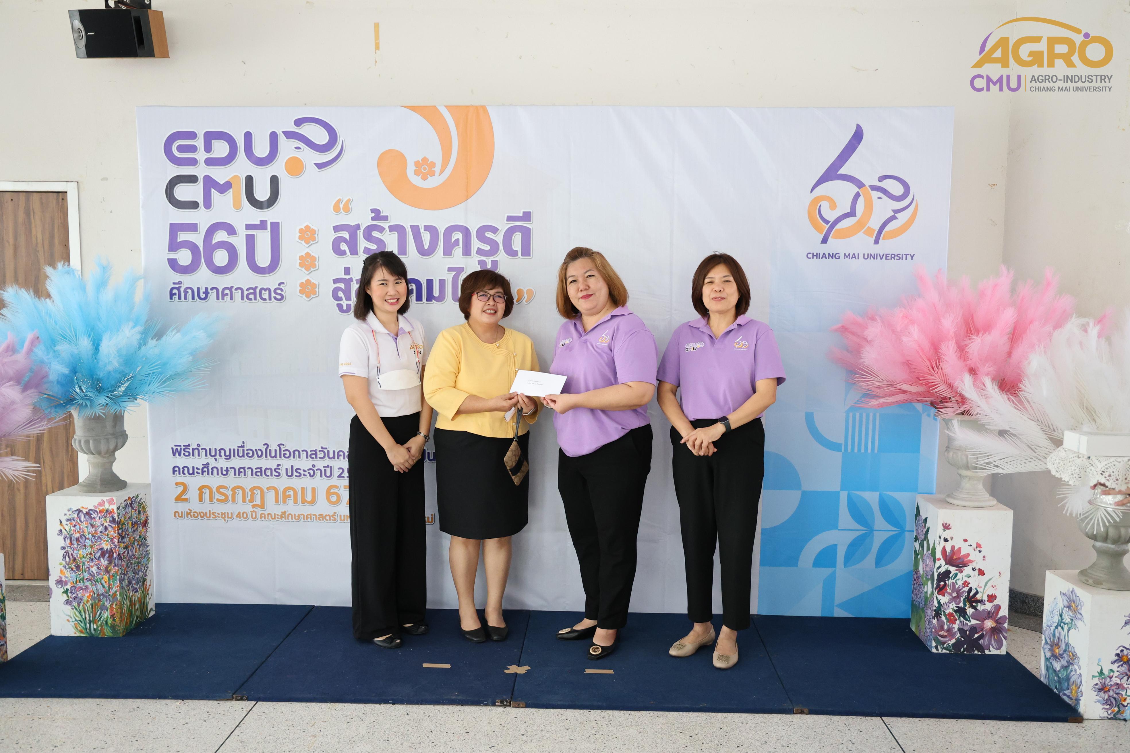 เมื่อวันอังคารที่ 2 กรกฎาคม 2567 นางสาวปิยะนุช สวัสดี เลขานุการคณะอุตสาหกรรมเกษตร พร้อมด้วยบุคลากร เข้าร่วมพิธีทำบุญเนื่องในโอกาสวันคล้ายวันสถาปนาคณะศึกษาศาสตร์ ครบรอบ 56 ปี "สร้างครูดี สู่สังคมไทย" ณ ห้องประชุม 40 ปี ชั้น 1 อาคาร 4 คณะศึกษาศาสตร์ มหาวิทยาลัยเชียงใหม่