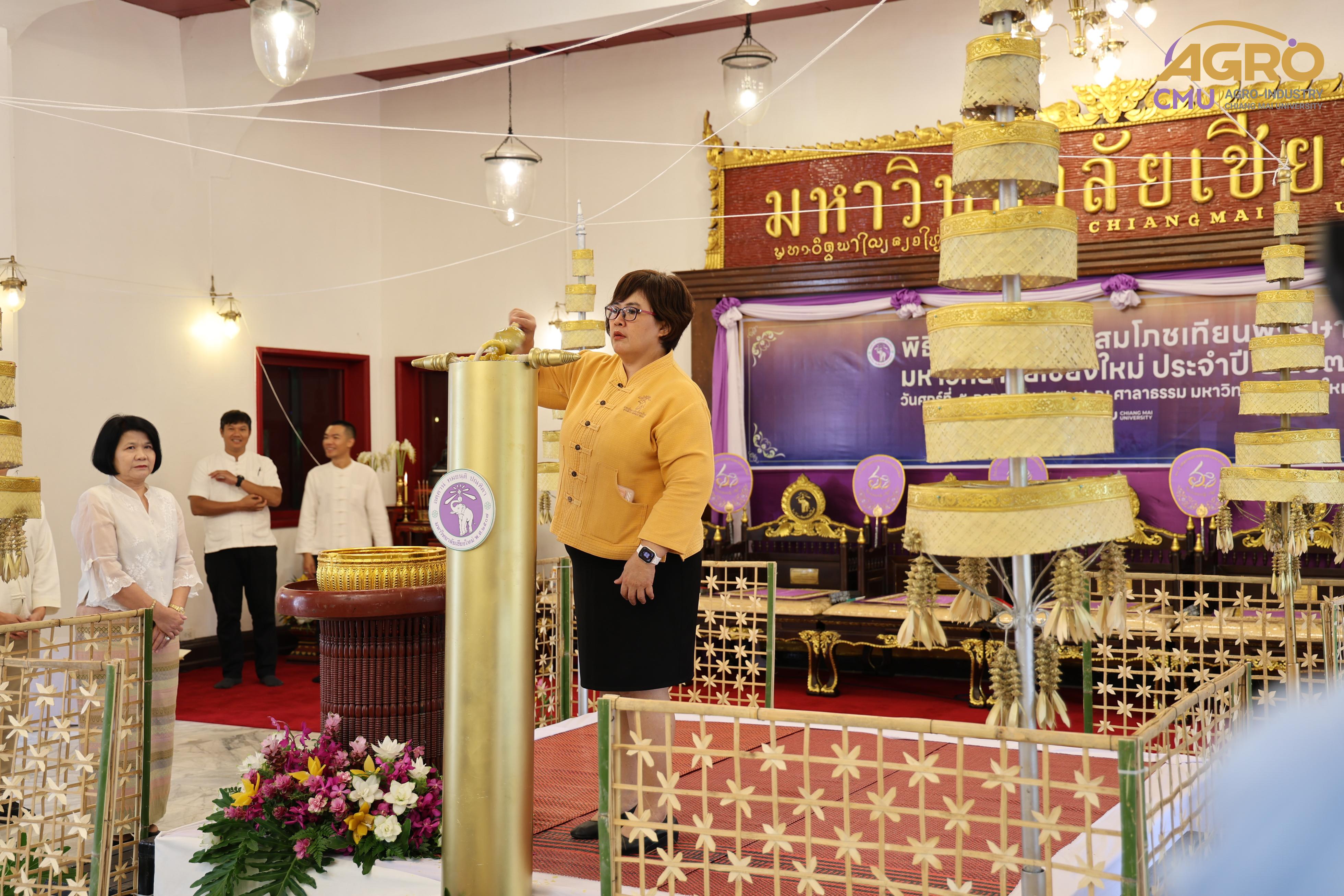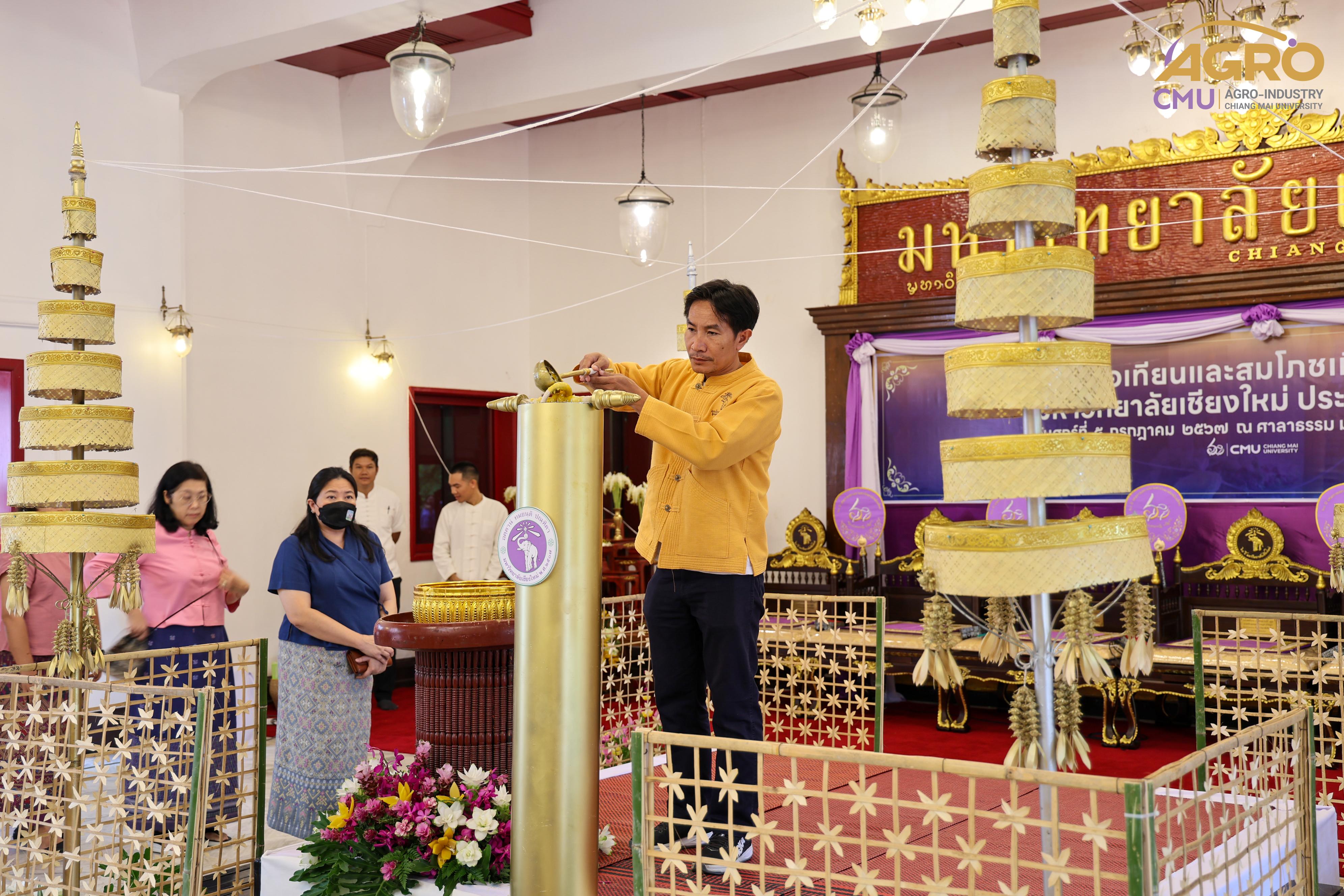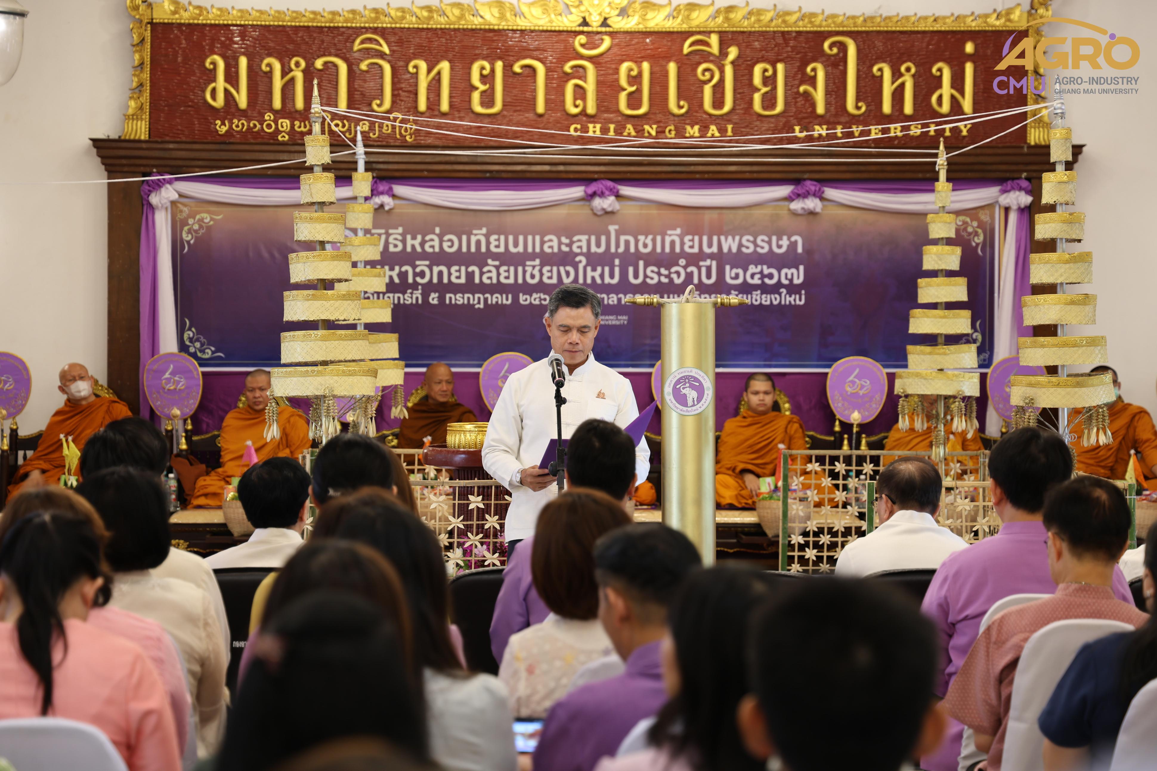 เมื่อวันศุกร์ที่ 5 กรกฎาคม 2567 รองศาสตราจารย์ ดร.พิสิฐ ศรีสุริยจันทร์ รองคณบดีคณะอุตสาหกรรมเกษตร ผู้แทนคณบดี พร้อมด้วยผู้บริหารและบุคลากร เข้าร่วมพิธีหล่อเทียนและสมโภชเทียนในวันเข้าพรรษา ของมหาวิทยาลัยเชียงใหม่ ประจำปี 2567 ณ ศาลาธรรม มหาวิทยาลัยเชียงใหม่ เพื่อเป็นการทำนุบำรุงพระพุทธศาสนาและส่งเสริมประเพณีอันดีงามสืบไป