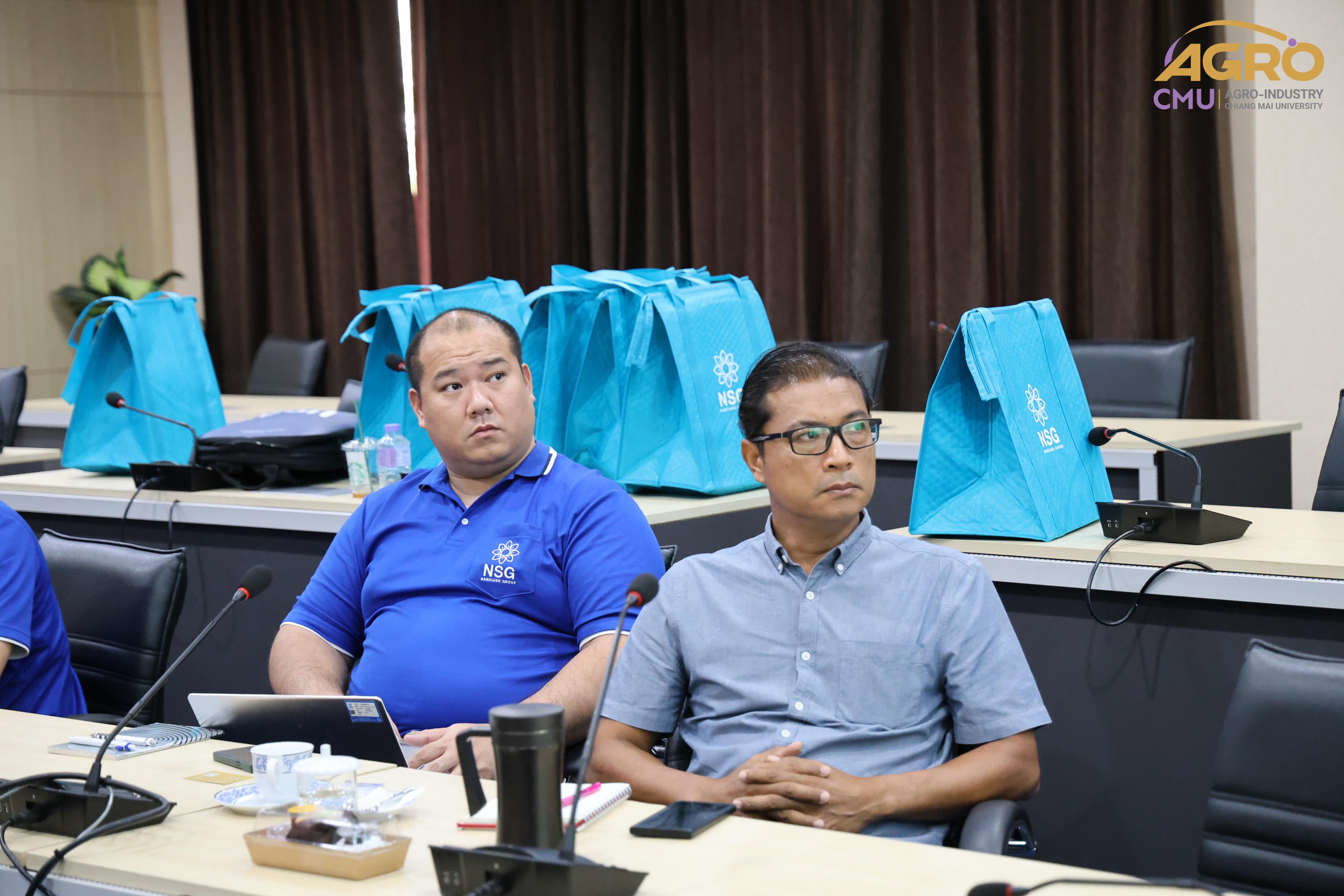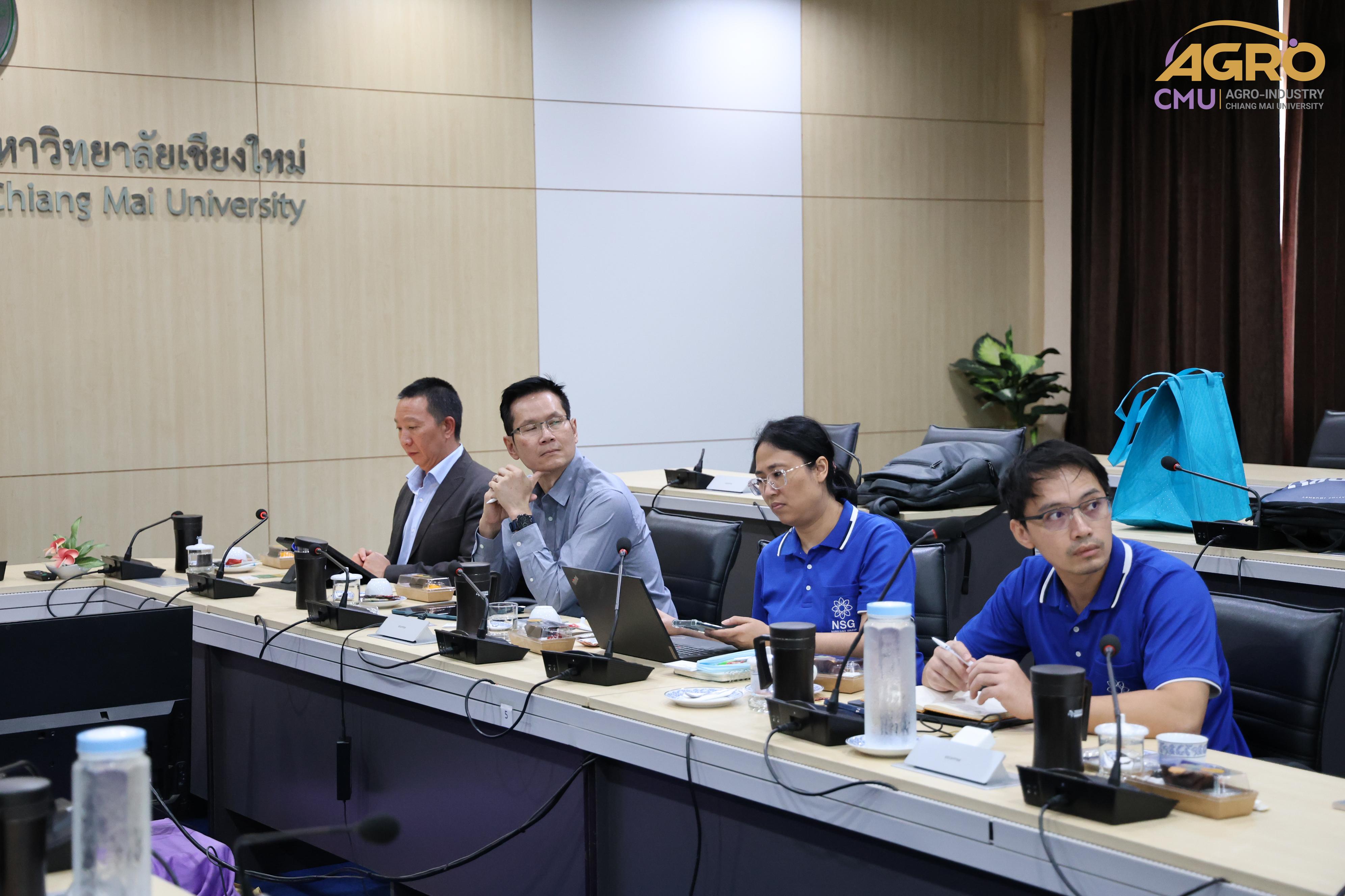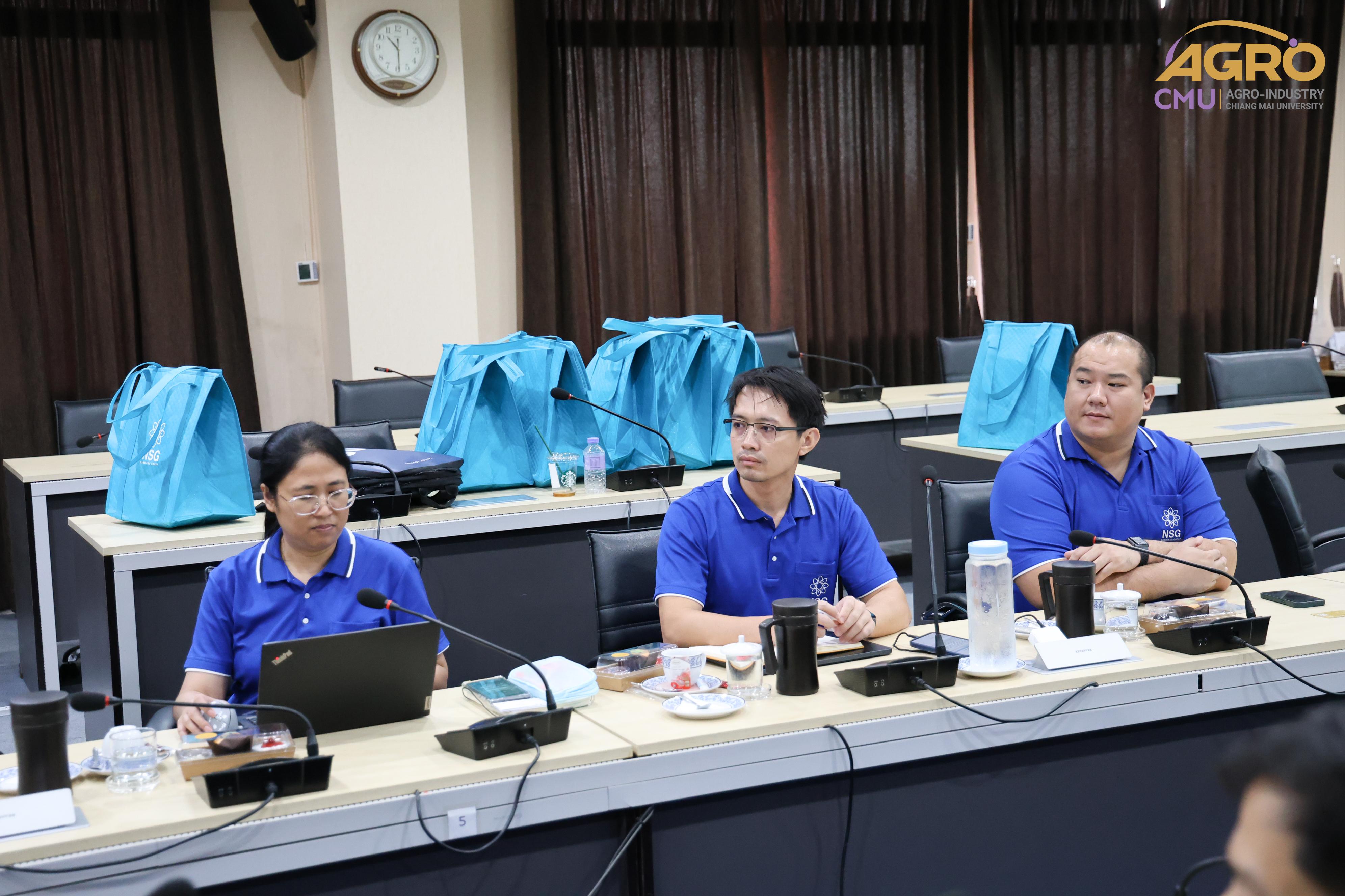On July 10, 2024, Associate Professor Dr. Niramol Utmaang, Associate Dean of the Faculty of Agro-Industry, along with faculty members, welcomed distinguished guests from Namsian Group Co., Ltd. on the occasion of participating in the TECHINNOVATION event. Additionally, discussions were held regarding research projects and various collaborations in Meeting Room 3, Faculty of Agro-Industry Office Building.