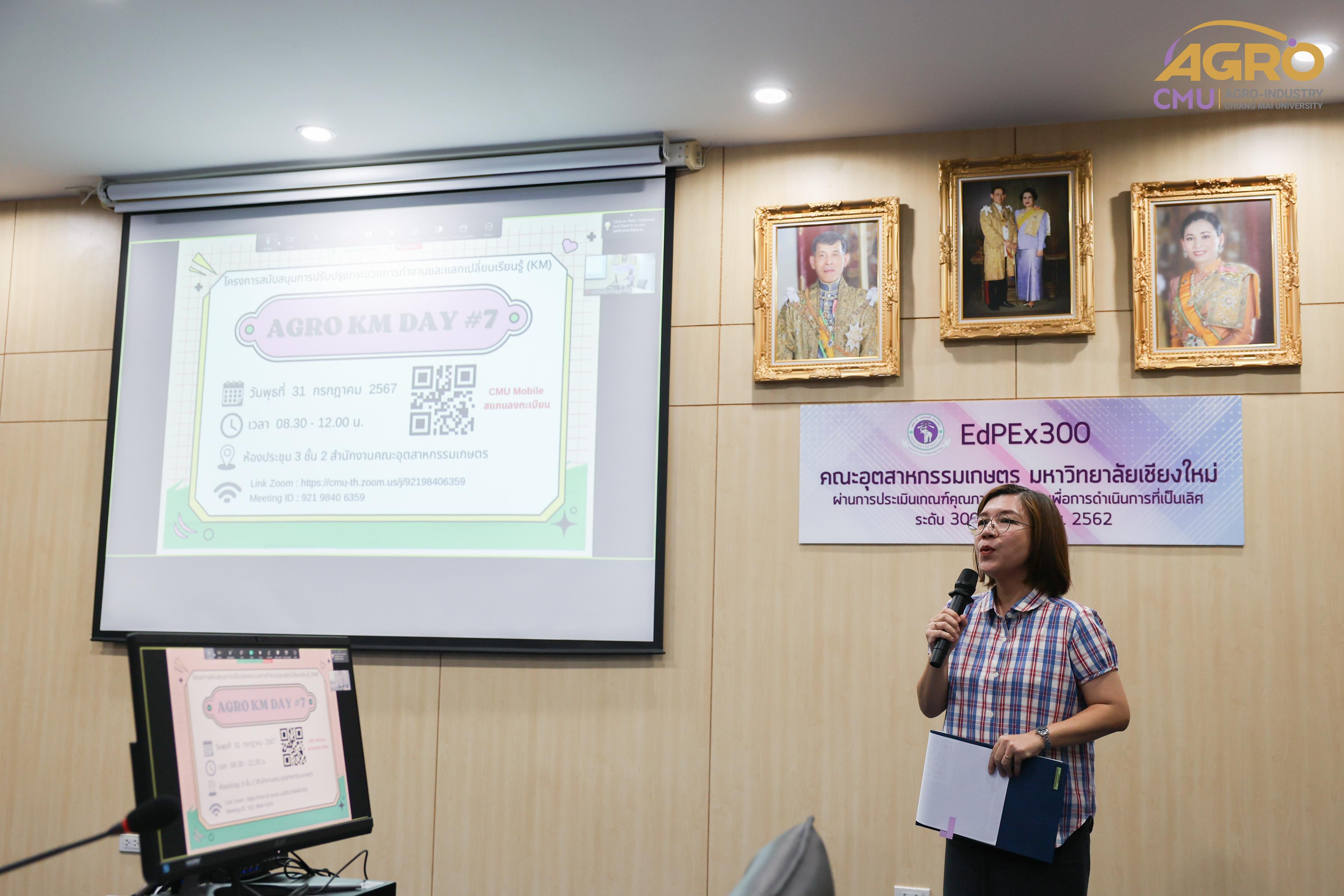 เมื่อวันพุธที่ 31 กรกฎาคม 2567 คณะอุตสาหกรรมเกษตร ได้จัดกิจกรรม KM Day ครั้งที่ 7 ณ ห้องประชุม 3 โดยมีผู้ช่วยศาสตราจารย์ ดร.จุไรรัตน์ เม้ากำเนิด เป็นประธานในการเปิดงาน โดยมีการประกวดผลงานของบุคลากรคณะอุตสาหกรรมเกษตร ซึ่งเป็นการเผยแพร่องค์ความรู้ แบ่งปันประสบการณ์ และแลกเปลี่ยนเรียนรู้ ที่บุคลากรสามารถนำไปใช้ประโยชน์ต่อการปฏิบัติงาน หรือการประยุกต์ใช้ในกิจกรรมการเรียนการสอนให้มีประสิทธิภาพมากยิ่งขึ้น ตลอดถึงการปรับปรุงประสิทธิภาพการทำงานต่อสภาวะที่เปลี่ยนแปลงไปในปัจจุบันและอนาคต ซึ่งกิจกรรมในครั้งนี้ได้รับความสนใจจากบุคลากรสายวิชาการและสายสนับสนุนเข้าร่วมประกวดผลงาน โดยมีคณะกรรมการตัดสินผลงานประกวด จำนวน 4 ท่าน ดังนี้ 1. รองศาสตราจารย์ ดร.สุพัตรา กาญจนประทุม 2. ผู้ช่วยศาสตราจารย์ ดร.กัญญรัตน์ สุทธภักติ 3. นางสาวปิยะนุช สวัสดี และ และนางวรางคณา เตมียะ โดยมีบุคลากรที่ได้รับรางวัล และเข้าร่วมแสดงผลงาน ดังนี้