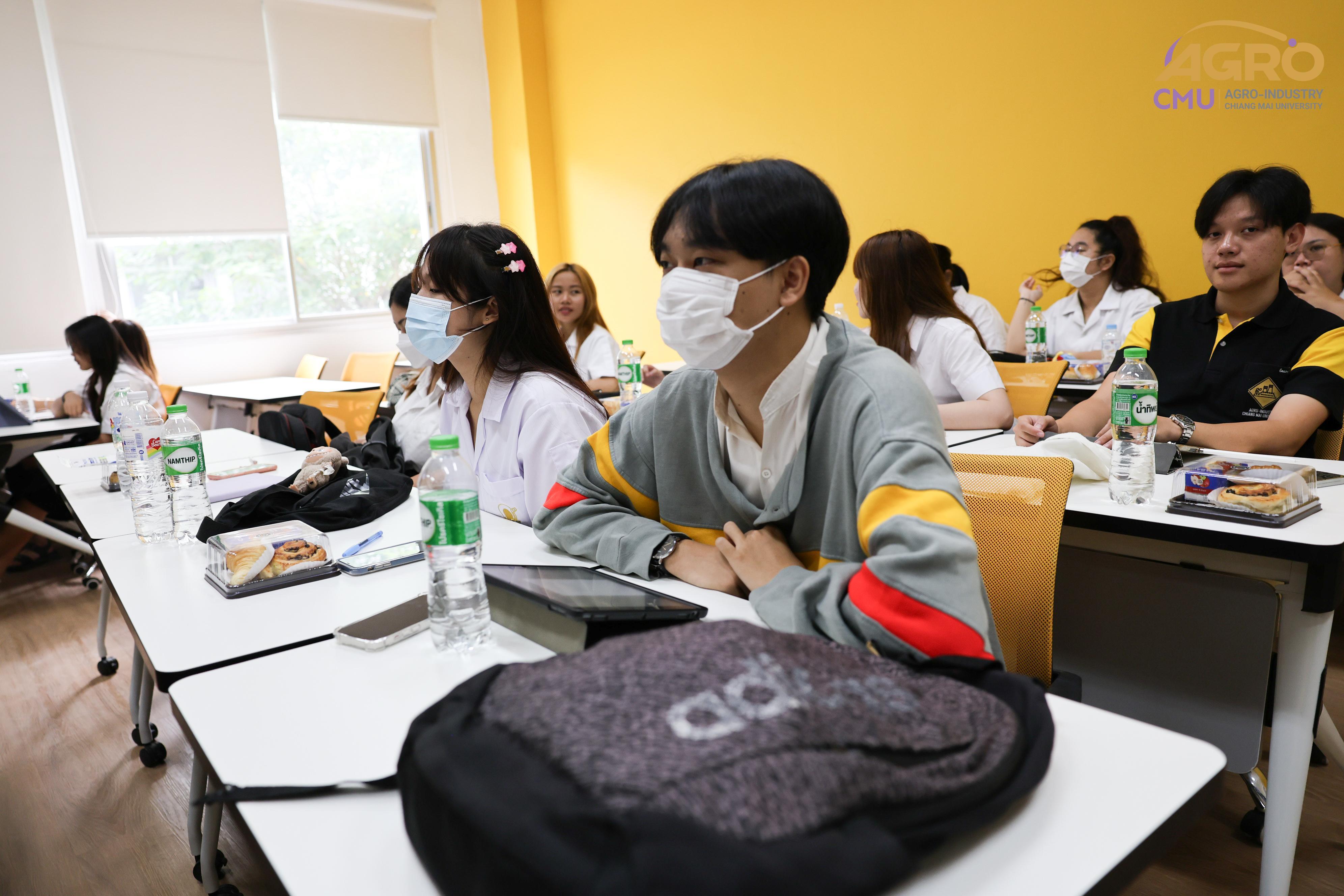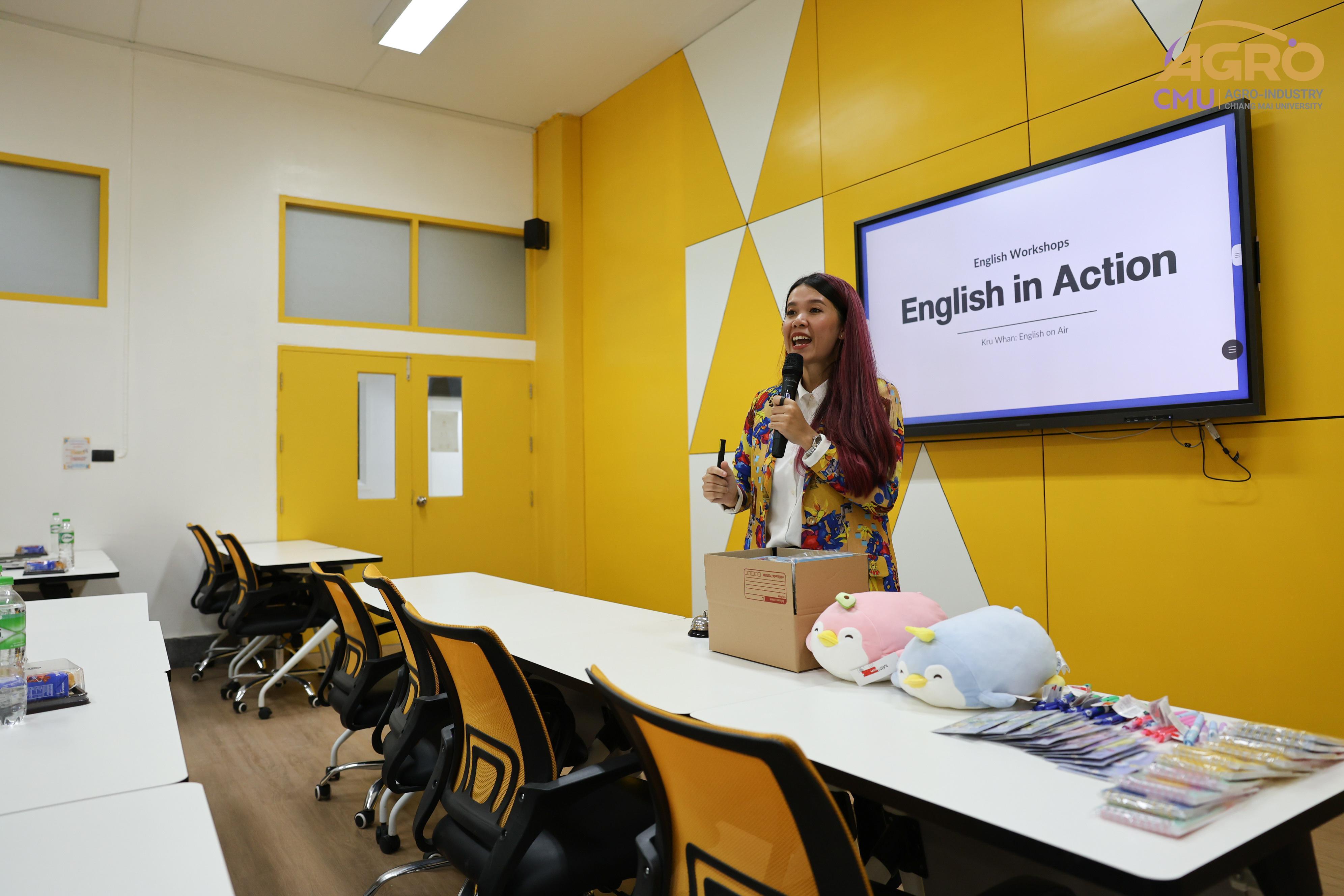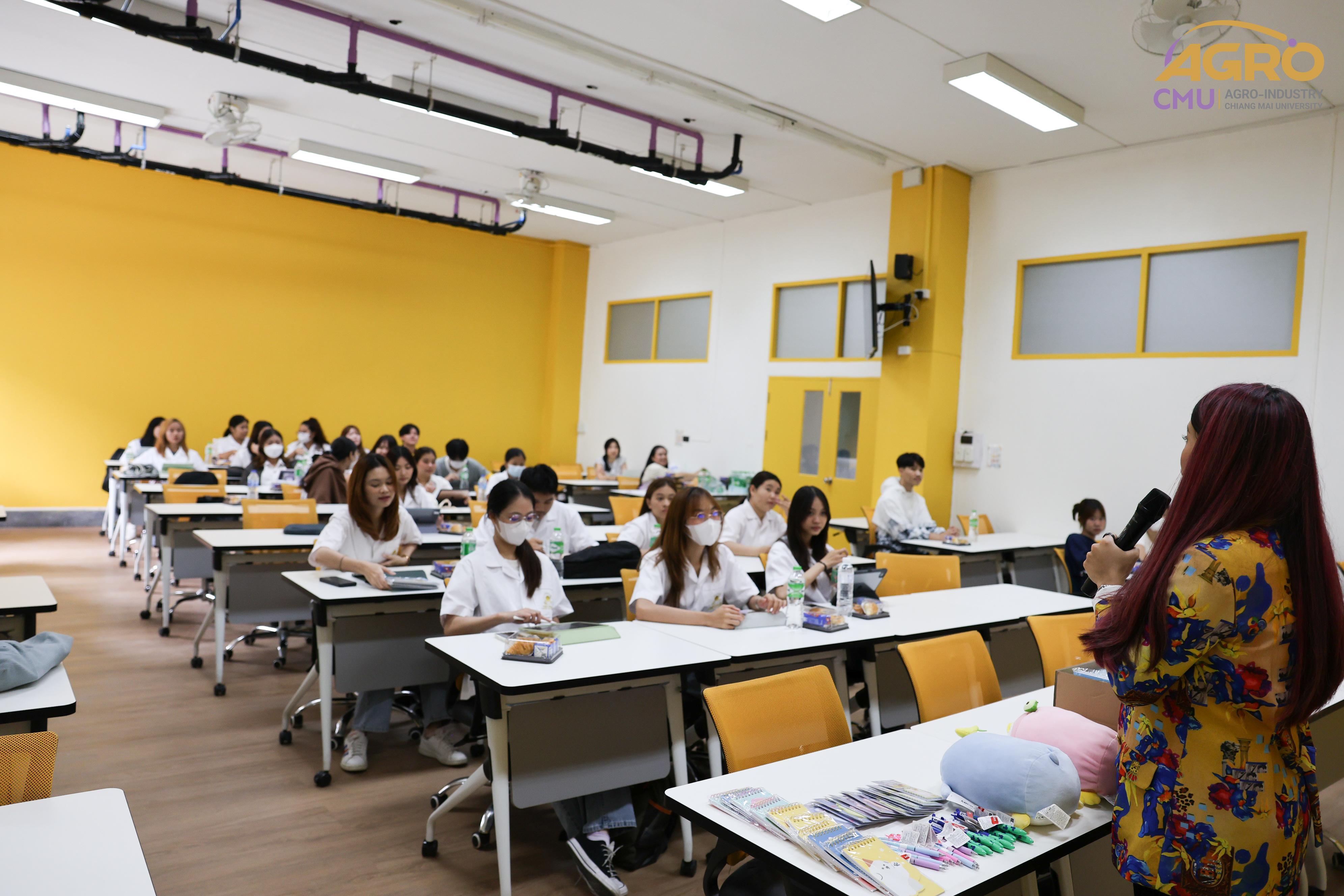 เมื่อวันที่พุธ ที่ 24 กรกฎาคม 2567 สาขาวิชาวิศวกรรมอาหาร ได้จัดกิจกรรมโครงการสนับสนุนการพัฒนาทักษะภาษาอังกฤษของนักศึกษาผ่านกิจกรรมการเรียนรู้ สาขาวิชาวิศวกรรมกระบวนการอาหาร โดยมีวัตถุประสงค์เพื่อให้นักศึกษาได้ฝึกการใช้ภาษาอังกฤษ มีทัศนคติที่ดีต่อการใช้ภาษาอังกฤษ เพื่อเตรียมตัวต่อการทำงานในอุตสาหกรรมภายหลังจบการศึกษา ในเวลา 09.30 - 12.00 น. ณ ห้อง 1-219 อาคาร 1 คณะอุตสาหกรรมเกษตร มหาวิทยาลัยเชียงใหม่ โดยมีคุณสุรีพร อินทร์เมือง (ครูหวาน) มาเป็นวิทยากรให้ความรู้ภาษาอังกฤษแก่นักศึกษา ภายในงานมีกิจกรรมที่ระดมความคิดของนักศึกษา และยังมีของรางวัล ของที่ระลึกมอบให้อีกมายมาย ทั้งนี้ยังเปิดโอกาสให้นักศึกษาได้ฝึกการนำเสนอผลงาน เพื่อเป็นแนวทางในการฝึกใช้ทักษะภาษาอังกฤษต่อไปในอนาคต