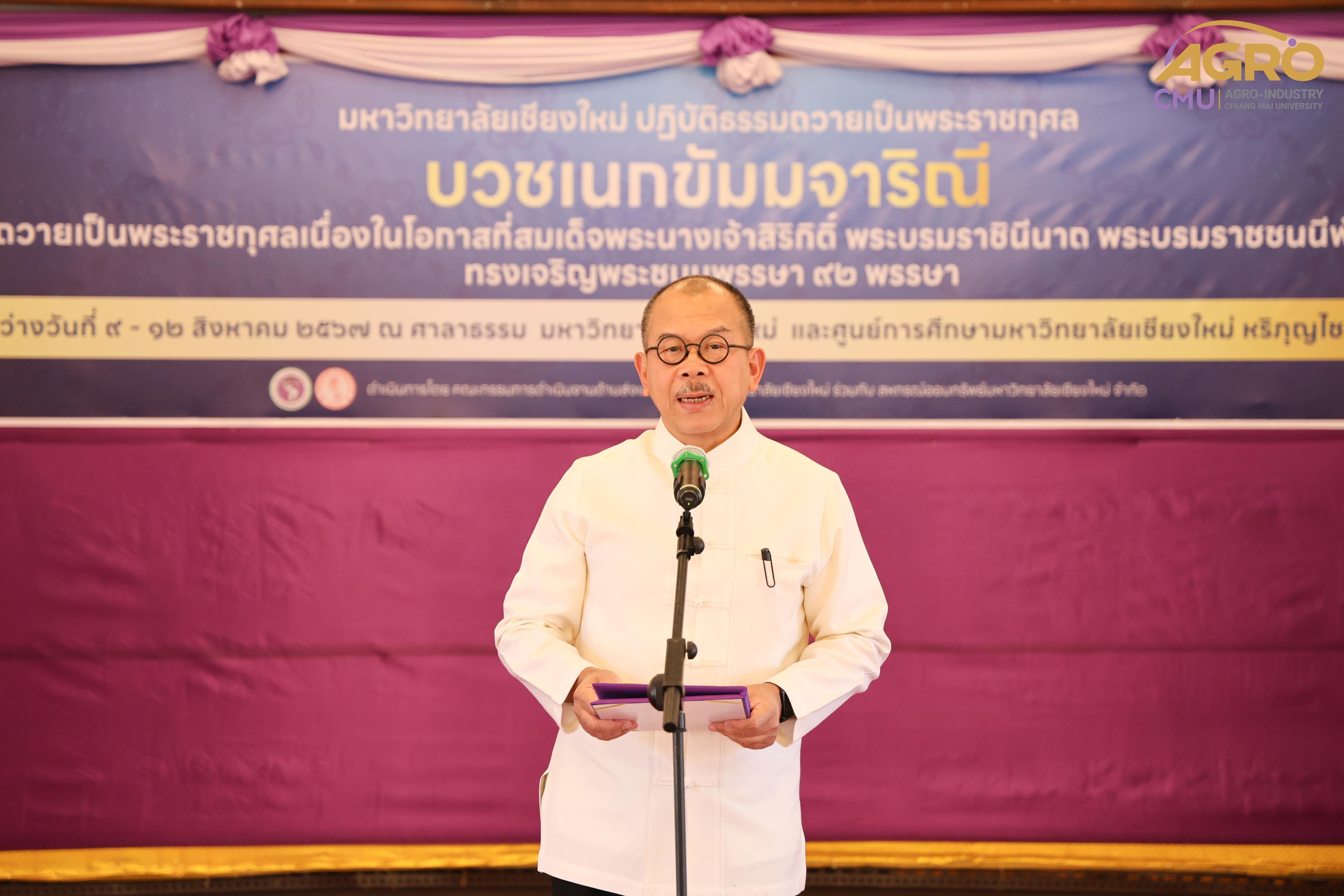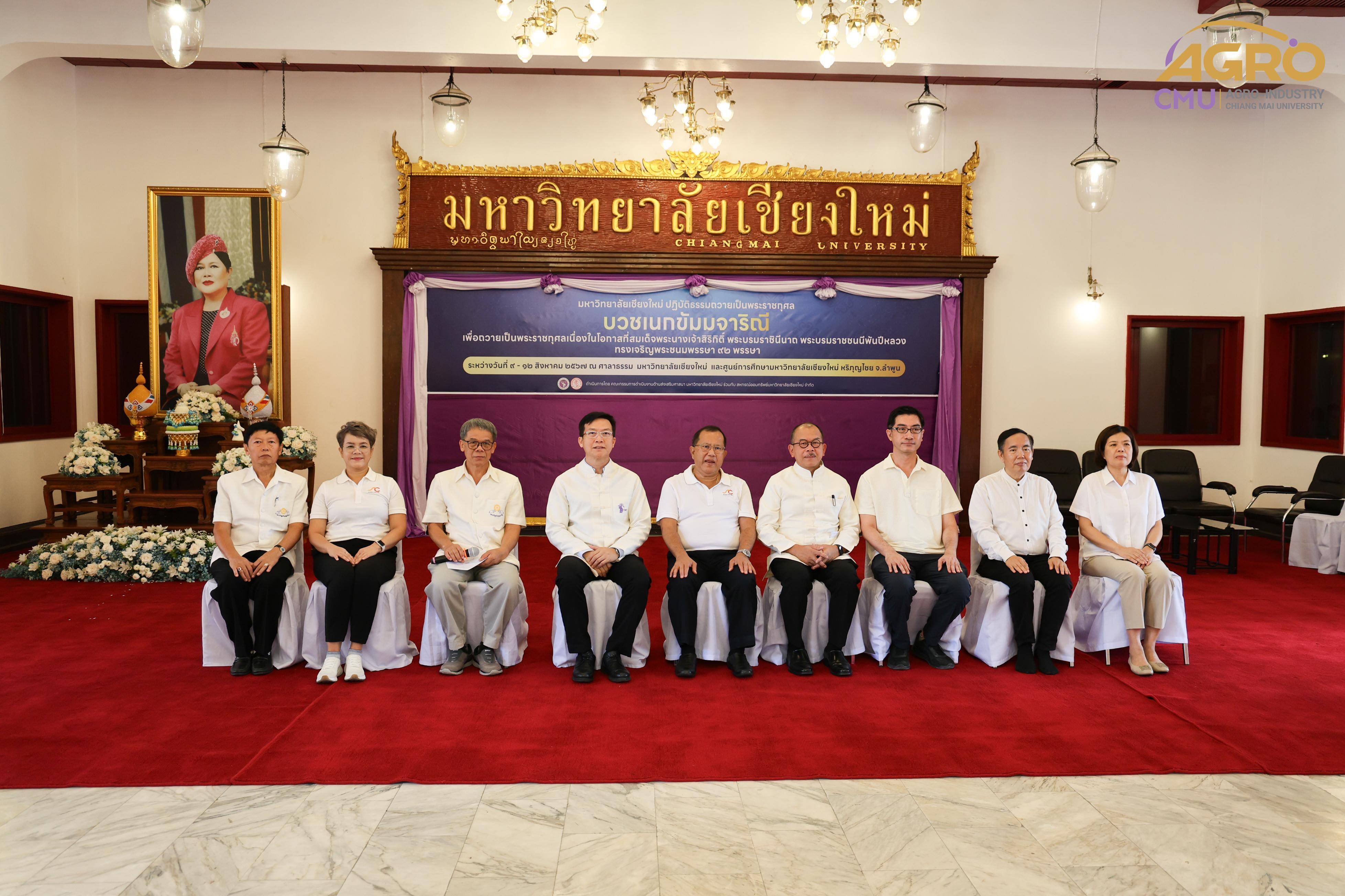 เมื่อวันที่ 9 สิงหาคม 2567 รองศาสตราจารย์ ดร.พิสิฐ ศรีสุริยจันทร์ รองคณบดีคณะอุตสาหกรรมเกษตร ได้เป็นผู้แทนคณบดี เข้าร่วมในพิธีเปิดโครงการบวชเนกขัมมจาริณีเพื่อถวายเป็นพระราชกุศล เนื่องในโอกาสที่สมเด็จพระนางเจ้าสิริกิติ์ พระบรมราชินีนาถ พระบรมราชชนนีพันปีหลวง ทรงเจริญพระชนมพรรษา 92 พรรษา ณ ศาลาธรรม มหาวิทยาลัยเชียงใหม่
