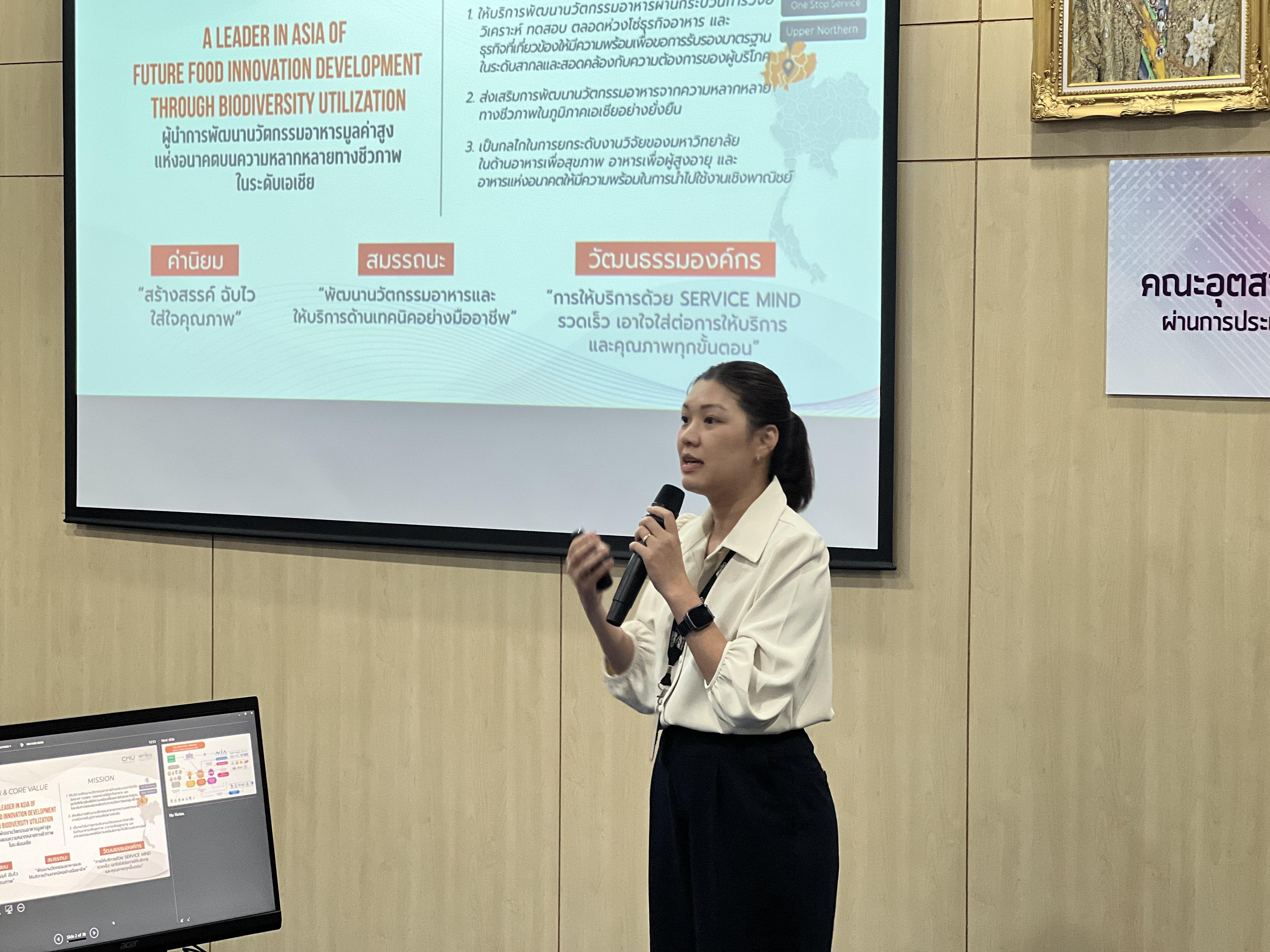 20 สิงหาคม 2567: : อาจารย์ ดร.ชิตาพัณณ์ ใบงิ้ว รักษาการผู้อำนวยการศูนย์นวัตกรรมอาหารและบรรจุภัณฑ์ คณะอุตสาหกรรมเกษตร ให้การต้อนรับคณะศึกษาดูงานภายใต้กิจกรรม PADTHAI Rally ครั้งที่ 3 ของเมืองนวัตกรรมอาหาร (Food Innopolis) สำนักงานพัฒนาวิทยาศาสตร์และเทคโนโลยีแห่งชาติ (สวทช.) ในโอกาสเข้าเยี่ยมชมการให้บริการด้านธุรกิจนวัตกรรมอาหาร ของศูนย์นวัตกรรมอาหารและบรรจุภัณฑ์ ในโซนพื้นที่ Food Maker Space และ Future Food Lab Space เพื่อเป็นการเปิดโอกาสและเพิ่มศักยภาพให้ผู้ประกอบการ SMEs ที่เข้าร่วมกิจกรรมในการต่อยอดและยกระดับอุตสาหกรรมอาหารในแง่ของการผลิตให้มีประสิทธิภาพมากยิ่งขึ้น โดยมีผู้ร่วมศึกษาดูงานรวม 20 ท่าน