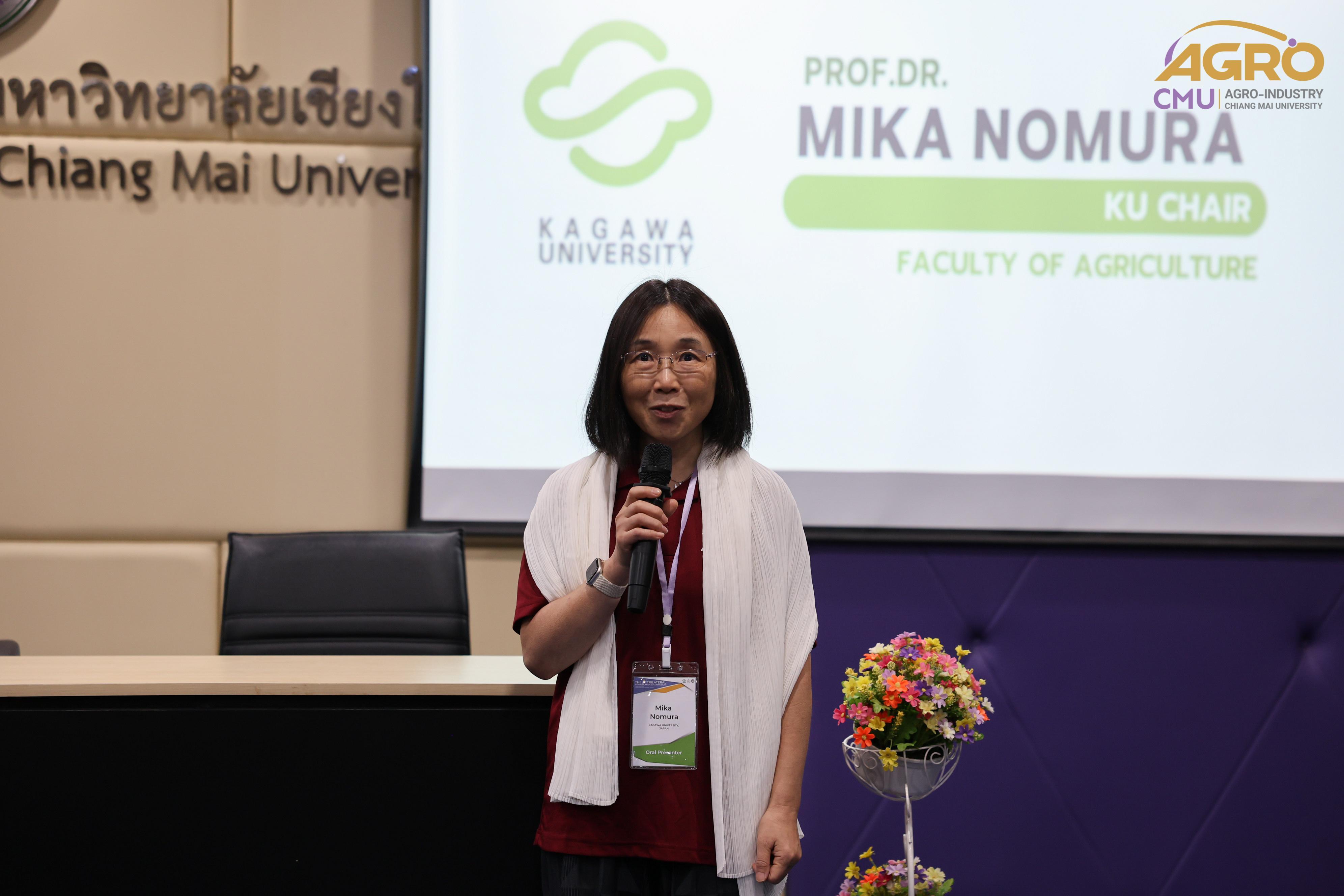 On August 28, 2024, Associate Professor Dr. Yutthana Pimolsiriphol, Dean of the Faculty of Agro-Industry at Chiang Mai University; Professor Dr. Mika Nomura from Kagawa University; and Assistant Professor Dr. Hsiao-wen Wang from National Chiayi University presided over the opening of the Food Session, which was a part of "The 3rd Trilateral Symposium on Sustainability" held at Meeting Room 4 of the Faculty of Agro-Industry, Chiang Mai University.