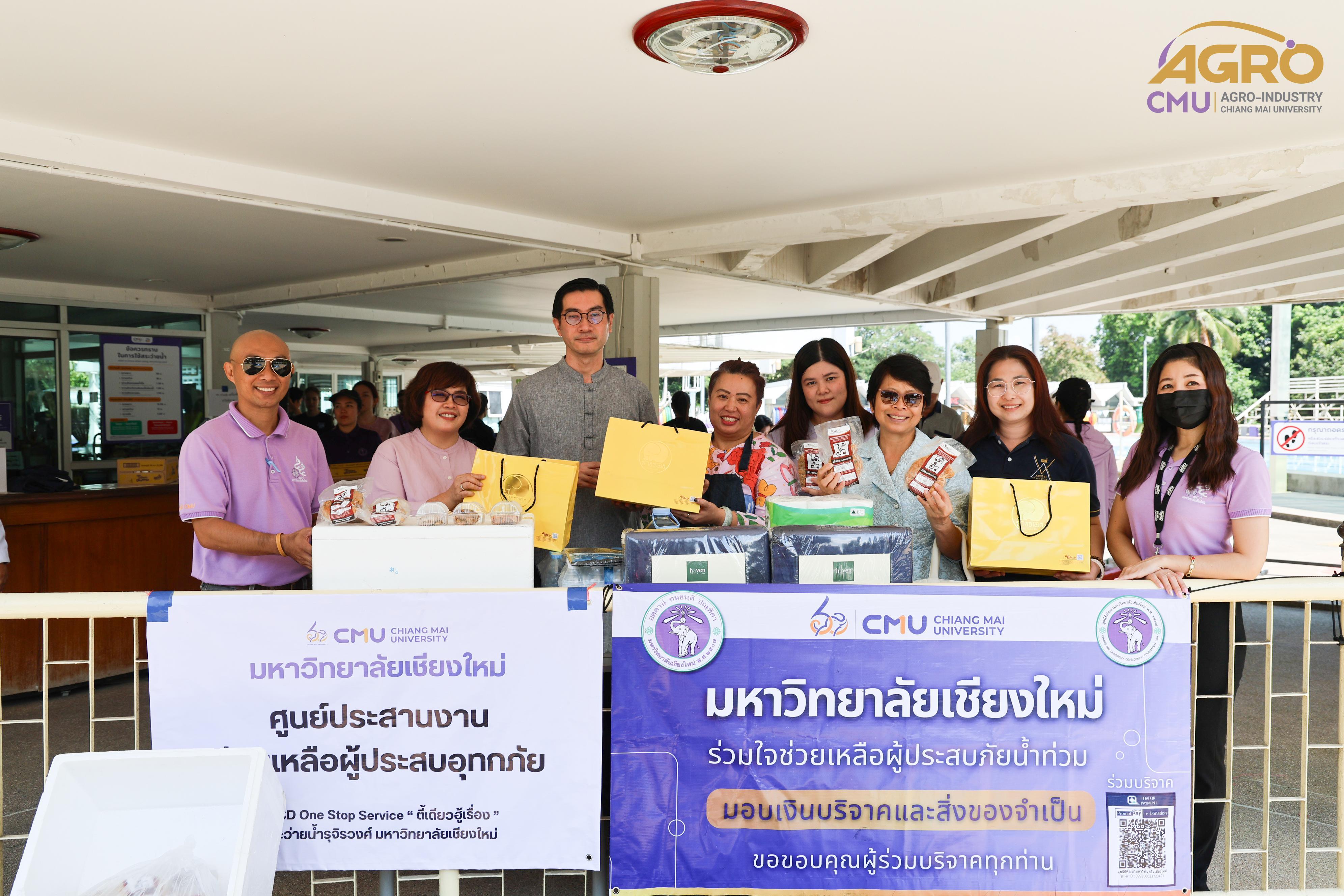 วันที่ 8 ตุลาคม 2567 รองศาสตราจารย์ ดร.พิสิฐ ศรีสุริยจันทร์ รองคณบดีคณะอุตสาหกรรมเกษตร นำทีมอุตสาหกรรมเกษตรร่วมส่งความช่วยเหลือไปยังผู้ประสบอุทกภัย นอกจากนี้ ยังได้ส่งมอบผลิตภัณฑ์ของคณะฯ เช่น ไส้อั่วลดไขมัน เพื่อเป็นกำลังใจให้กับทีมงานอาสาสมัครภายใต้การดำเนินงานของกองพัฒนานักศึกษา มหาวิทยาลัยเชียงใหม่ ซึ่งการร่วมสนับสนุนในครั้งนี้นอกจากจะส่งมอบผลิตภัณฑ์ของคณะฯ แล้ว ยังได้มอบสิ่งของจำเป็น เช่น น้ำ อาหารแห้ง รวมถึงอุปกรณ์ทำความสะอาดและสิ่งของอื่นๆ เพื่อช่วยบรรเทาความเดือดร้อนของผู้ประสบภัยและเพื่อช่วยให้สามารถซ่อมแซมปรับปรุงที่อยู่อาศัยเบื้องต้นได้ การช่วยเหลือผู้ประสบภัยครั้งนี้ไม่ได้เป็นเพียงแค่การมอบสิ่งของที่จำเป็นเท่านั้น แต่ยังเป็นการส่งมอบกำลังใจให้แก่ผู้ที่ได้รับผลกระทบจากอุทกภัยอีกด้วย อันแสดงให้เห็นถึงความเข้มแข็งและความสามัคคีของมหาวิทยาลัยในยามวิกฤต คณะอุตสาหกรรมเกษตรขอร่วมส่งกำลังใจจากใจจริงไปยังผู้ที่ได้รับผลกระทบทุกคน
