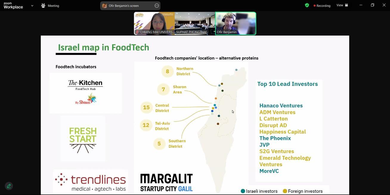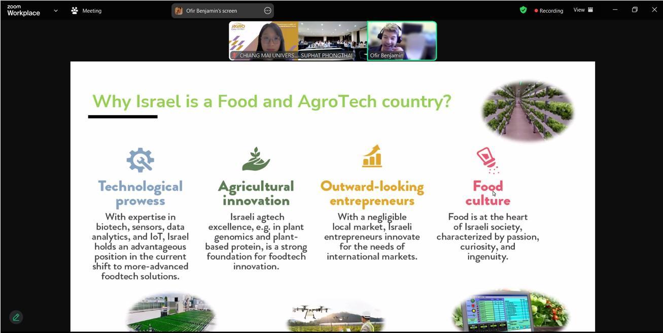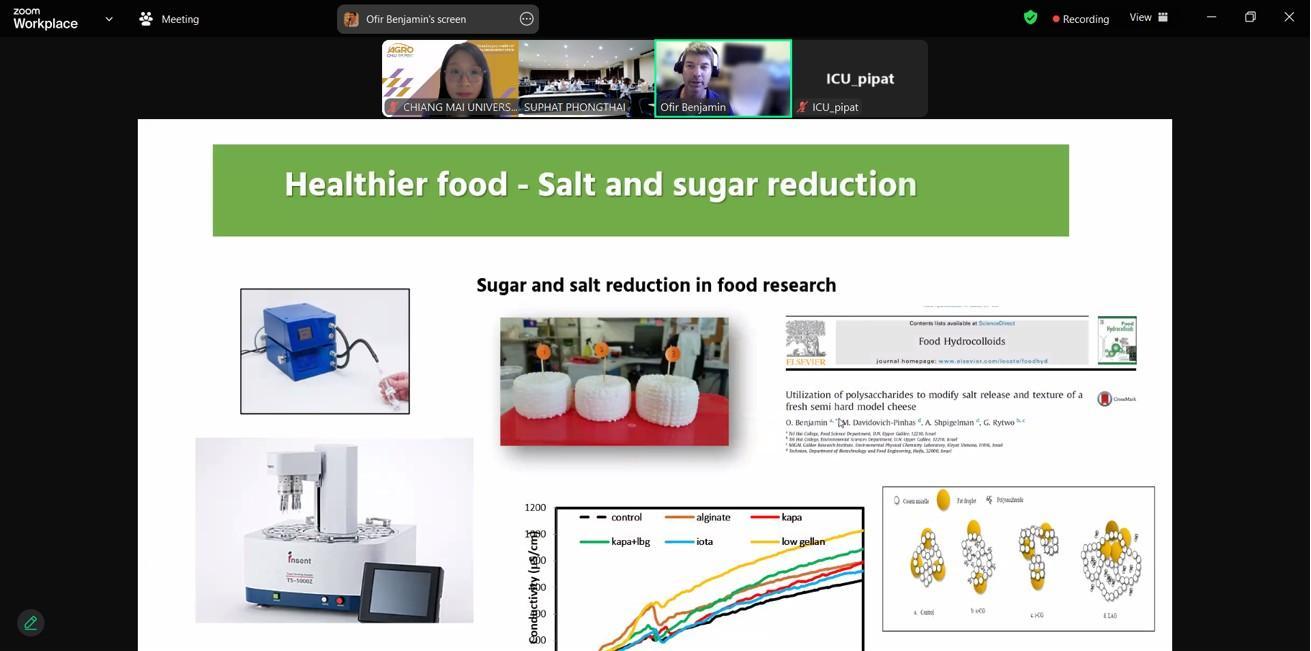 ในวันศุกร์ที่ 11 ตุลาคม 2567 สาขาวิทยาศาสตร์และเทคโนโลยีการอาหารได้จัดกิจกรรมการบรรยายพิเศษหัวข้อ Galilee is the new center innovation hub in FoodAgriTech Israel โดย Dr. Ofir Benjamin อาจารย์ผู้เชี่ยวชาญงานวิจัยด้านอาหารจาก Food Sciences Department, Faculty of Sciences and Technology, Tel Hai College ให้กับนักศึกษาชั้นปีที่ 4 สาขาวิทยาศาสตร์และเทคโนโลยีการอาหารและผู้ที่สนใจได้เข้าร่วมรับฟังในกระบวนวิชา Research Exercise ทางออนไลน์ผ่านแอปพลิเคชัน Zoom