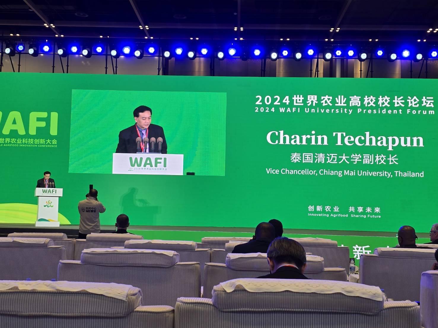 On 10-11th October 2024, Professor of Practice Charin Techapun, Ph.D., Vice President of Chiang Mai University along with Associate Professor Dr. Yuthana Phimolsiripol, Dean of the Faculty of Agro-Industry and Associate Professor Dr. Sutee Wangtueai, Vice Dean attended The World Agricultural University President Forum and the opening ceremony of the 2024 World Agrifood Innovation Conference (WAFI) at the Beijing Jinhai Lake International Convention and Exhibition Center.