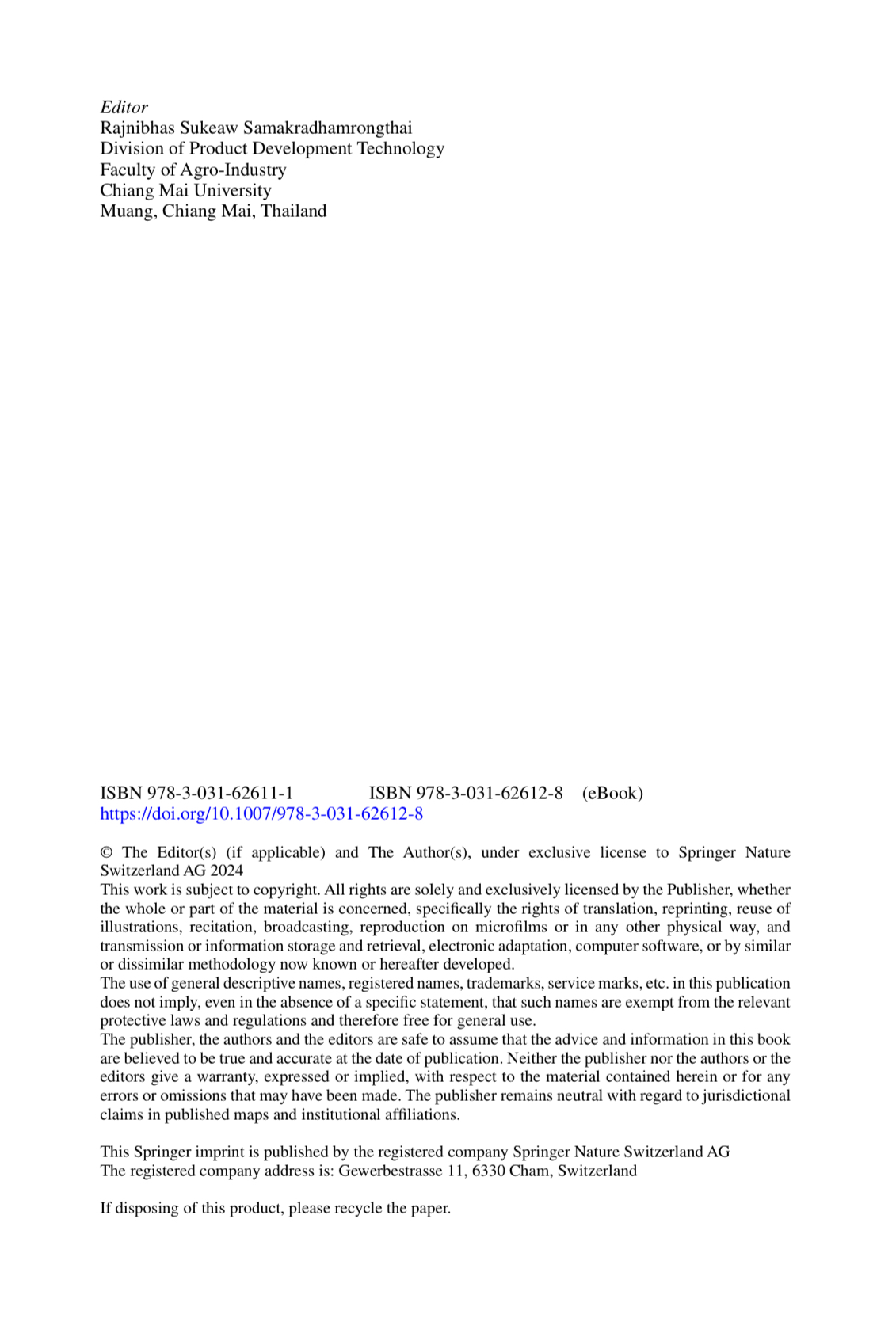 The Faculty of Agro-Industry, Chiang Mai University, is proud to congratulate Assistant Professor Dr. Rajnibhas Sukeaw Samakradhamrongthai, a lecturer of the Product Development Technology Program, Faculty of Agro-Industry, on the publication eBook titled "Aroma and Flavor in Product Development: Characterization, Perception, and Application" by Springer, Switzerland.