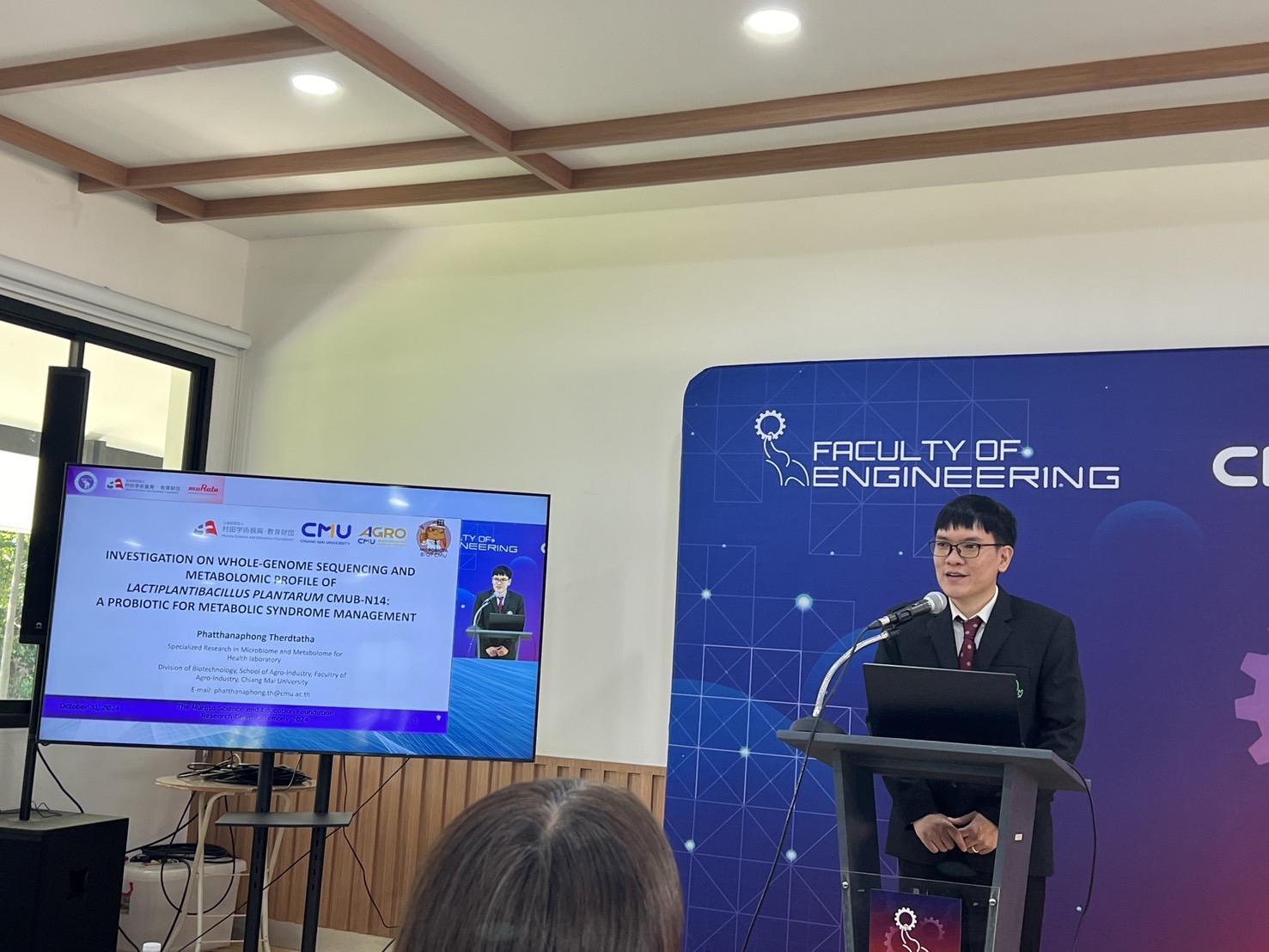On October 31, 2024, the Faculty of Engineering, Chiang Mai University held the 2024 Research Grant Award Ceremony from The Murata Science and Education Foundation. This event is part of a cooperative agreement aimed at promoting and advancing research in the fields of science and technology between Chiang Mai University and The Murata Science and Education Foundation of Japan. This year, a faculty member from the Faculty of Agro-Industry, Dr. Kridsada Unban, a professor in the Department of Food Science and Technology, was awarded a research grant.