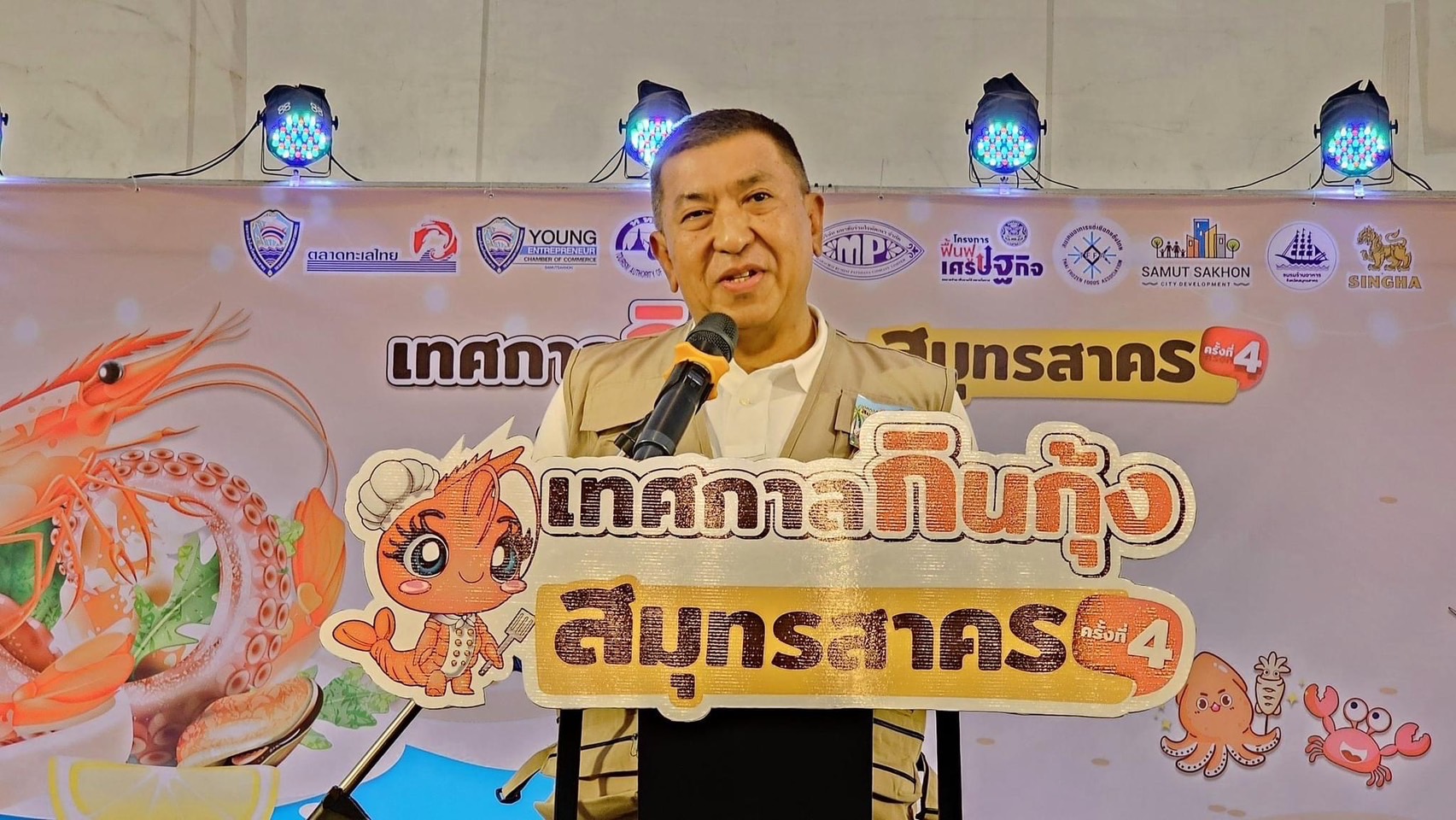 เมื่อวันที่ 7 พ.ย. 67 คณะอุตสาหกรรมเกษตร (สมุทรสาคร) โดยมี ผศ.ดร.อุทุมพร สุระยศ ผู้แทนคณบดีคณะอุตสาหกรรมเกษตร เข้าร่วมพิธีเปิดงาน "เทศกาลกุ้งแอนด์เดอะแก๊ง" งานนี้เป็นความร่วมมือของหน่วยงานภาครัฐและเอกชนในจังหวัด มีวัตถุประสงค์เพื่อกระตุ้นเศรษฐกิจ ส่งเสริมการท่องเที่ยว และเพิ่มช่องทางการตลาดให้แก่เกษตรกรผู้เลี้ยงกุ้ง โดยจัดขึ้นระหว่างวันที่ 7-11 พ.ย. 67 ณ ตลาดทะเลไทย ซึ่งเป็นศูนย์กลางค้าขายอาหารทะเลที่ใหญ่ที่สุดในประเทศไทย