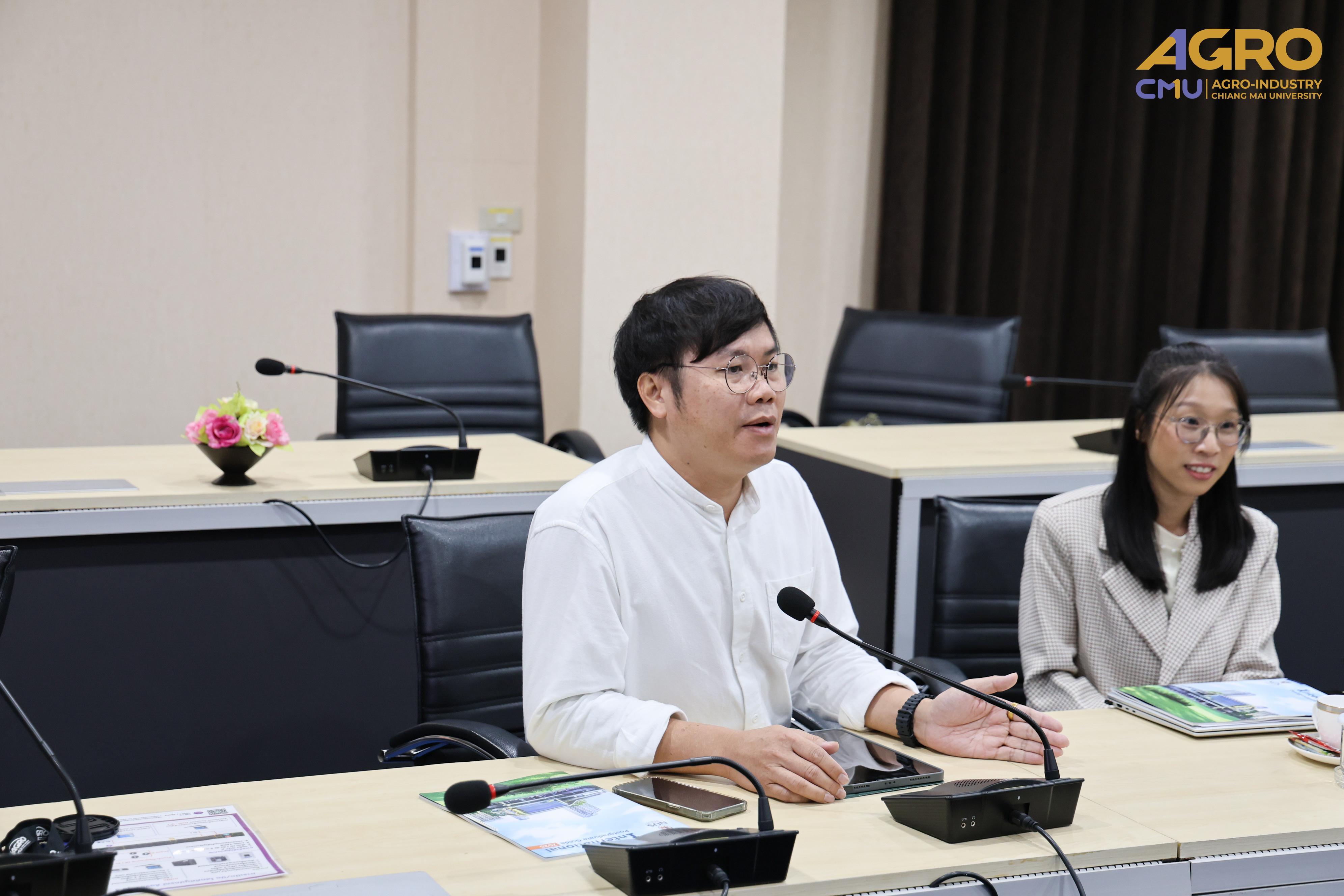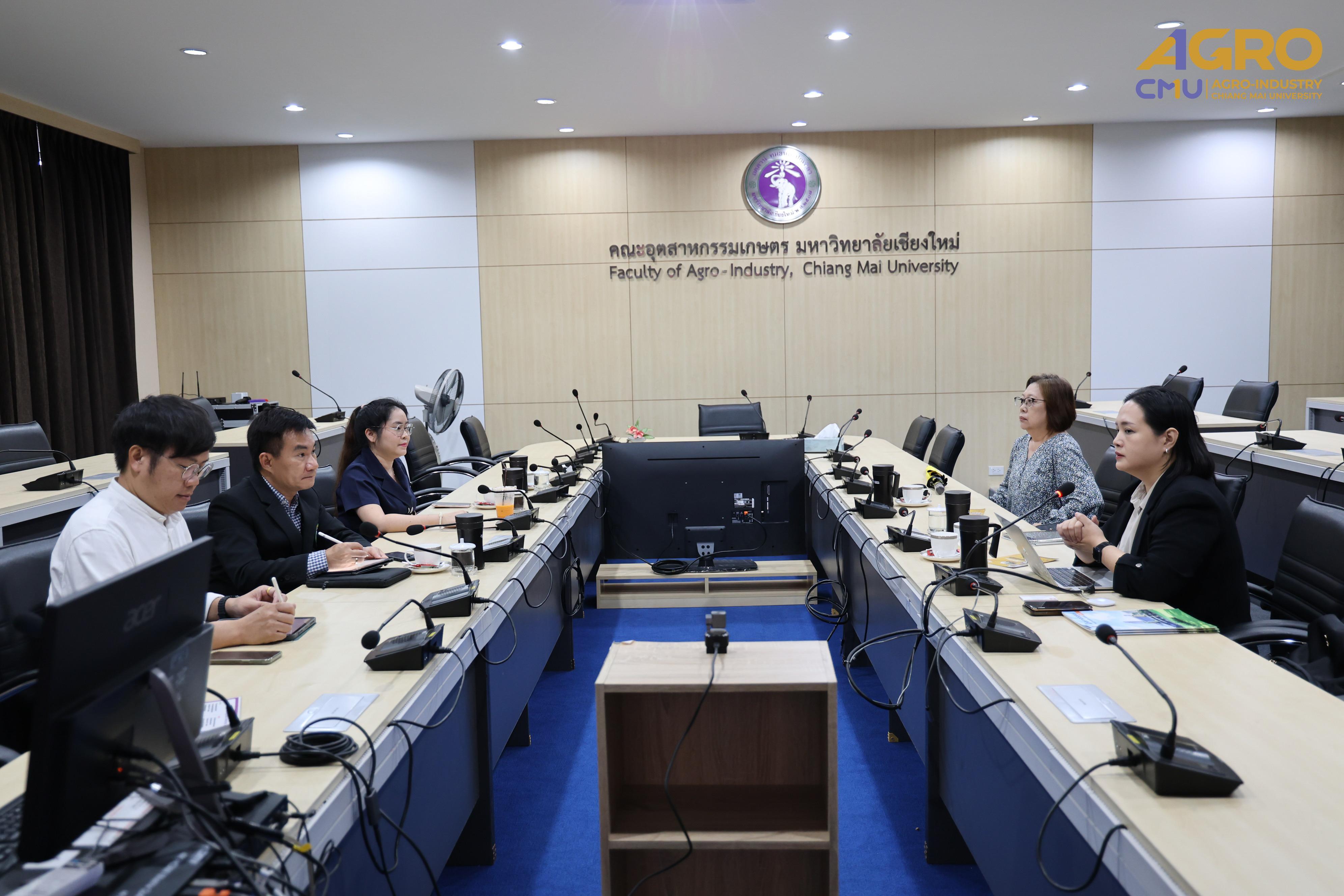 The visit aimed to explore potential collaboration opportunities, such as study visit programs or promoting the Faculty of Agro-Industry’s international programs to interested audiences. The meeting took place in Meeting Room 3, Faculty of Agro-Industry Office Building, Chiang Mai University.