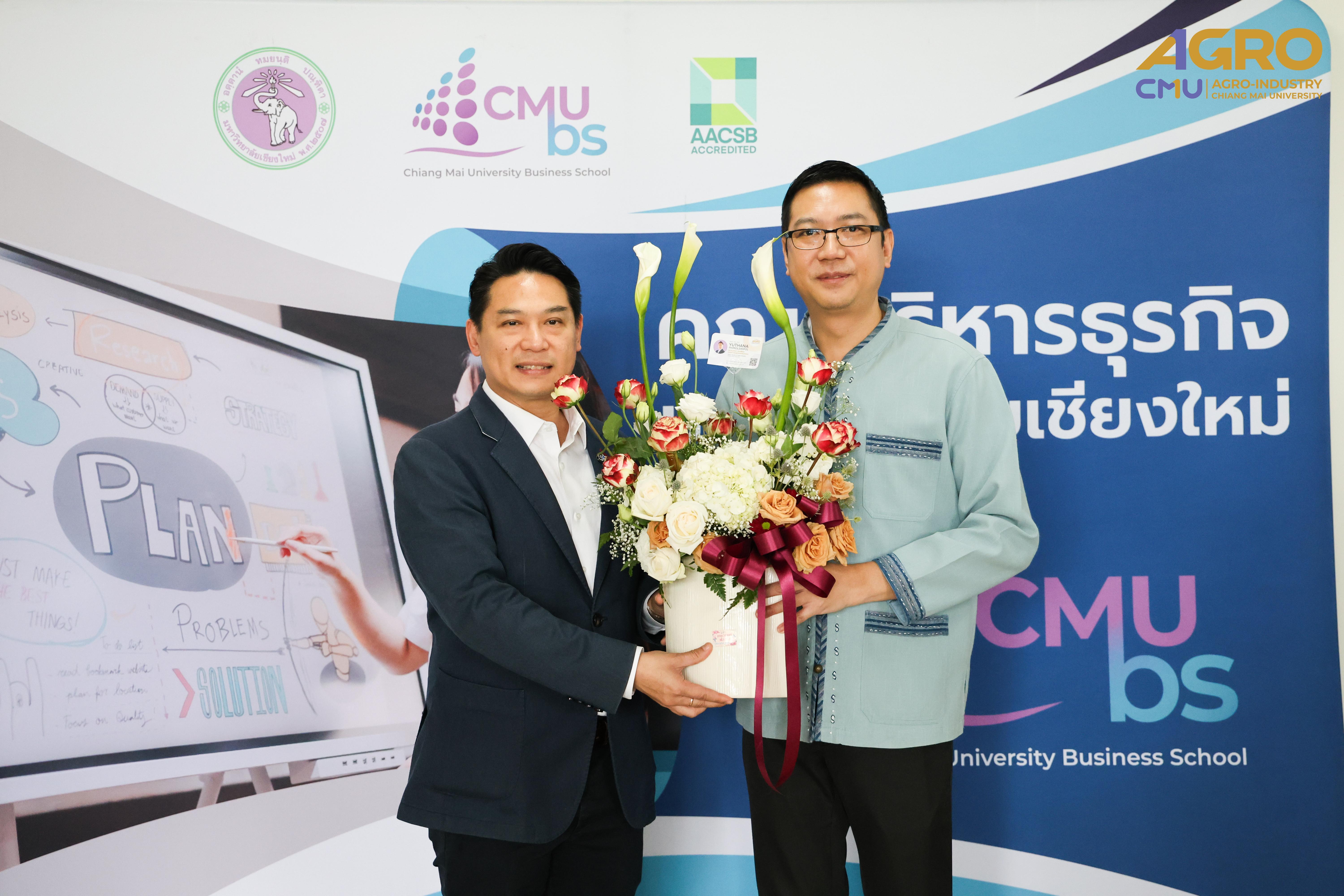 Additionally, Dean Yuthana and his staffs also presented the bouquet of flowers to congratulate to Assistant Professor Dr.Khongphu Nimanandh, Dean of CMUBS, on his reappointment for a second term as “Dean of the Faculty of Business Administration Chiang Mai University” .