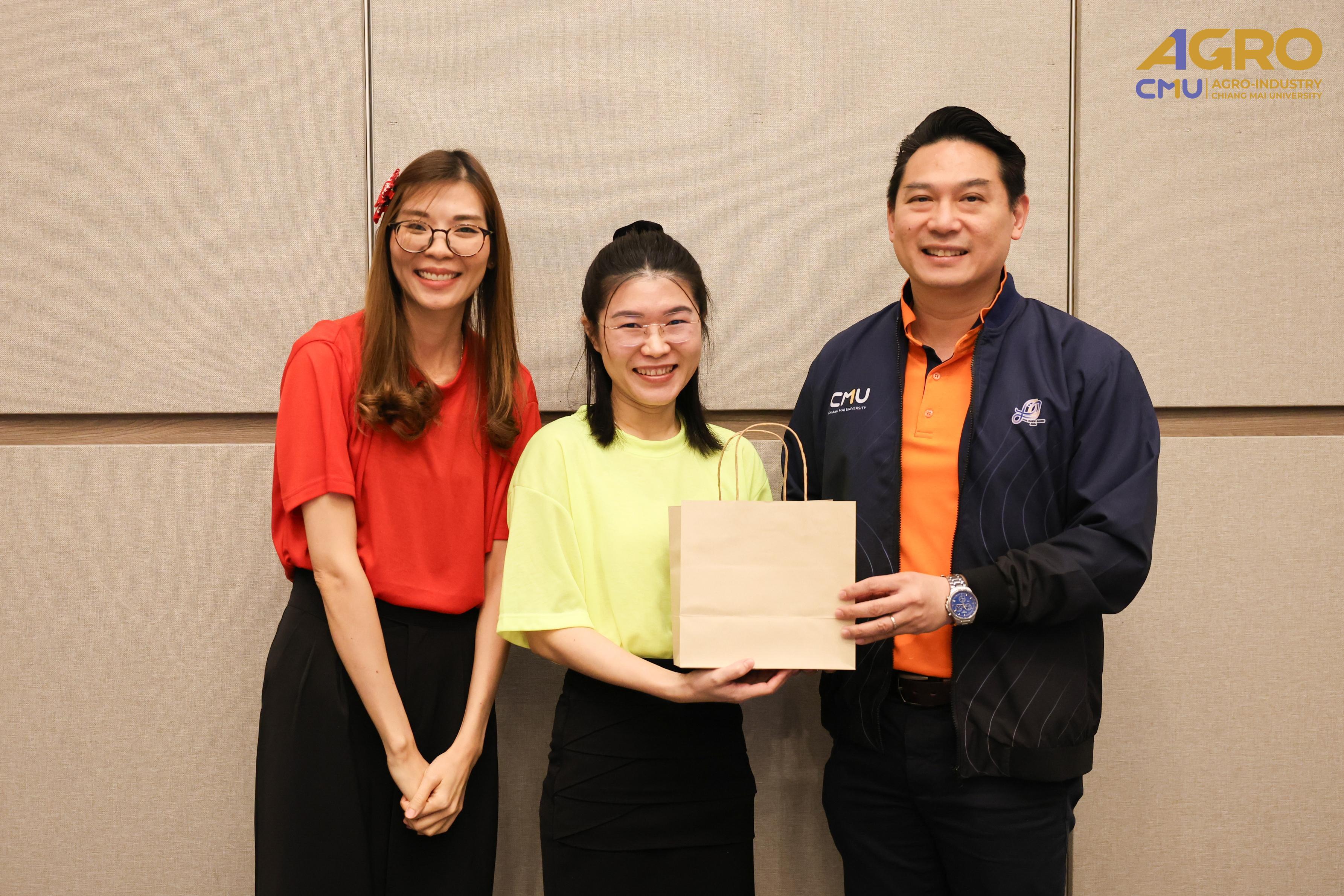 The event was honored by the presence of Associate Professor Dr. Yuthana Phimolsiripol, Dean of the Faculty of Agro-Industry, Associate Professor Dr. Phisit Seesuriyachan, and Assistant Professor Dr. Srisuwan Naruenartwongsakul, Associate Deans, who served as expert commentators. The event took place on December 26, 2024, at Doi Nang Meeting Room, 2nd Floor, Kantary Hills Hotel, Mueang District, Chiang Mai.
