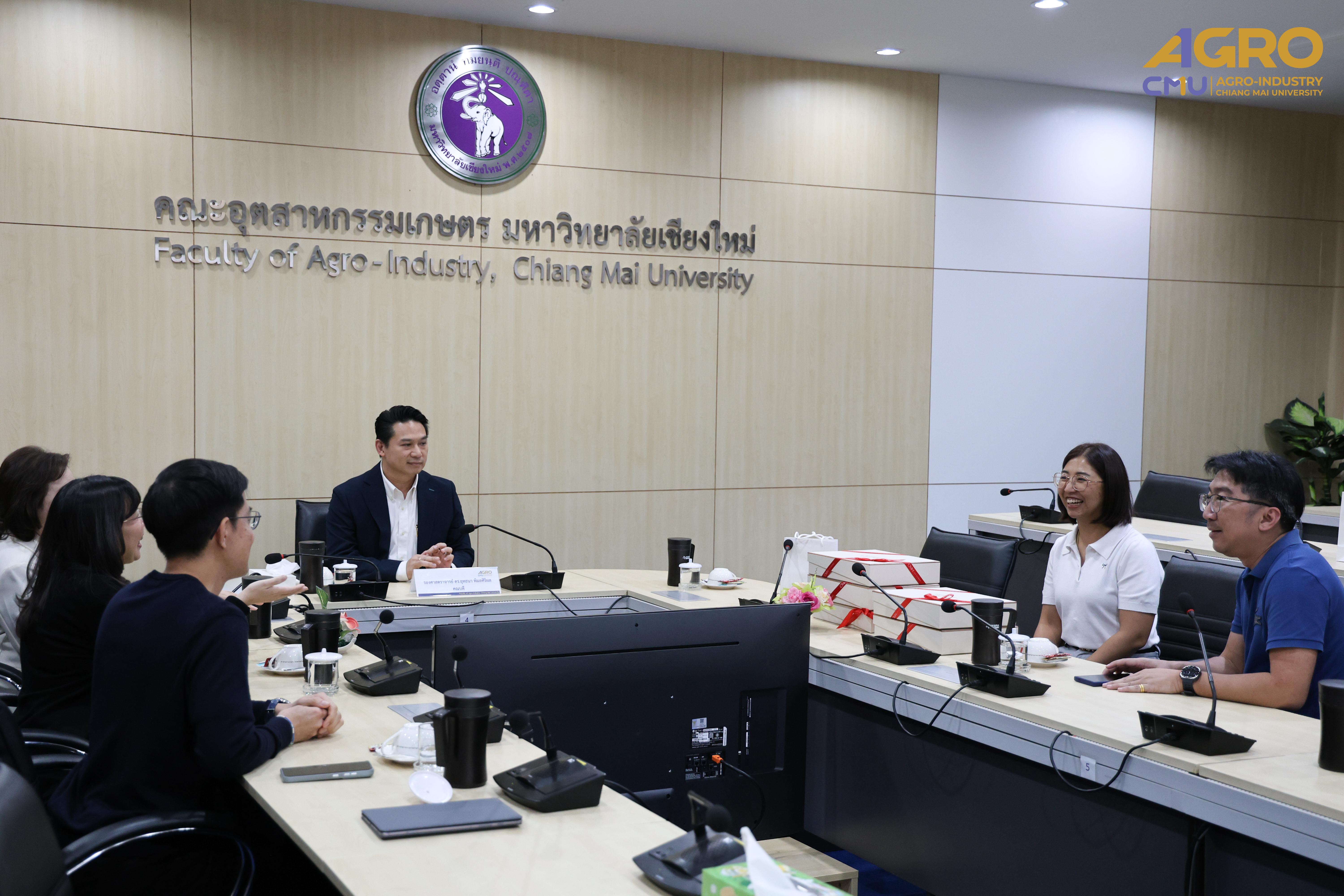 During the meeting, executives and staff members from both CMH Chiangmai Holding Co.Ltd and the Faculty of Agro-Industry exchanged ideas and discussion on potential collaborations between the two institutions. The meeting took place at the Meeting Room 3 of the Faculty of Agro-Industry, Chiang Mai University.