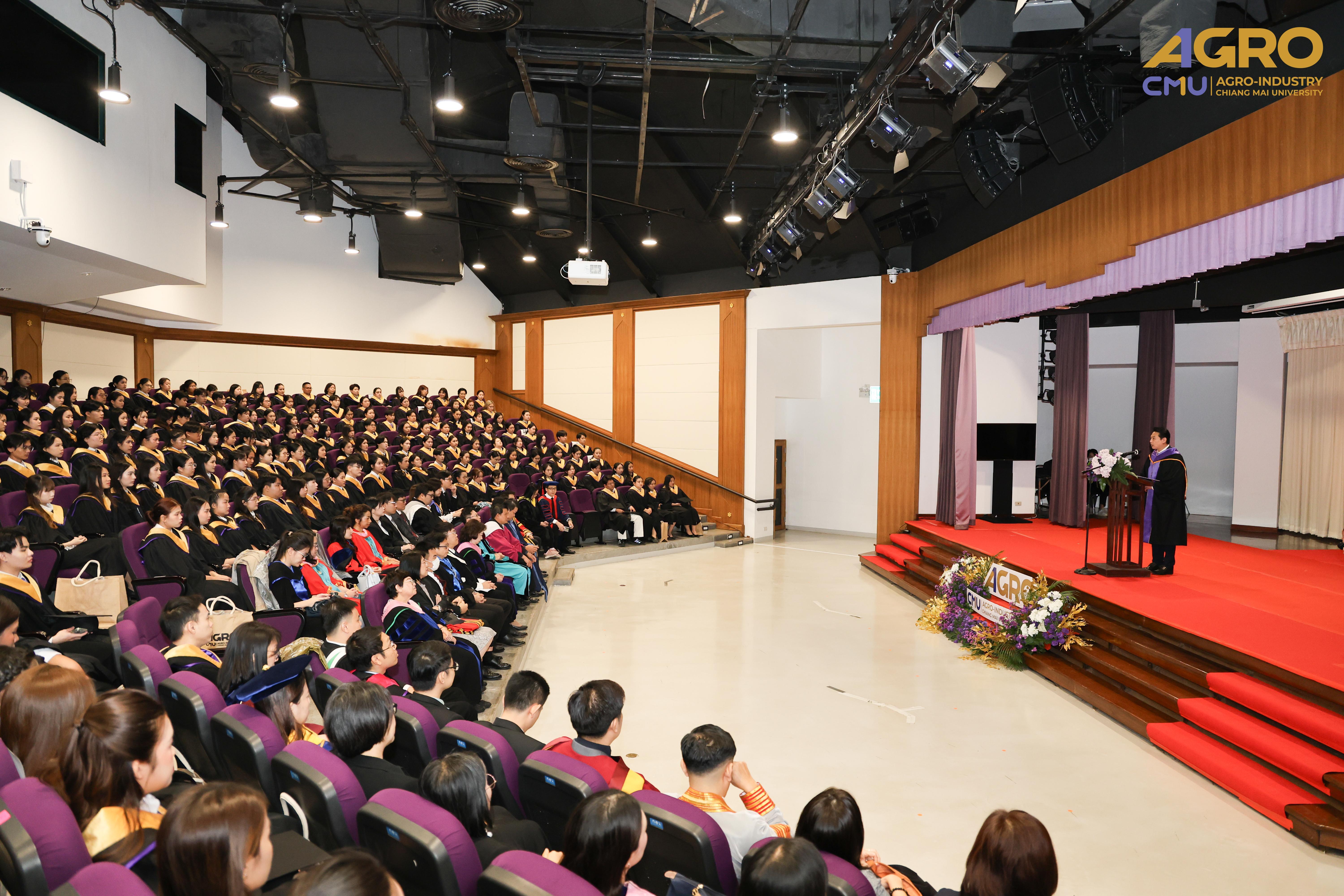 and the graduation ceremony rehearsal (Part of the faculty) at the small conference room Chiang Mai University Main Auditorium with more than 350 Participants along with the faculty executives, Lecturers , staff of faculty, the graduates of Faculty of Agro-Industry, and students attending the event.