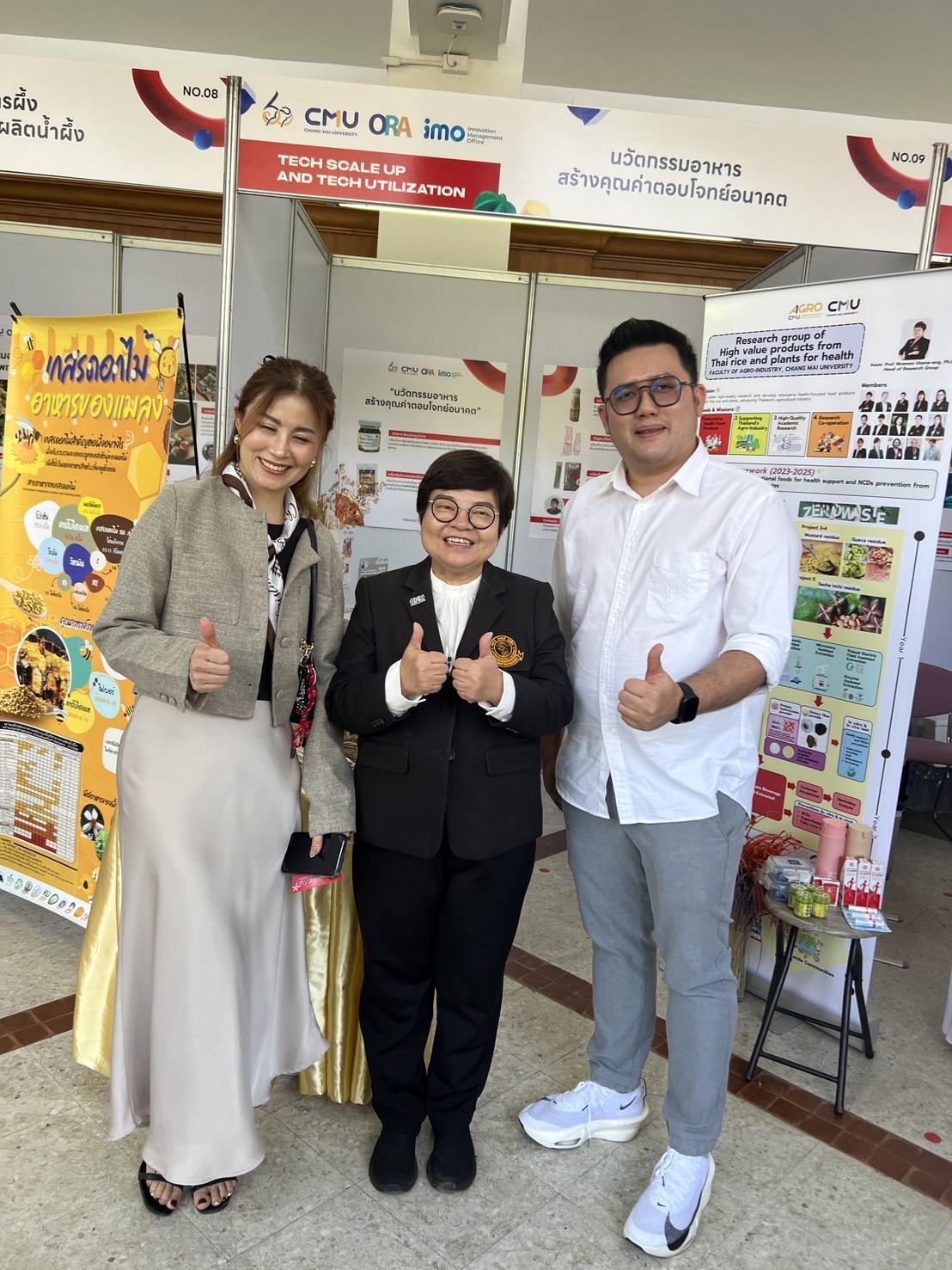 A research team from the Faculty of Agro-Industry, led by Associate Professor Dr.Niramon Utama-ang, Associate Dean, unveiled their research and health food products at the event “60 Years of CMU: Joining Forces for Sustainable Development.” Presented under the booth titled “Food Innovations Creating Value for the Future,” the showcase highlighted products designed to meet the needs of health-conscious individuals, such as: