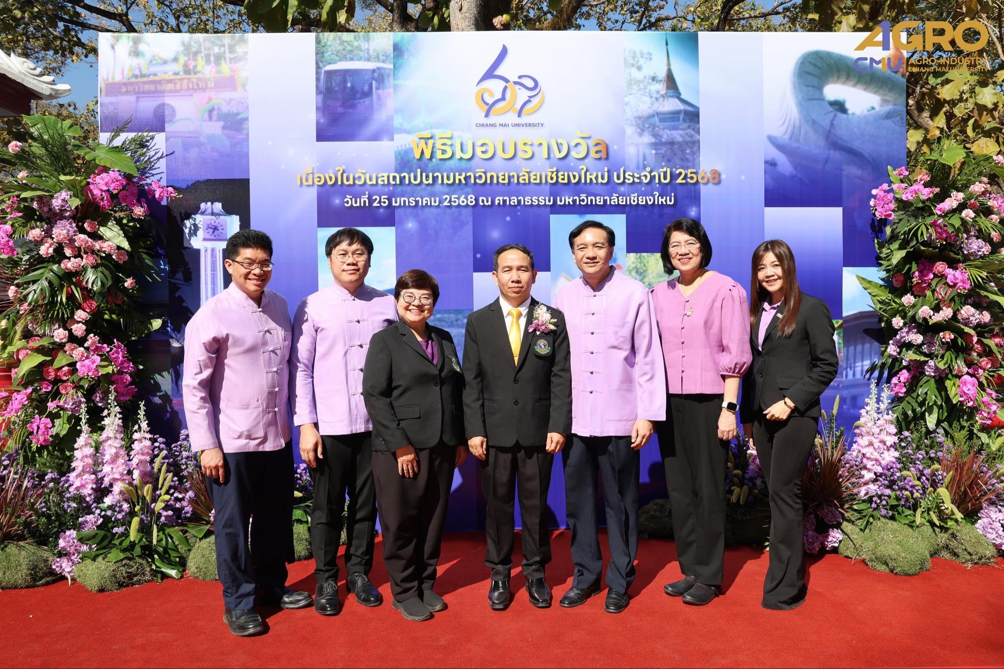 On January 25, 2025, Associate Professor Dr.Sutee Wangtueai, Vice Dean and representative of the Dean, along with the executives, faculty members, and staff of the Faculty of Agro-Industry, Chiang Mai University participated in the award ceremony to congratulate to Mr.Theerayuth Thongsuk on receiving the Chiang Mai University "Golden Elephant" award for the year 2024 in the occasion of the Anniversary of the Chiang Mai University Founding Day.