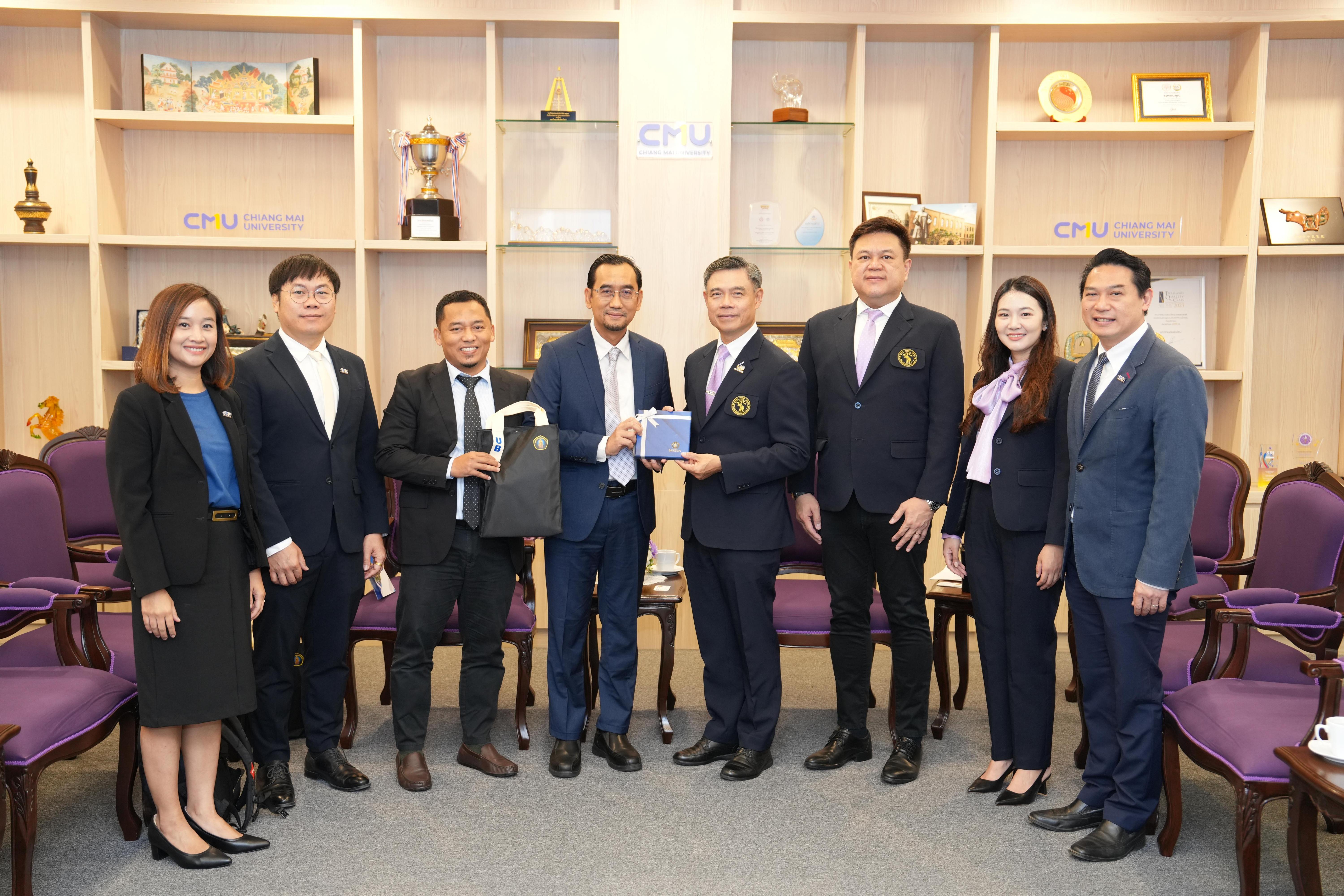 On January 23, 2025, Associate Professor Dr.Yuthana Phimolsiripol, Dean of the Faculty of Agro-Industry, together with the faculty executives, extended a warm welcome to Prof. Widodo, S.Si., M.Si., Ph.D. Med., Rector of Universitas Brawijaya, and Dr. Abdul Aziz Jaziri, S.Pi, M.Sc.Sc., Member of the Rector’s Expert staff. The delegation was received during their visit to Chiang Mai University at the Mom Luang Pin Malakul Reception Room, University Office Building 1. They were greeted by Professor Pongruk Sribanditmongkol, M.D., Ph.D., President of Chiang Mai University, along with university executives Assistant Professor Dr. Tanyanuparb Anantana, Vice President, and Assistant Professor Dr. Worakanya Buranapatana, Assistant President. The visit coincided with the “Presidential Forum 2025”, held from January 22–25, 2025, as part of the celebrations marking the 60th anniversary of Chiang Mai University's establishment. The forum brought together leaders and representatives from academic institutions worldwide to foster collaboration and celebrate this significant milestone.