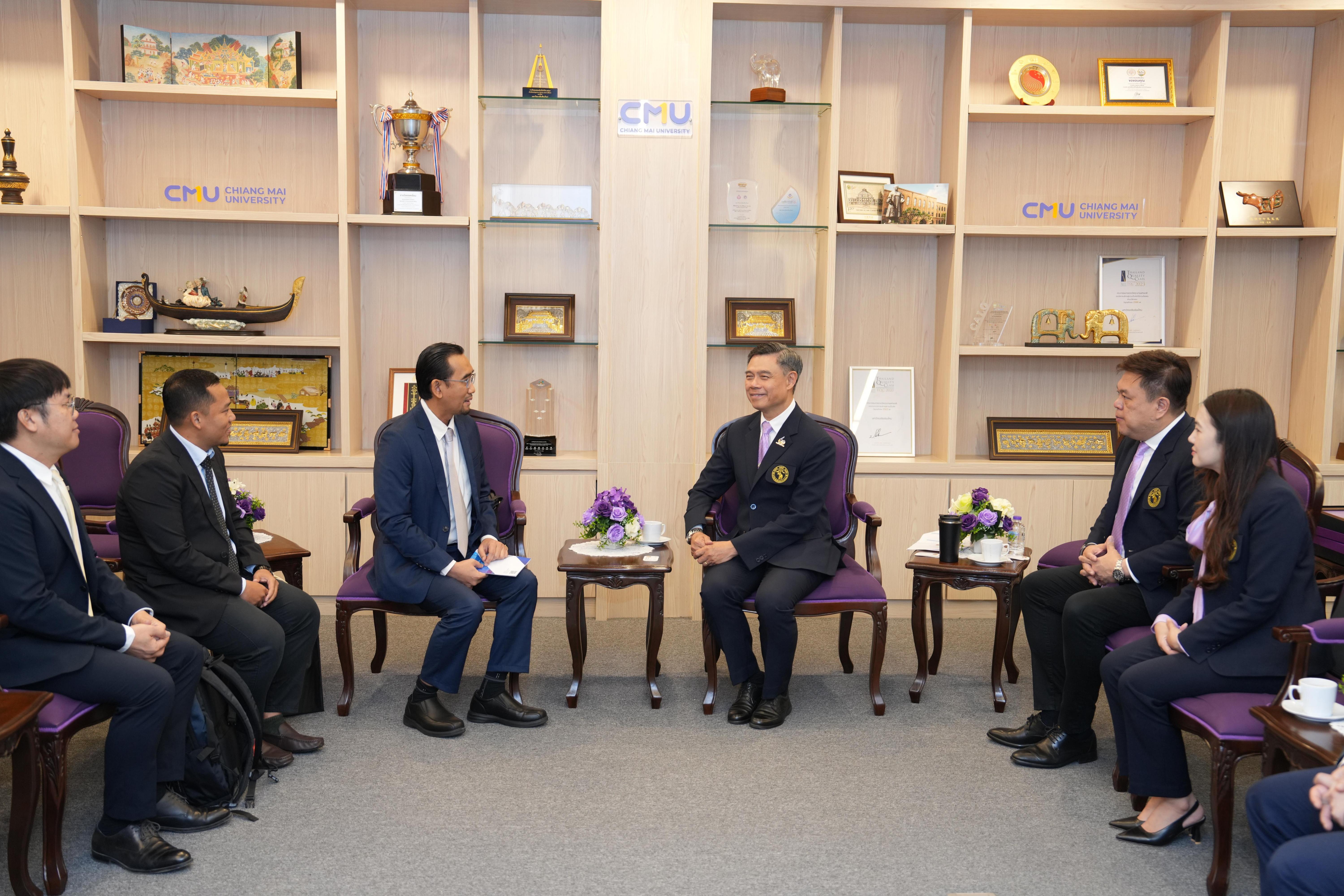 ห้องรับรองหม่อมหลวงปิ่น มาลากุล อาคารสำนักงานมหาวิทยาลัย 1 มหาวิทยาลัยเชียงใหม่ ในโอกาสที่มาเยี่ยมเยือนมหาวิทยาลัยเชียงใหม่ และร่วมงาน “Presidential Forum 2025” ที่จะจัดขึ้น ระหว่างวันที่ 22 – 25 มกราคม 2568 เพื่อเป็นการเฉลิมฉลองครบรอบ 60 ปี แห่งการสถาปนามหาวิทยาลัยเชียงใหม่