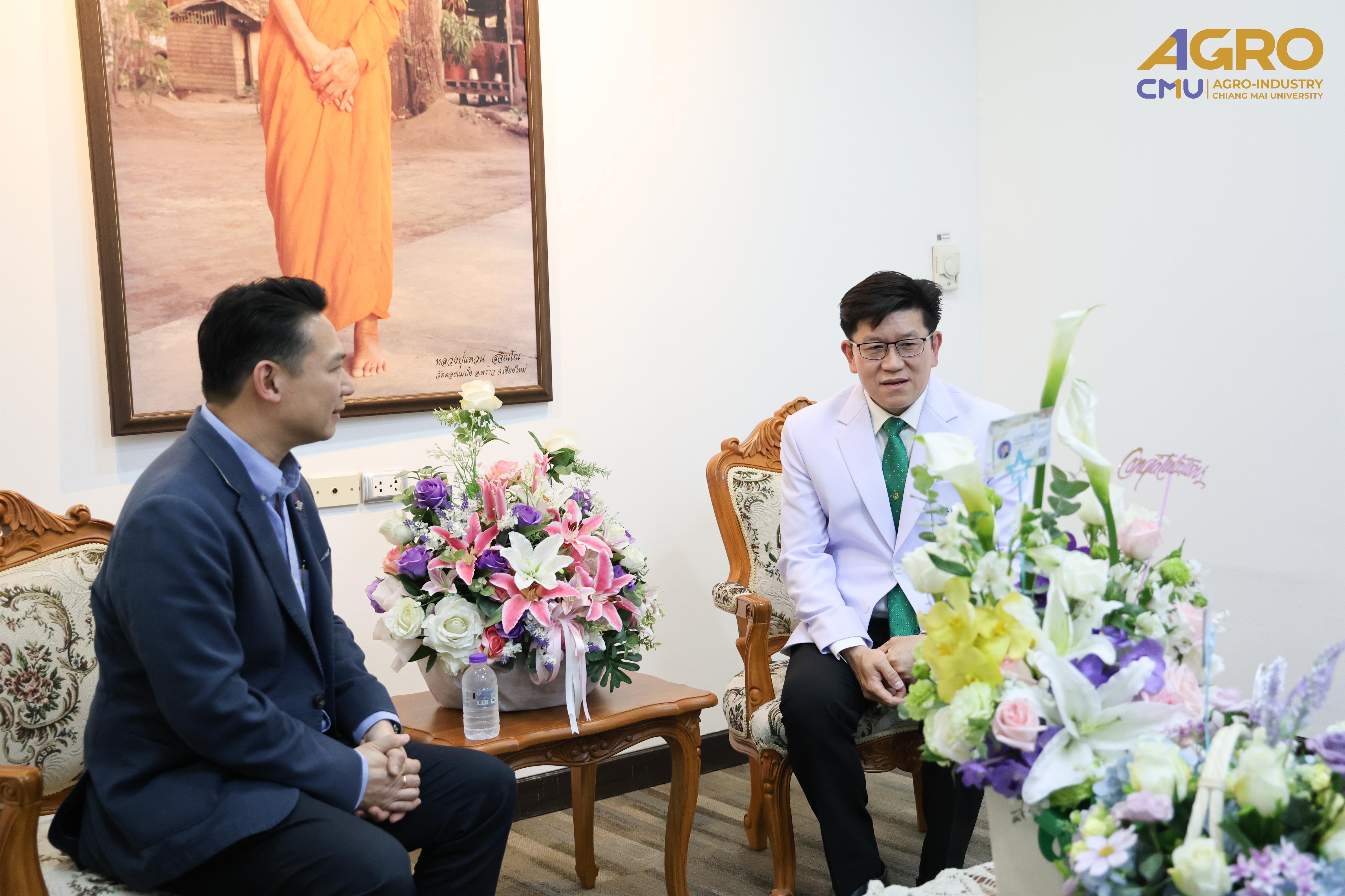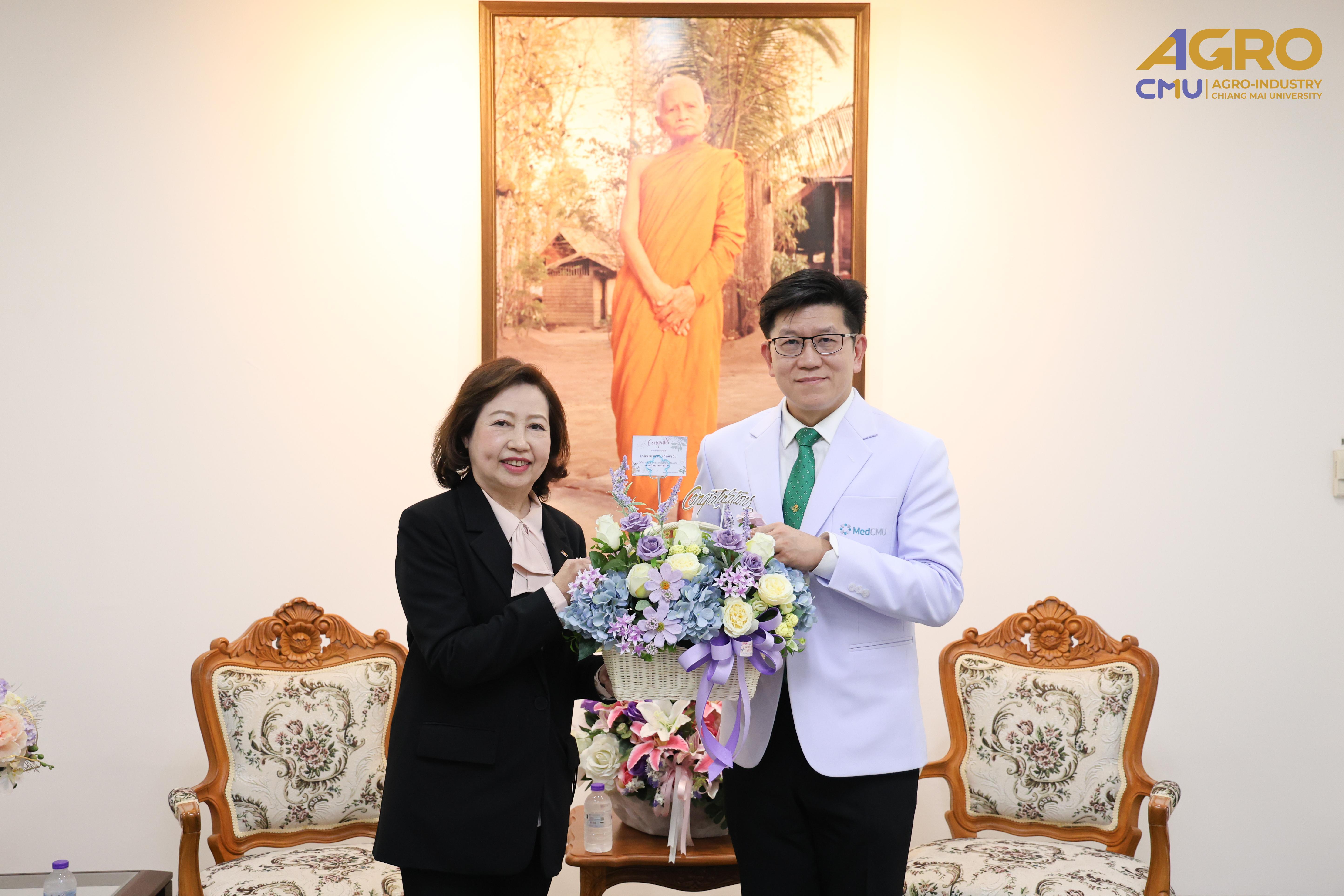 On January 30, 2025, Associate Professor Dr.Yuthana Phimolsiripol, Dean of the Faculty of Agro-Industry, along with the executives, presented a flower baskets to congratulate Associate Professor Narain Chotirosniramit MD., on his appointment as the new Dean of the Faculty of Medicine ,Chiang Mai University.