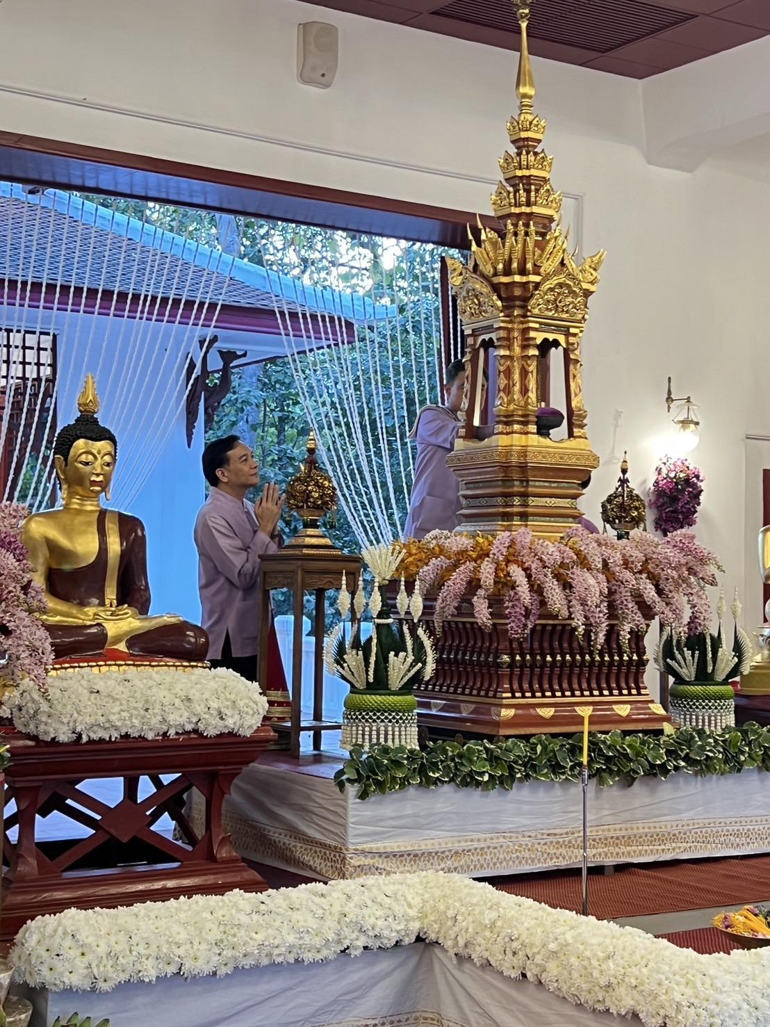 Additionally, this event was led by Professor Dr. Pongrak Sribunditmongkol, President of Chiang Mai University, together with Professor of Practice Dr. Charin Techapun, Vice President, and other university executives and staff participated in the religious ceremony, included Buddhist rites, a sermon delivered by the presiding monk, offering of donations, and a merit-making ceremony at Pinmala Art Gallery, Chiang Mai University and Dhamma pavilion, Chiang Mai University.