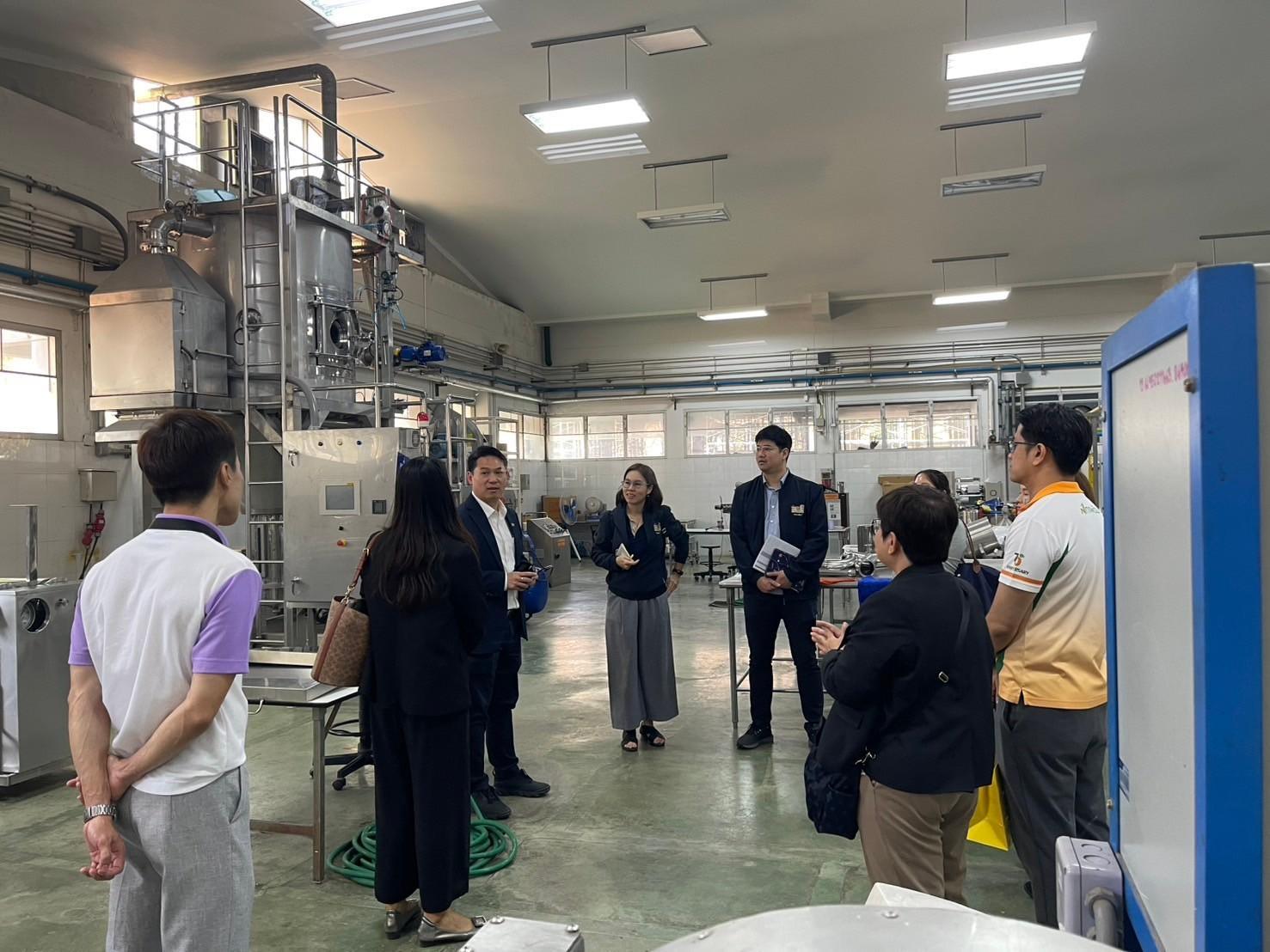 February 4, 2025 – Assoc.Prof.Dr. Yuthana Phimolsiripol, Dean, and Assoc.Prof.Dr. Niramon Utama-ang, Associate Dean, welcomed a study visit delegation from the Office of the National Economic and Social Development Council (NESDC). The delegation visited the Faculty of Agro-Industry, exploring the laboratory, sensory evaluation unit, Food Innovation and Packaging Center, and pilot plant. The visit aimed to assess the faculty’s readiness in workforce development that aligns with future labor market demands. This initiative is part of NESDC’s pilot project on designing vocational workforce development towards high-competency manpower to support the Northern Economic Corridor (NEC) advancement. A total of seven participants joined the study visit.