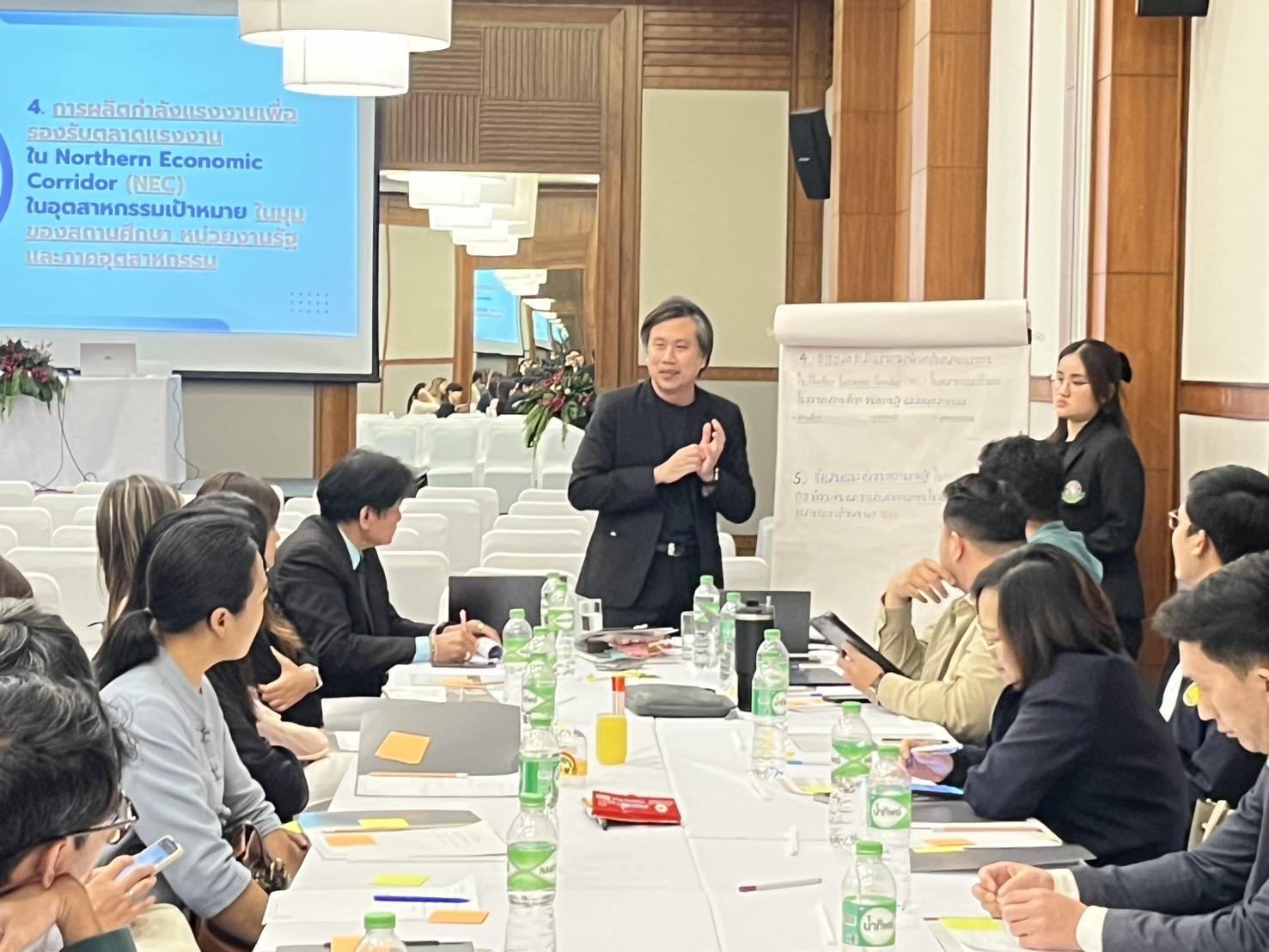 February 5, 2025: The National Economic and Social Development Council held a brainstorming session on “Vocational Workforce Development to Drive the Northern Special Economic Corridor (NEC).” The event was honored by the presence of Ms. Monthip Samphanthawong, Director of the Division of Human Resource and Social Development Strategy, who delivered a welcome speech and presented an overview of workforce development efforts supporting the NEC. Associate Professor Dr. Niramon Utama-ang, Deputy Dean of the Faculty of Agro-Industry, and Dr. Vinyoo Sakdatorn, a lecturer in the Division of Product Development Technology, served as facilitators for the discussion. The session aimed to gather insights from educational institutions, businesses, investors, government agencies, and other stakeholders involved in local workforce development. The goal was to design a vocational workforce production model that aligns with labor market needs and supports the NEC’s economic growth.
