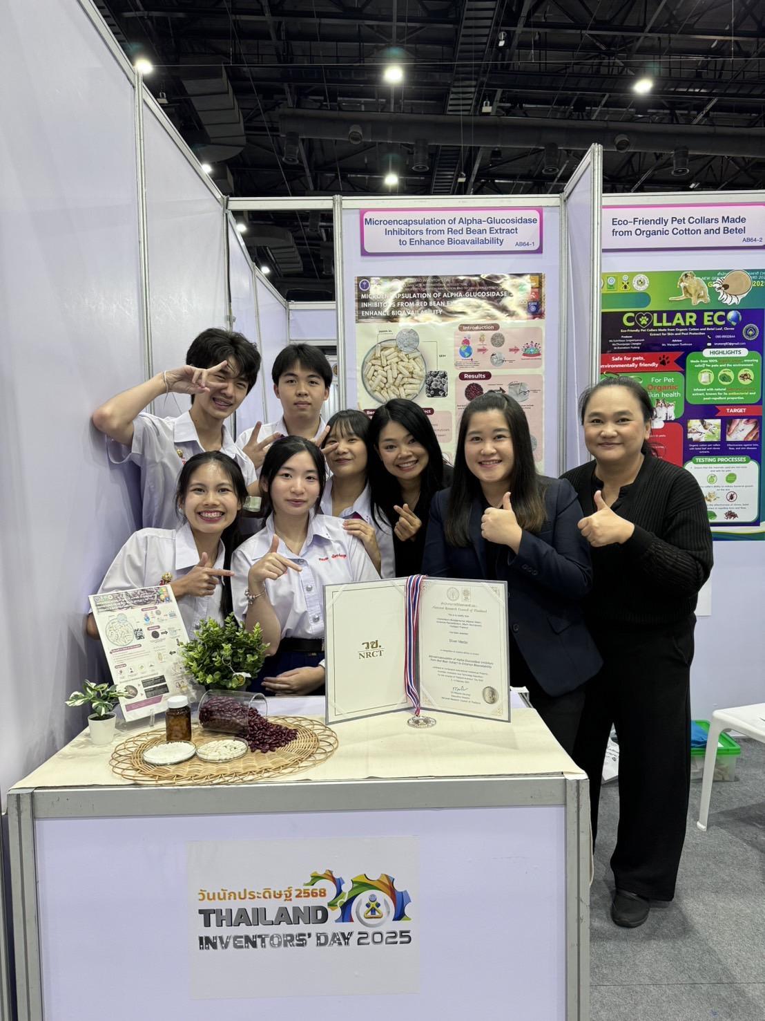 The Faculty of Agro-Industry, Chiang Mai University, extends its congratulations to the team of 11th-grade students and teachers from Montfort College for their research on “Microencapsulation of Alpha-Glucosidase Inhibitors from Red Bean Extract to Enhance Bioavailability,” which won a silver medal at the 2025 Bangkok International Intellectual Property, Invention, Innovation and Technology Exposition (IPITEx 2025). This event was held in celebration of Inventors' Day 2025 from February 2-6, 2025, at the Bangkok International Trade & Exhibition Centre (BITEC). The competition saw participation from over 2,000 individuals from 22 countries and was organized by the National Research Council of Thailand (NRCT), Division of Research and Innovation Promotion and Support. This achievement was a collaborative effort under an MOU between educational institutions, with Associate Professor Dr. Niramon Utama-ang serving as a co-advisor and Mr. Anuphan Panyathong providing machinery services at the pilot plant of the Faculty of Agro-Industry, Chiang Mai University.