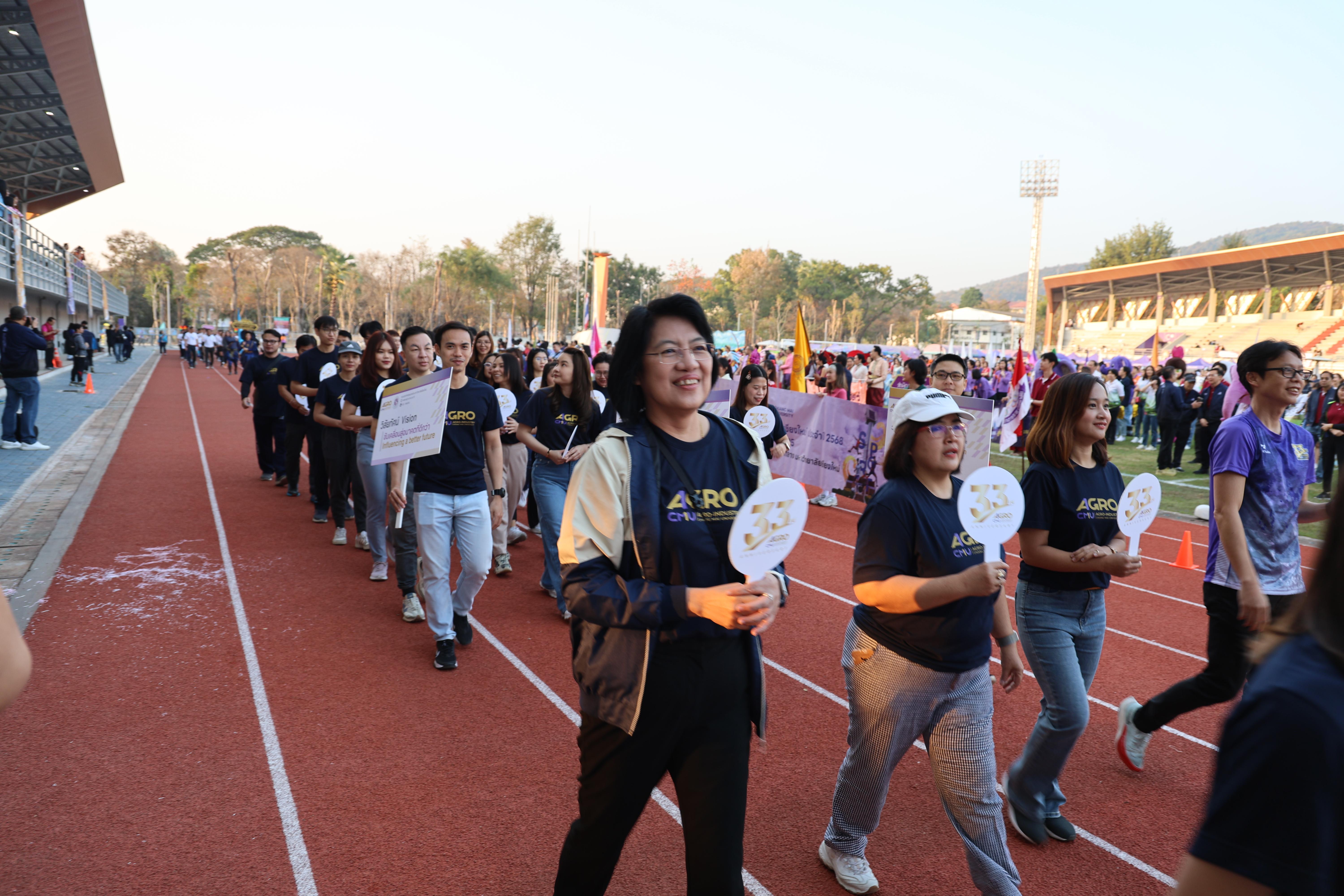 On February 15, 2025, Associate Professor Dr. Yuthana Phimolsiripol, Dean of the Faculty of Agro-Industry, along with the administration, faculty members, and staff of the Faculty of Agro-Industry, participated in the Chiang Mai University Staff Sports Event 2025. The event aimed to encourage Chiang Mai University staff to engage in sports and physical activities to promote good health. Additionally, it served to foster unity and strengthen relationships among staff members from various departments. The event took place at the Chiang Mai University Main Stadium.