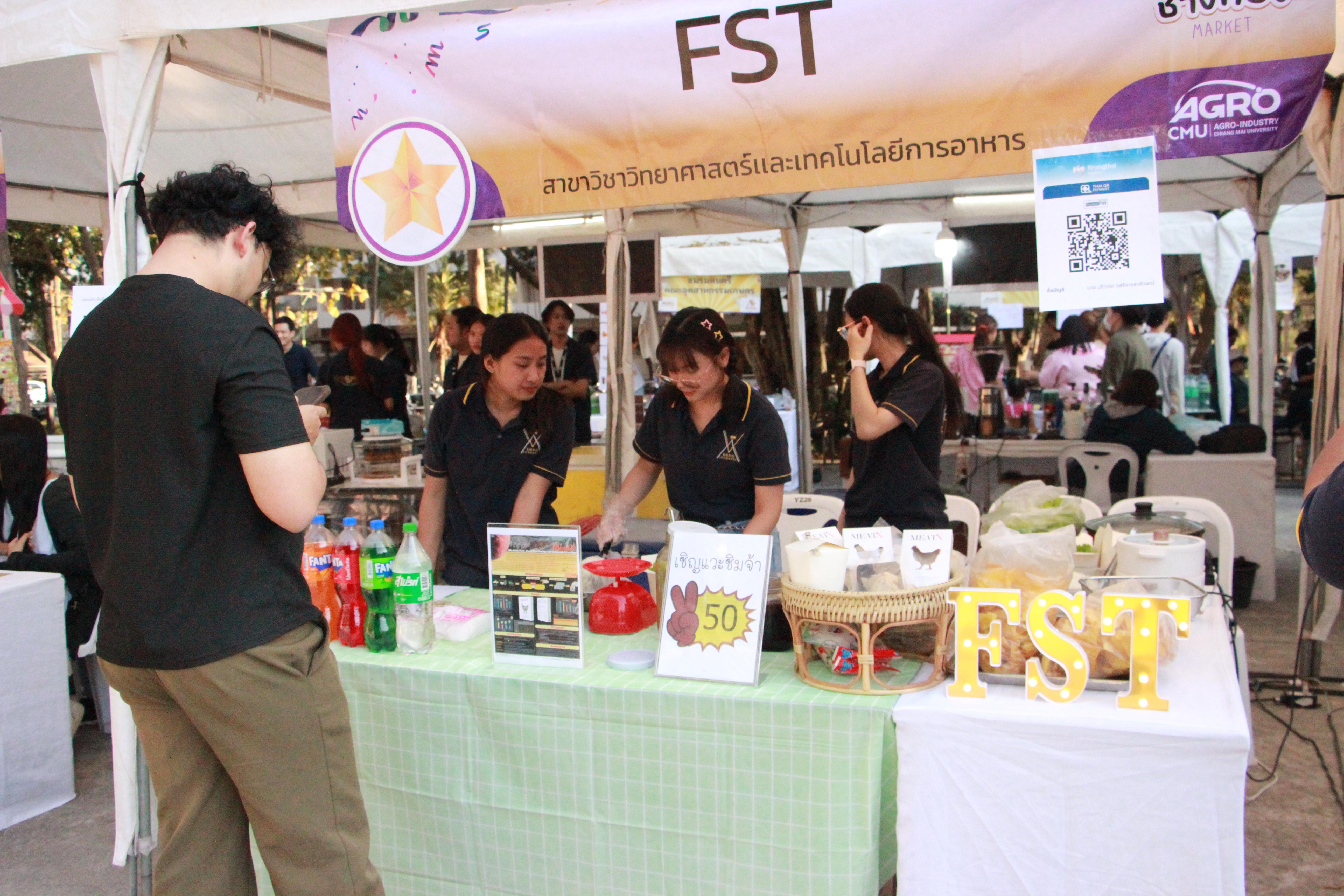 On Wednesday, February 12, 2025, the Student Affairs Development Unit, in collaboration with the Student Club of the Faculty of Agro-Industry, organized the "Chang Thong Market 2025" event at the multifunctional student activity area in front of the Female Student Dormitory Building 2 at Chiang Mai University. The purpose of this event was to allow students to develop the value of products they create through production processes and direct sales to the market and consumers. It also provided an opportunity for students to practice basic entrepreneurial skills and promote avenues for students and alumni to sell their products. The event facilitated the creation of an innovative atmosphere for the students of the Faculty of Agro-Industry.