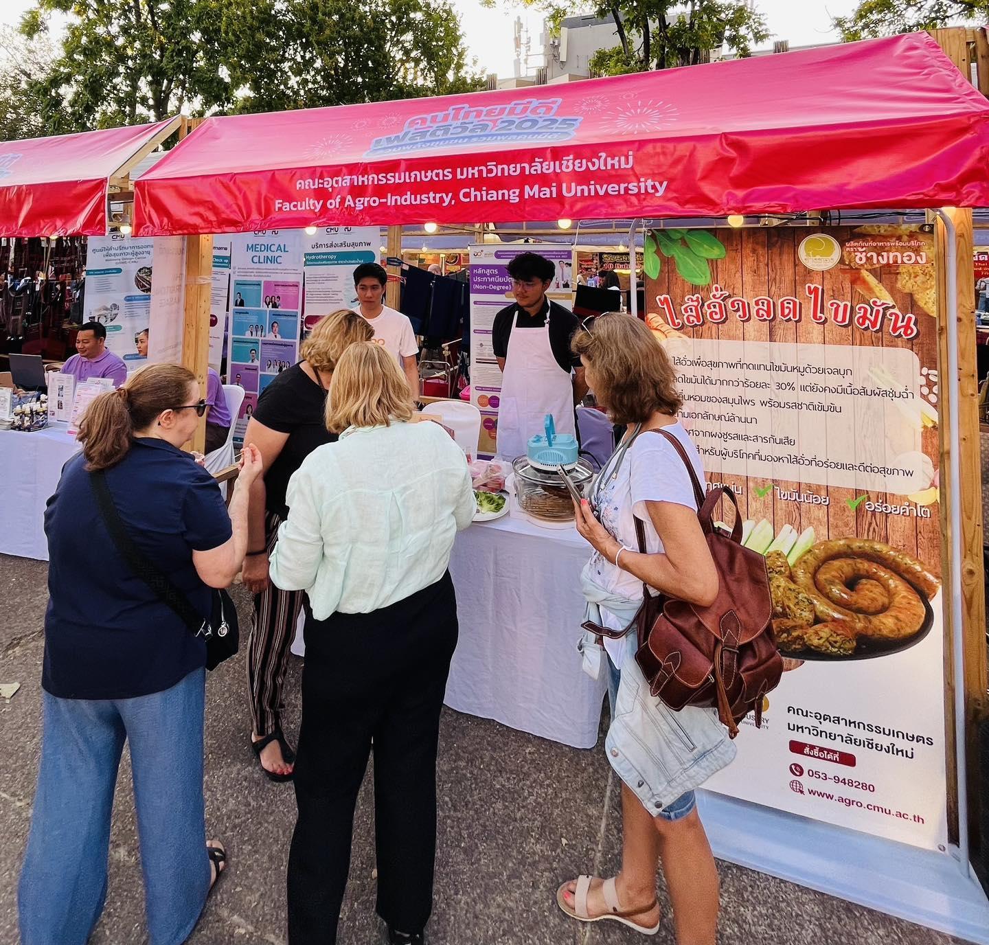 วันที่ 16 กุมภาพันธ์ 2568 คณะอุตสาหกรรมเกษตร นำโดยรองศาสตราจารย์ ดร. นิรมล อุตมอ่าง รองคณบดี ร่วมนำหลักสูตร 8 สาขาวิชา และหลักสูตรประกาศนียบัตร (non degree) ออกจัดแสดงในงาน คนไทยมีดี festival 2025 ณ ลานประตูท่าแพ และยังนำผลิตภัณฑ์ไส้อั่วลดไขมัน ออกขายภายในงานอีกด้วย
