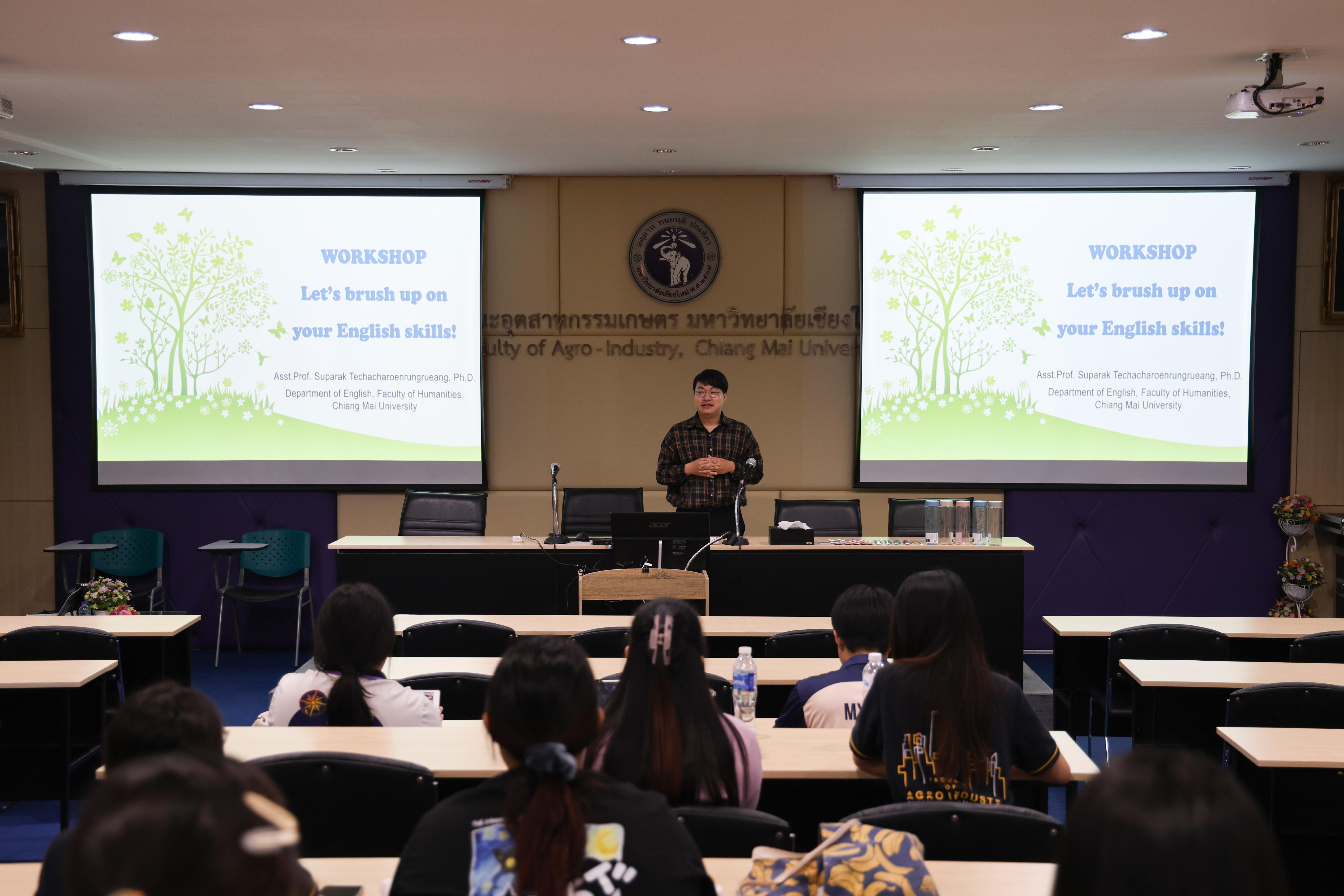 On Wednesday, February 19, 2025, the Division of Packaging Technology, Faculty of Agro-Industry, organized the Annual English Language Skills Development Program for 2025. This initiative aimed to enhance Bechelor students' language skills, enabling them to apply their knowledge effectively in both academic settings and real-life situations. The program also sought to build students' confidence in communicating with classmates and the general public.