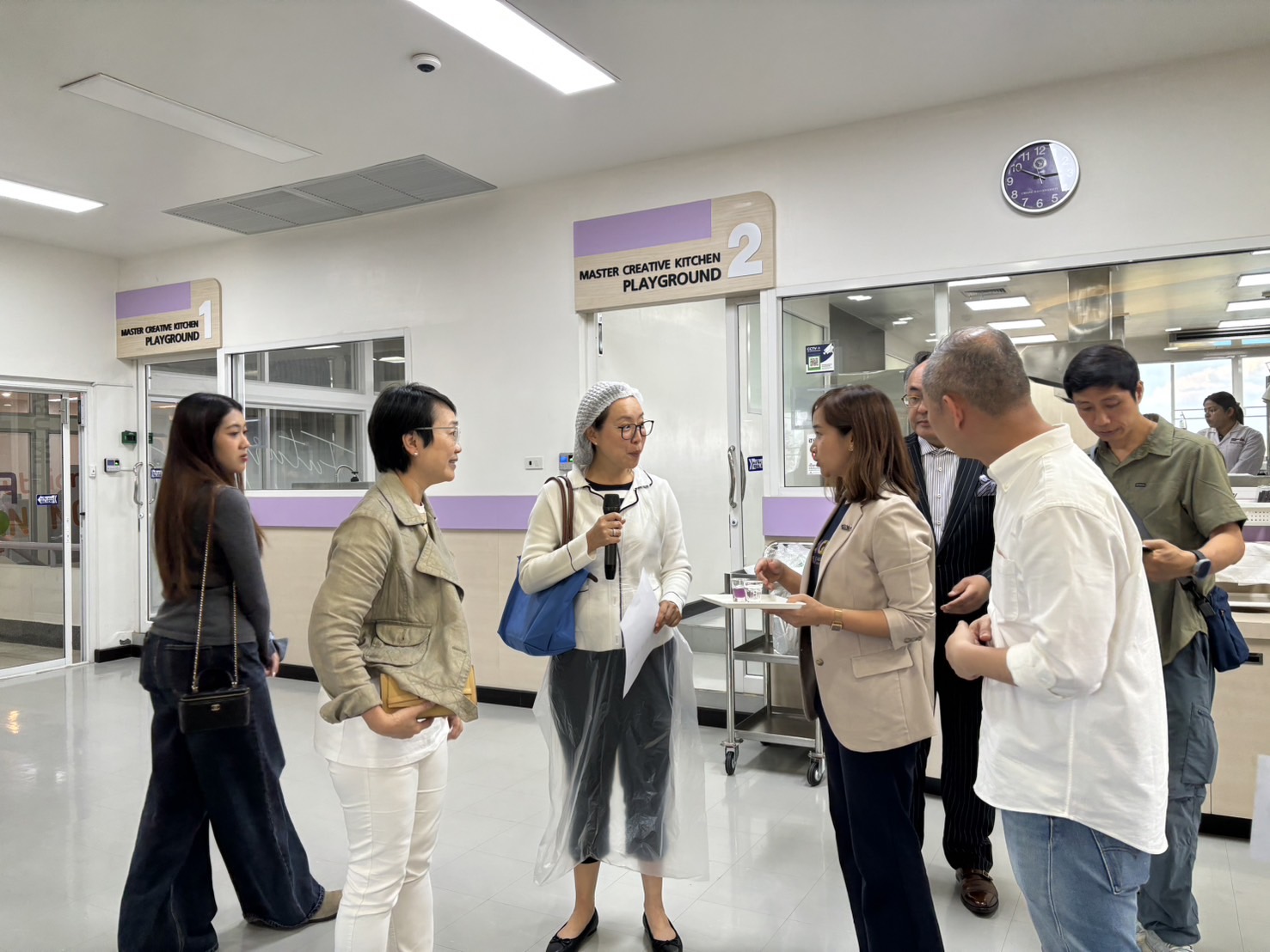 During this visit, the students toured and learned about the operations of the Food Innovation and Packaging Centre. Additionally, they presented the Spherification technique through the dish of Sparkling Butterfly Pea with Lemon Caviar, at the Food Innovation and Packaging Centre, Faculty of Agro-Industry.