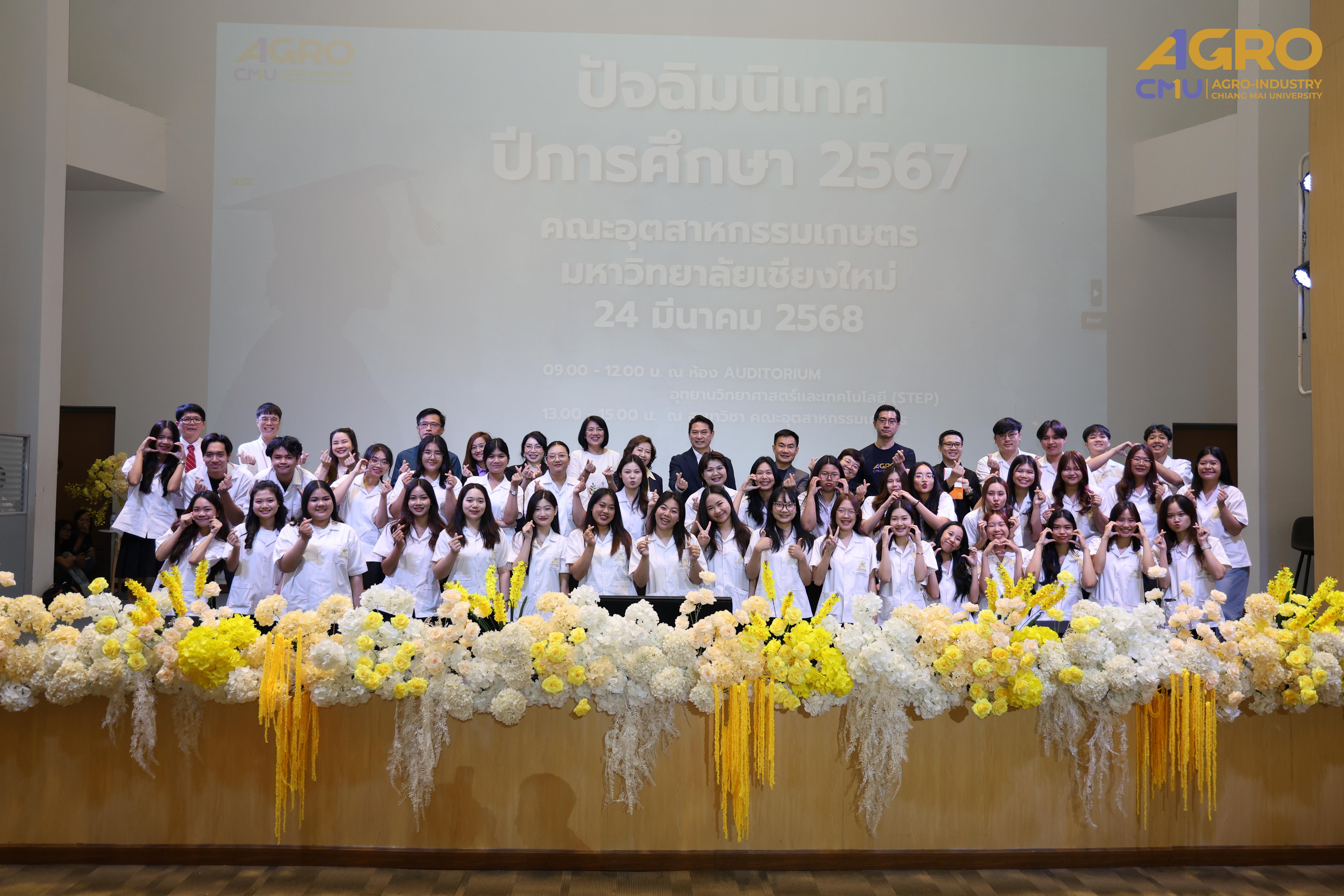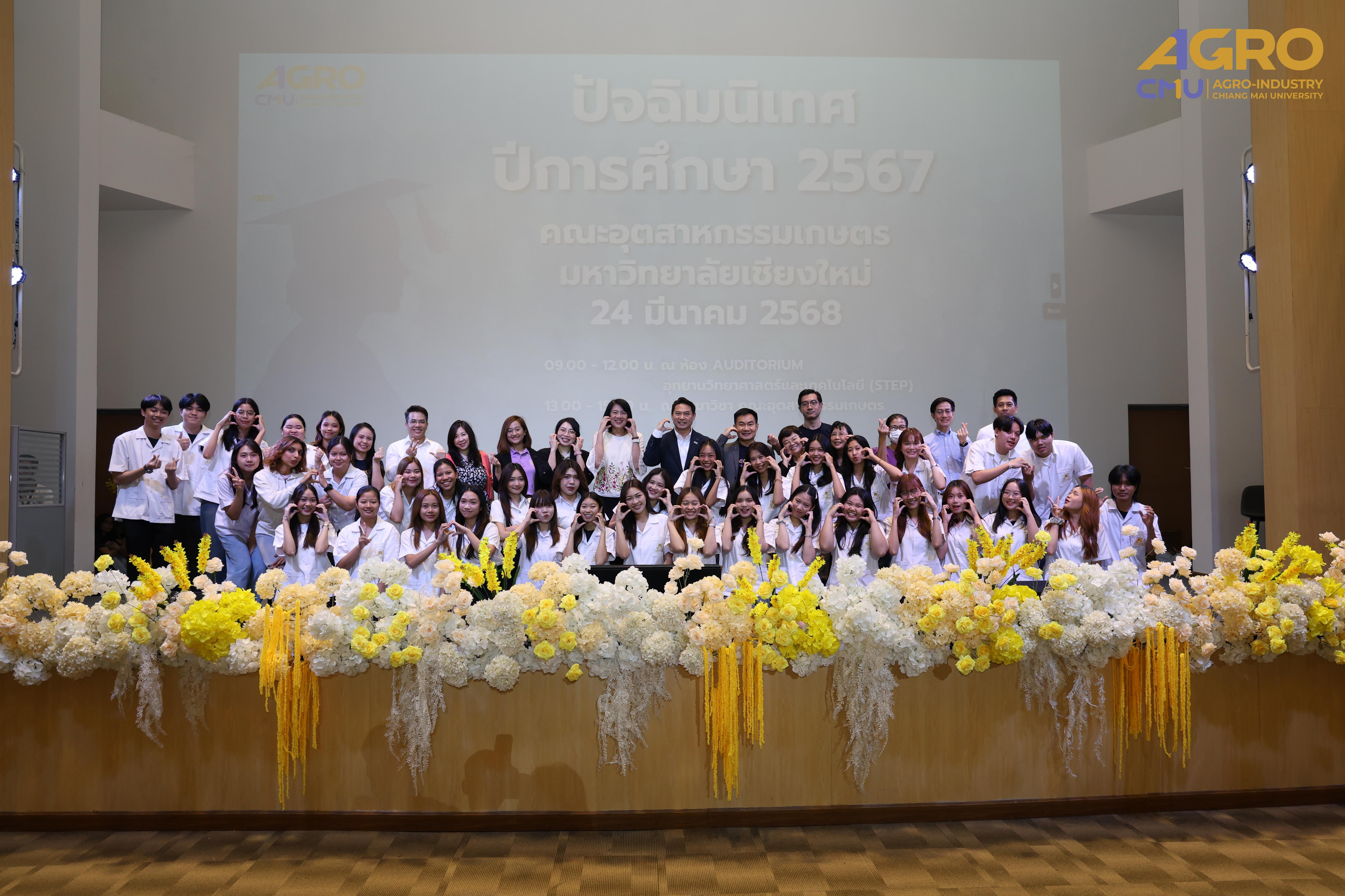 เมื่อวันที่ 24 มีนาคม 2568 คณะอุตสาหกรรมเกษตร มหาวิทยาลัยเชียงใหม่ ได้จัดกิจกรรม “ปัจฉิมนิเทศนักศึกษา ปีการศึกษา 2567” โดยมี รองศาสตราจารย์ ดร.ยุทธนา พิมลศิริผล คณบดีคณะอุตสาหกรรมเกษตร เป็นประธานเปิดงานและกล่าวให้โอวาทแก่นักศึกษา ณ ห้อง Auditorium ชั้น 1 อุทยานวิทยาศาสตร์และเทคโนโลยี มหาวิทยาลัยเชียงใหม่ (STeP)